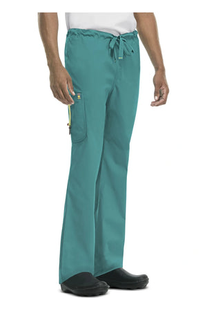 Pantalón de hombre de tiro natural, pierna cónica y cordón ajustable, con doble bolsillo seccional de carga con cinta de logotipo oculta y cierre de llave, bolsillo de parche trasero y pespunte de doble aguja. Costura interior: 32