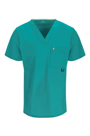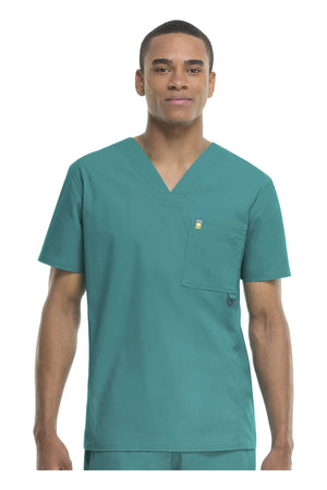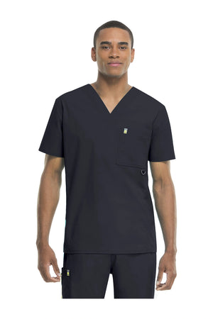La camiseta de cuello en V para hombre cuenta con un bolsillo doble en el pecho con anillo en forma de D con el logotipo, el característico ribete de malla en la parte trasera del cuello, aberturas laterales y pespuntes a doble aguja. Longitud del centro de la espalda: 29