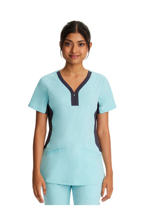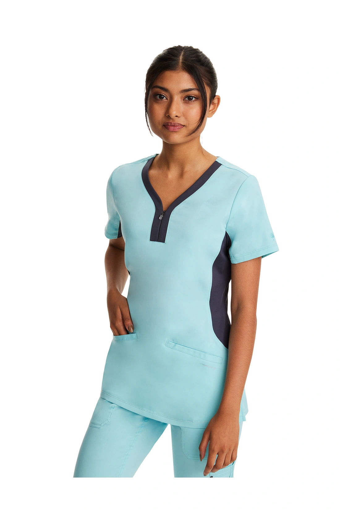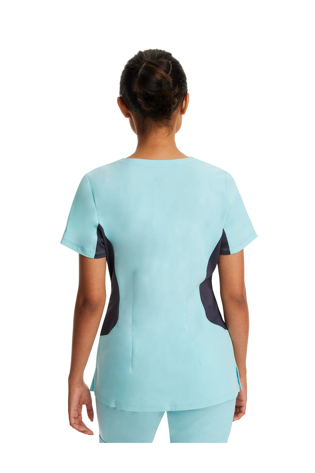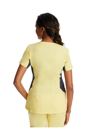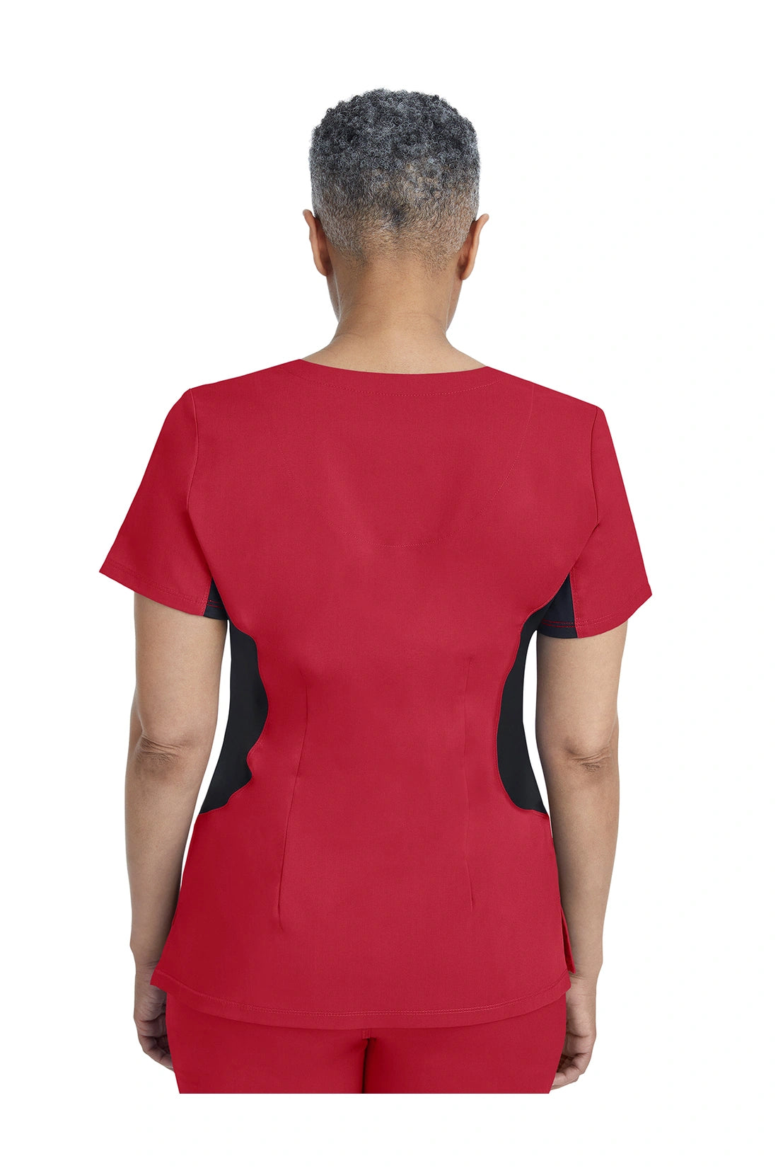 Esta camiseta de yoga de punto confortable tiene un tacto elástico y atlético, y los paneles laterales presentan una mezcla de poliéster/spandex en color de contraste para un efecto adelgazante.