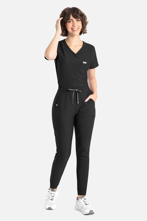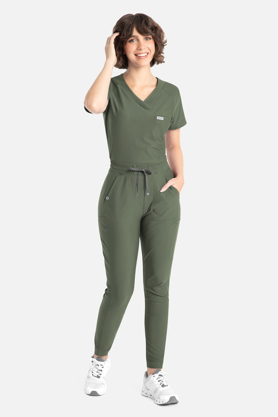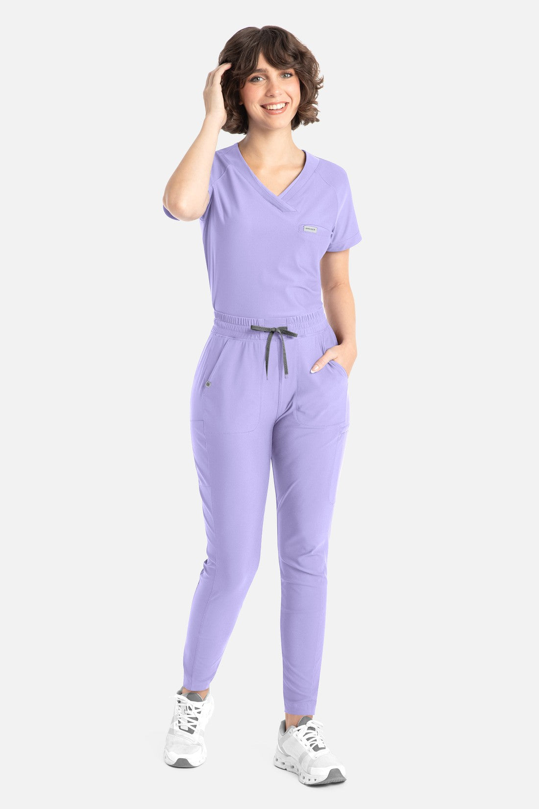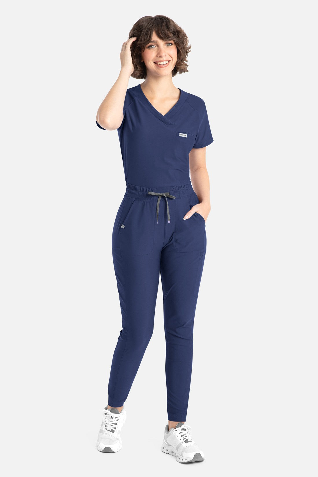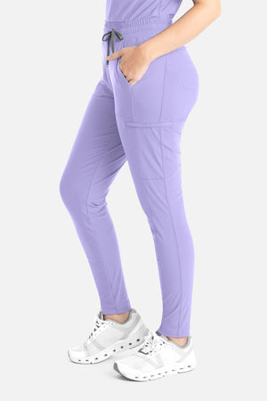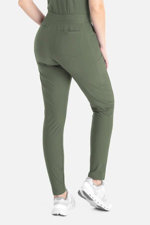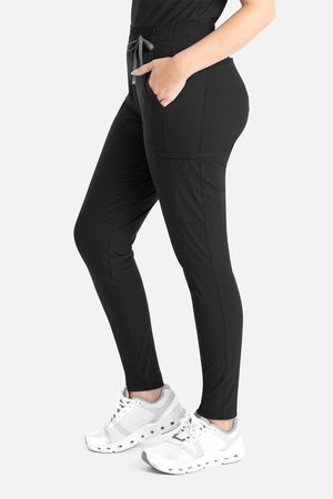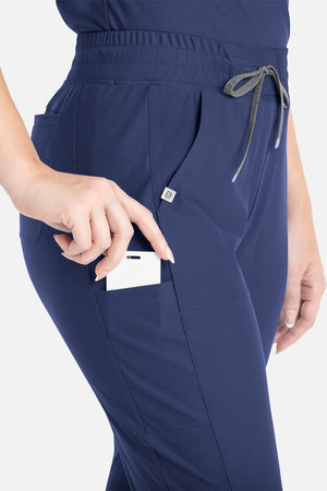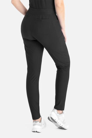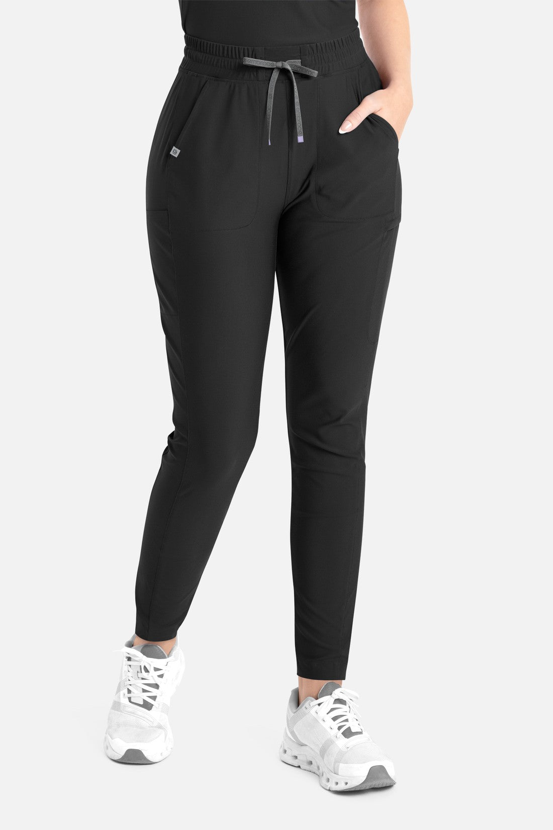Corte ajustado cónico, total de 6 bolsillos: 2 bolsillos delanteros, 1 bolsillo lateral de malla, 1 bolsillo seguro para montar, 2 bolsillos traseros con costete, paneles laterales para estilo y movilidad, cinturilla elástica completa con cordón de contraste y punta de goma, longitud de la entrepierna talla s: regular 28,5" petite 26" de altura 31"