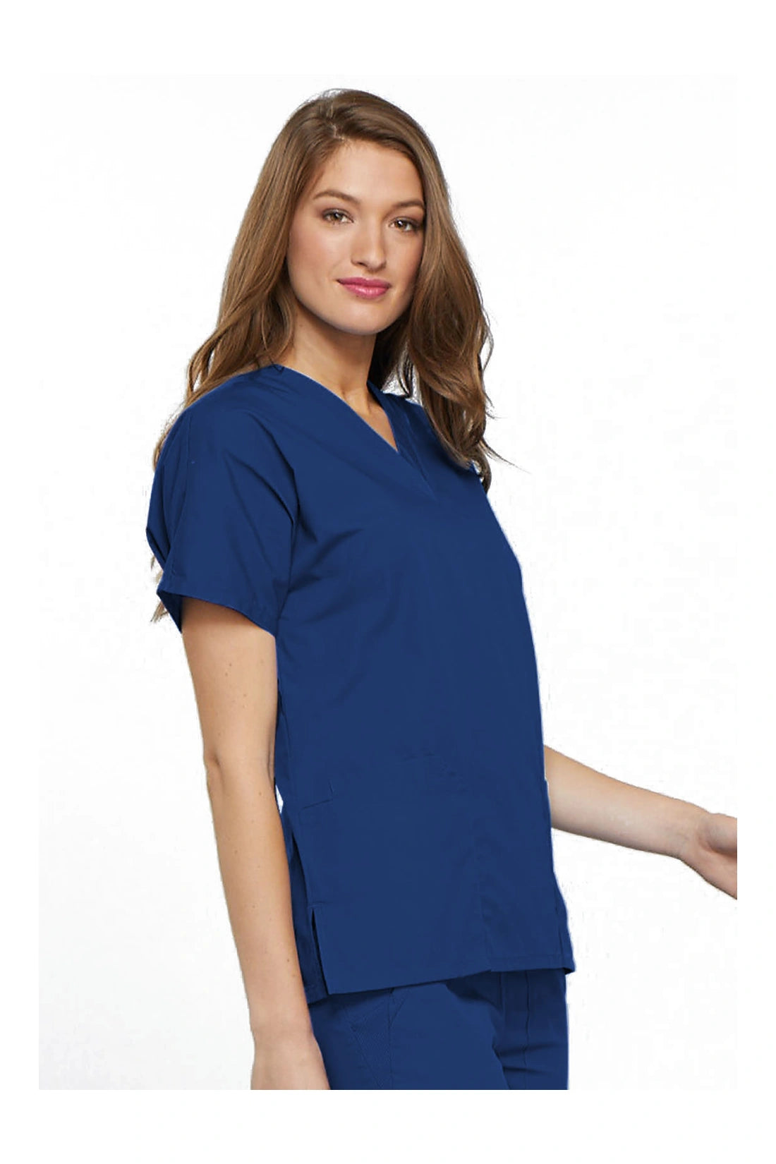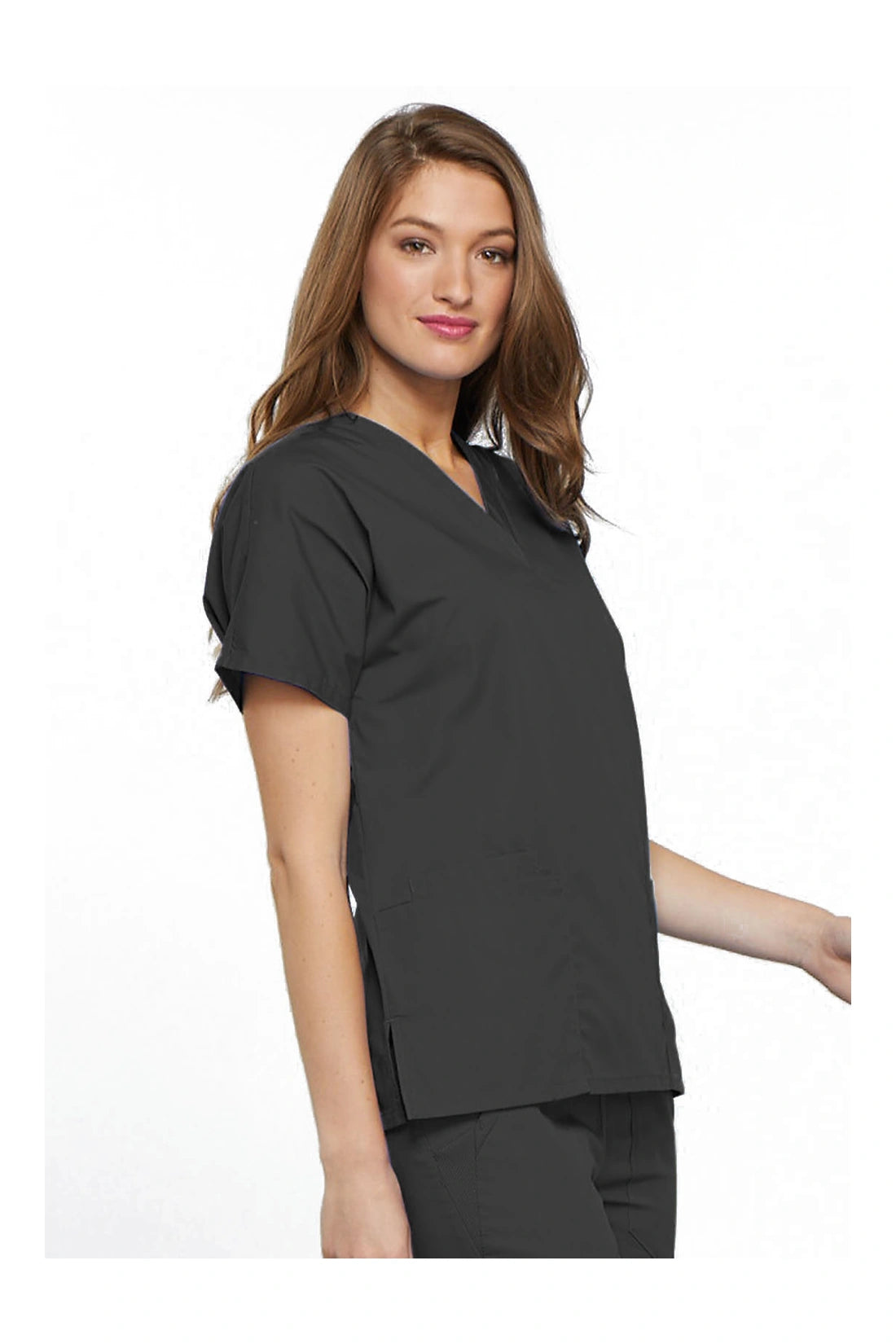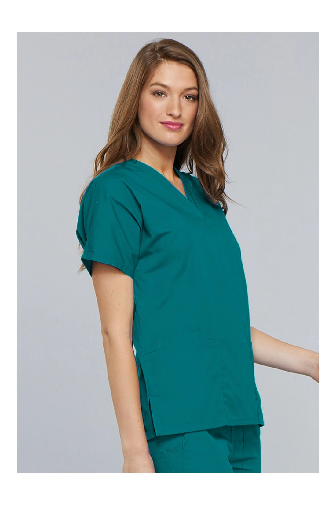 Un ajuste tradicional, manga dolman, cuello en V con aberturas en las costuras laterales, dos bolsillos de parche y un bolsillo para el móvil.