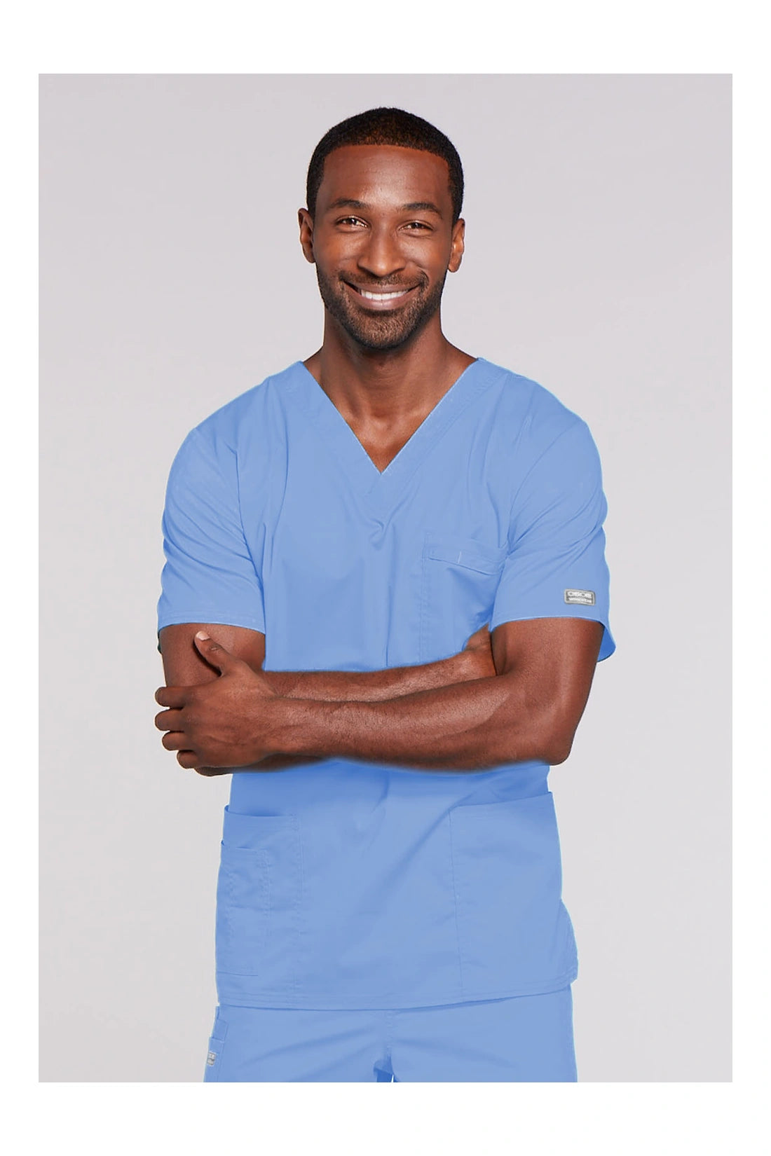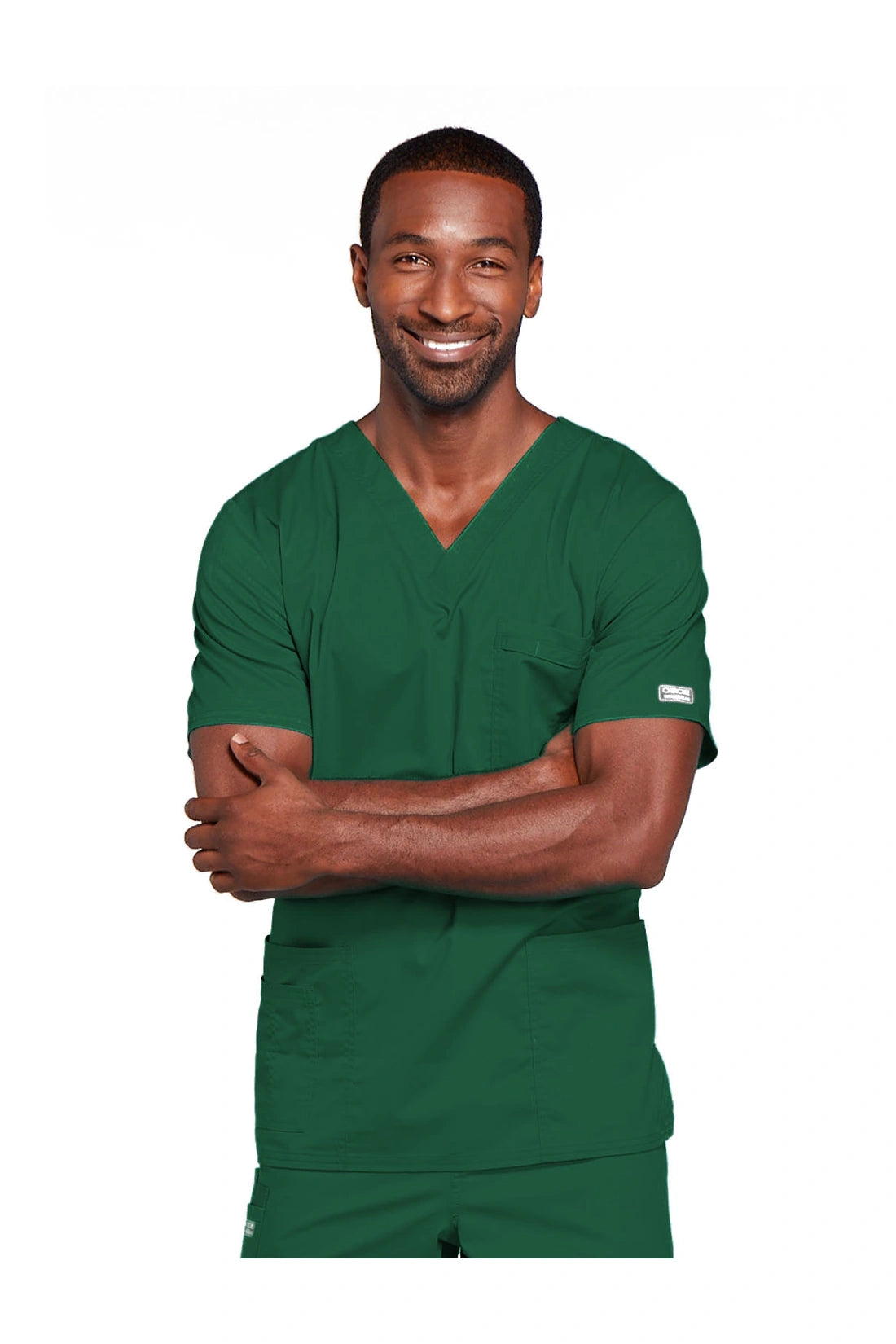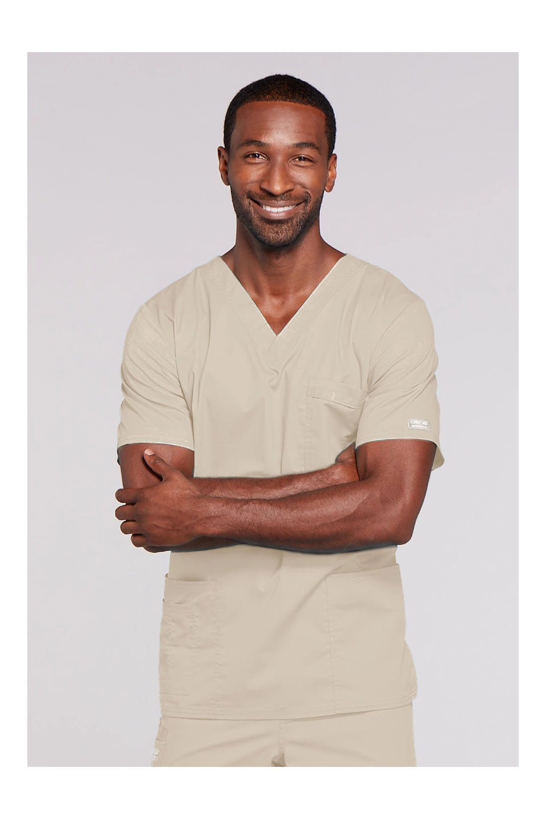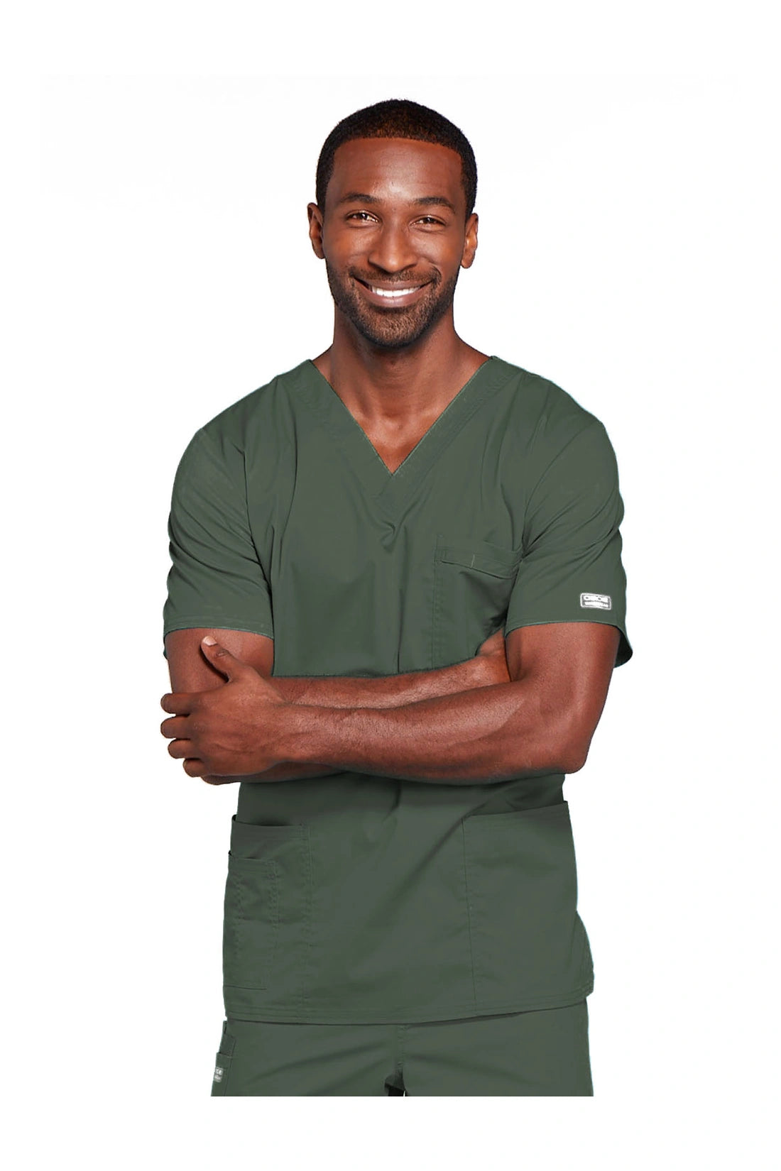 Cuello en V de ajuste tradicional unisex con costuras de doble aguja. El bolsillo del pecho cuenta con un soporte para instrumentos. También incluye dos bolsillos de parche, un bolsillo adicional para instrumentos/teléfono móvil en el lado derecho, canesú trasero y aberturas laterales. Longitud del centro de la espalda: 28
