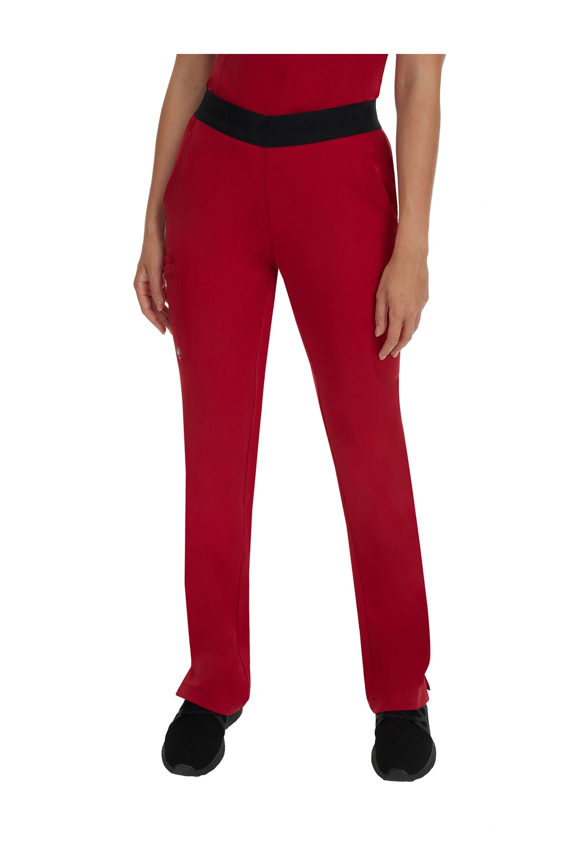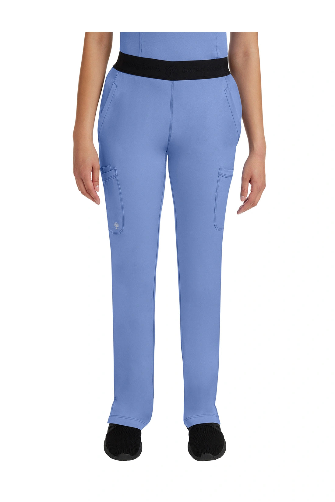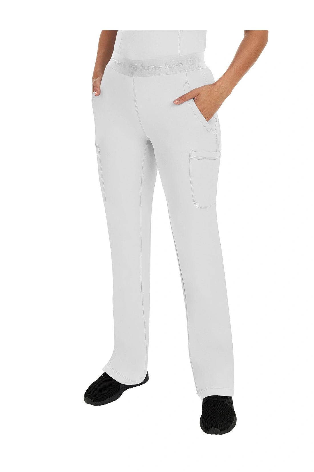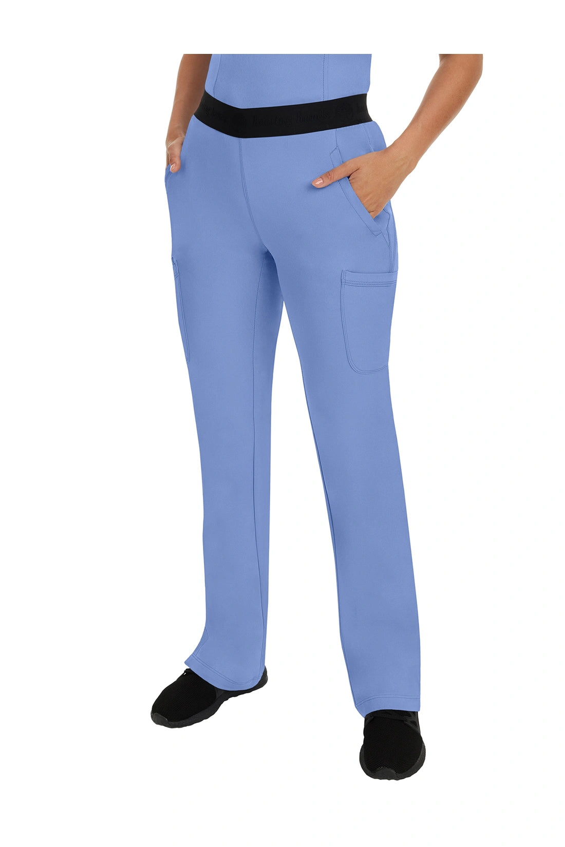 The Rachel Pant has an athletic elastic waistband is embroidered with the Healing Hands logo, and the contrast color waistband pops against the pant fabric, adding a fashionable touch to your work fit.