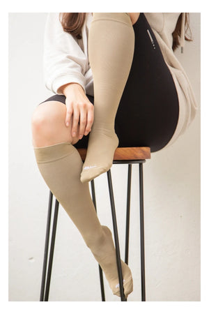 Innovadores calcetines elaborados en microfribra, con construcción avanzada y diseño formal largo que proporciona una compresión graduada.