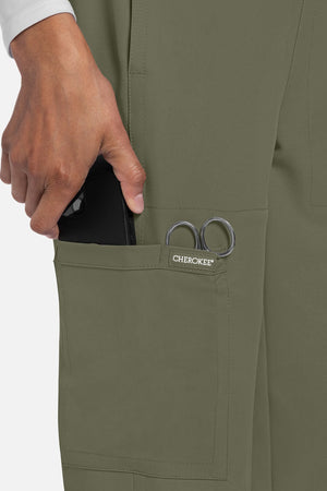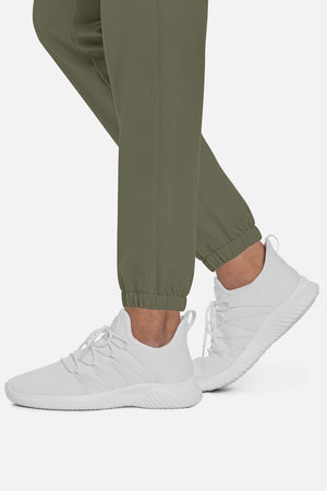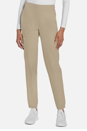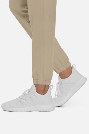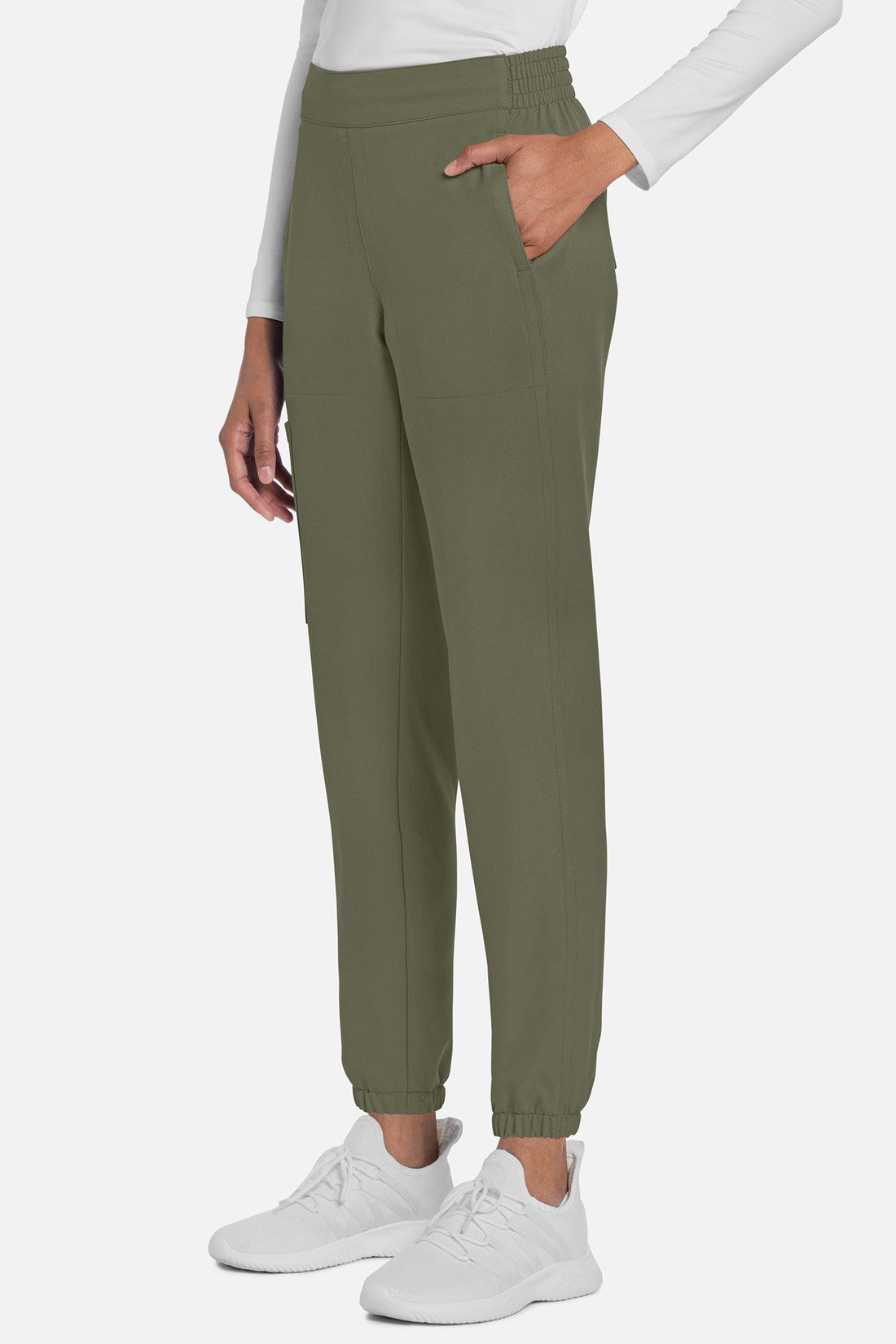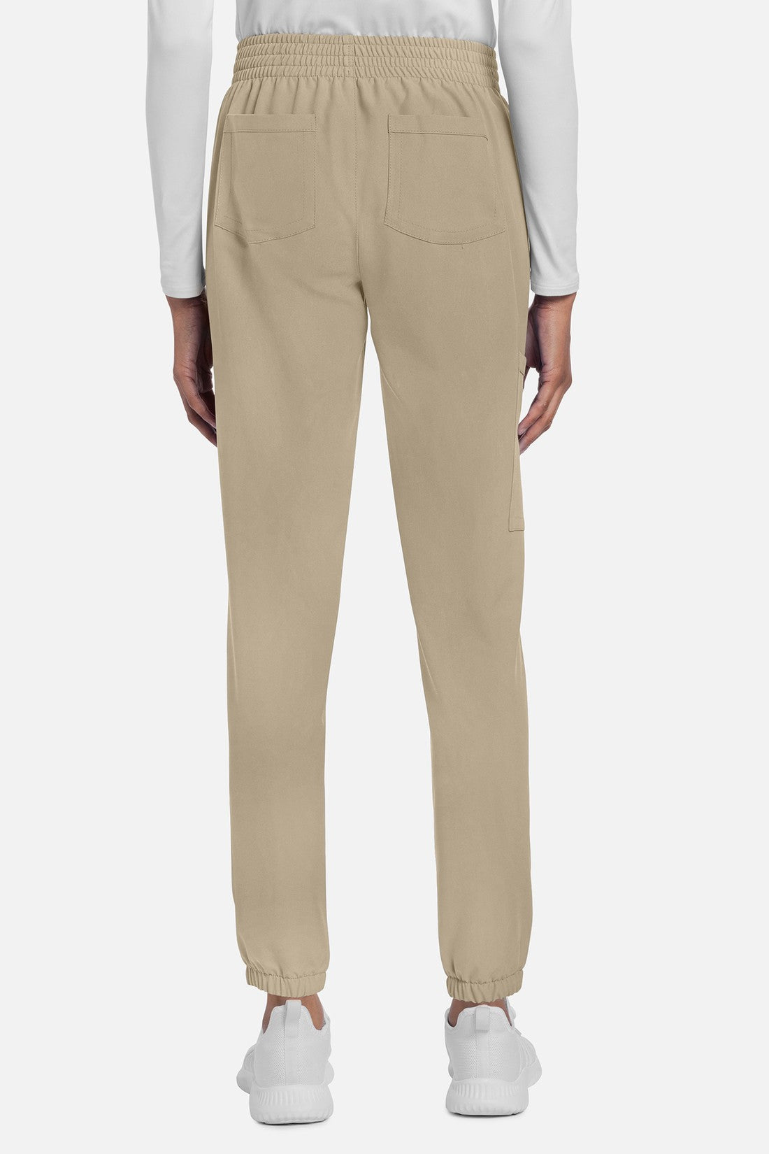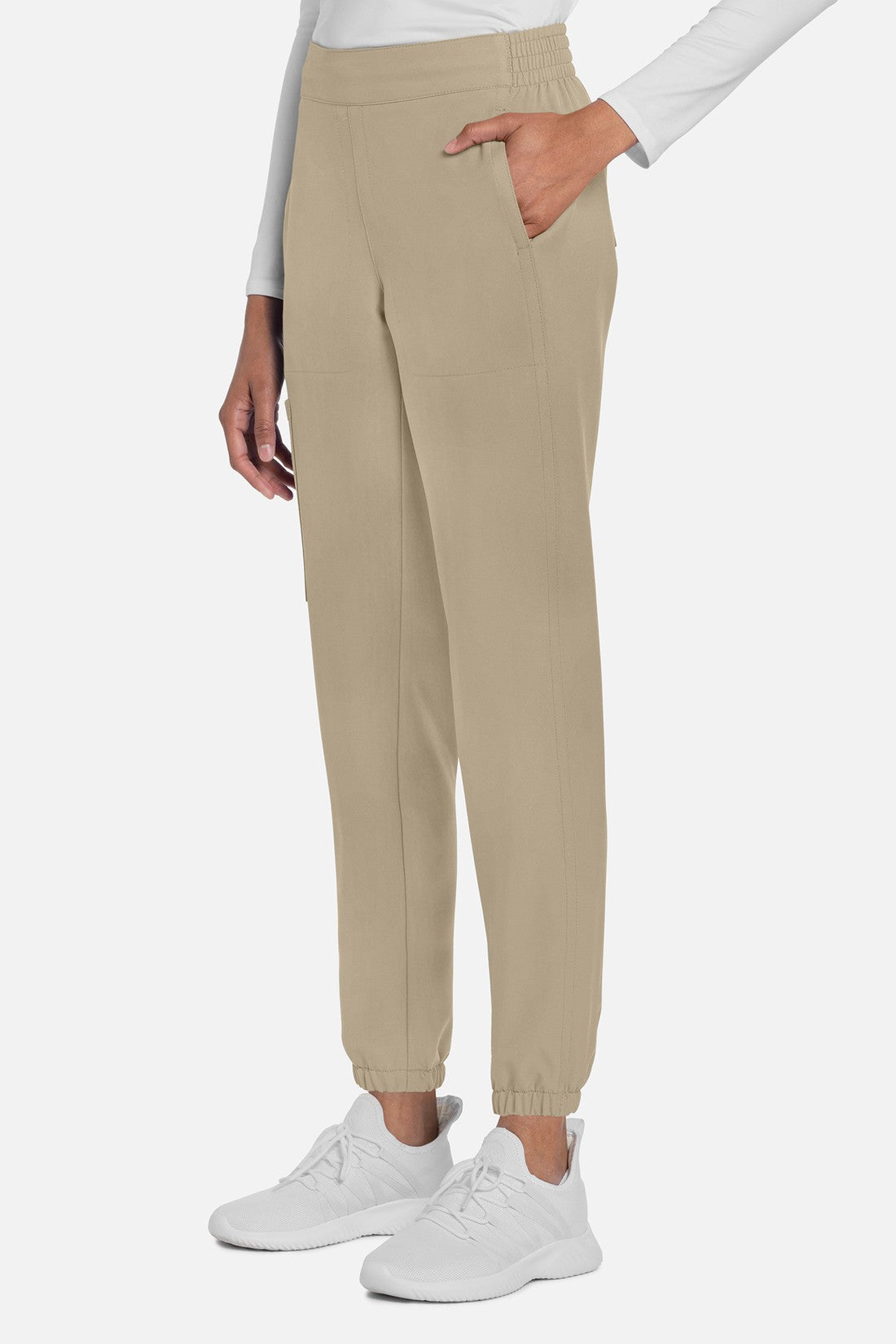 Este jogger de corte Modern Classic presenta una cintura plana delantera de tiro medio con cordón interior para ajustarlo. Los laterales y la parte trasera elásticos mantienen la cintura en su sitio. Hay un total de cinco bolsillos para un almacenamiento organizado: dos bolsillos delanteros en la costura, un bolsillo cargo en el lado derecho del usuario y dos bolsillos traseros de parche. Los bolsillos cargo y traseros tienen un ribete inverso en el dobladillo para mayor detalle. Las costuras adelantadas en las perneras delanteras añaden un estilo que alarga las piernas. Los pespuntes decorativos tonales y los dobladillos elásticos rematan este estilo. Pernera jogger cónica, abertura de 10». Entrepierna: 28 1/2».