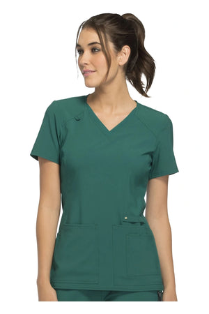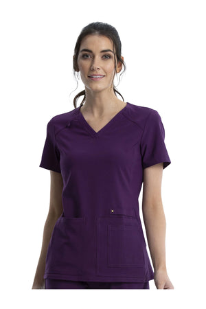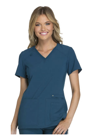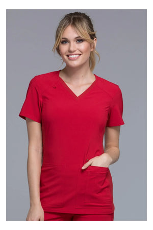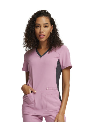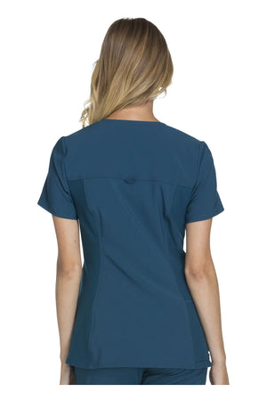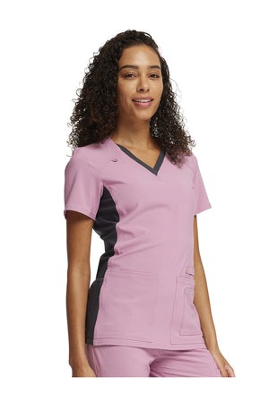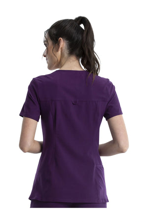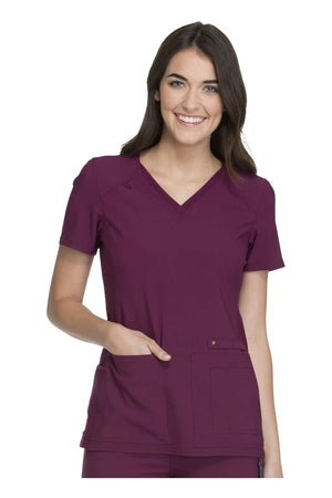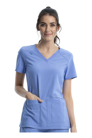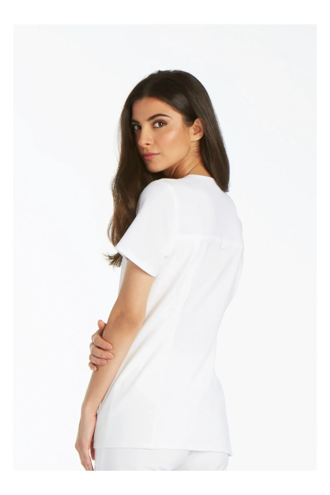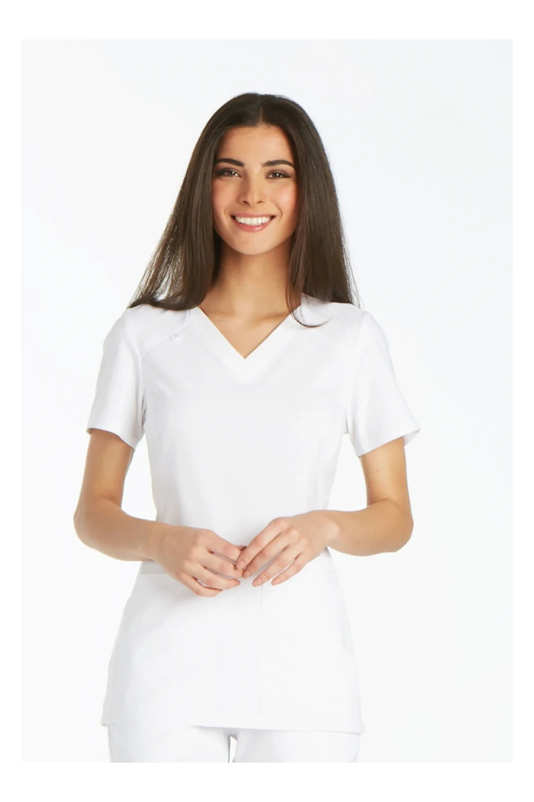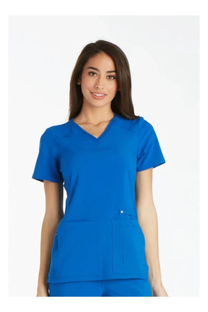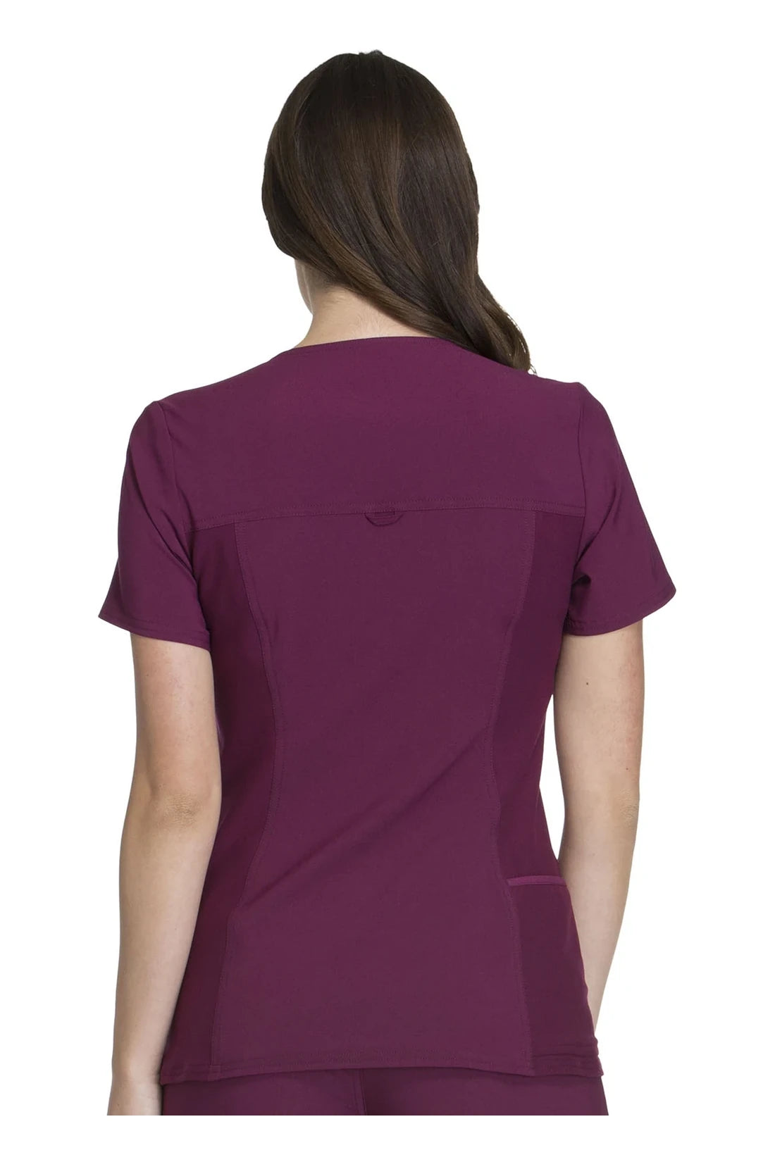 La camiseta de cuello en V de corte contemporáneo cuenta con dos bolsillos de parche delanteros, un bolsillo de tijera, un bolsillo en la cadera derecha y un bucle para instrumentos. También cuenta con un bucle para la tarjeta de identificación y un canesú trasero con bucle para la taquilla. Los paneles laterales delanteros y traseros son de punto suave y elástico para una mayor comodidad y un ajuste favorecedor. Longitud del centro de la espalda: 26". Este duradero tejido dobby elástico combinado con los suaves paneles de punto proporcionan la máxima comodidad, movimiento y flexibilidad.
