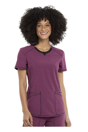 Esta parte superior Contemporary fit con escote redondo presenta un emburrido de punto acanalado en el escote muescado de las costuras delantera y trasera de los canesús, además de costuras princesa delantera y trasera para ajuste y forma. Tiene cuatro bolsillos, dos bolsillos delanteros con parche (bolígrafo/instrumento en el que lo lleva)