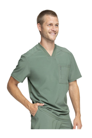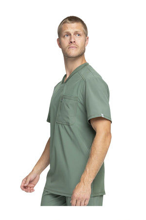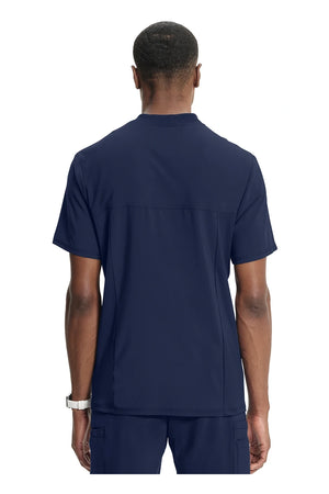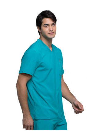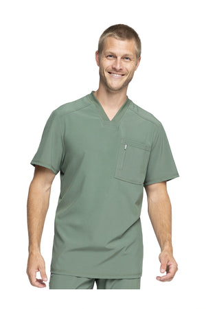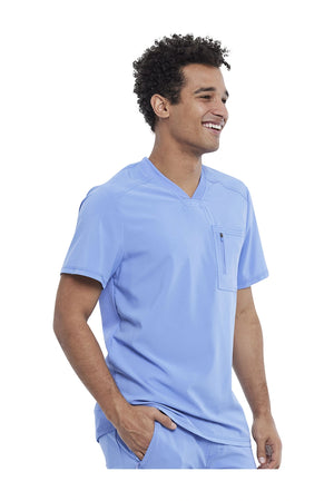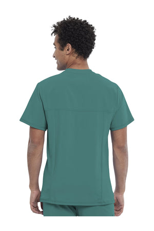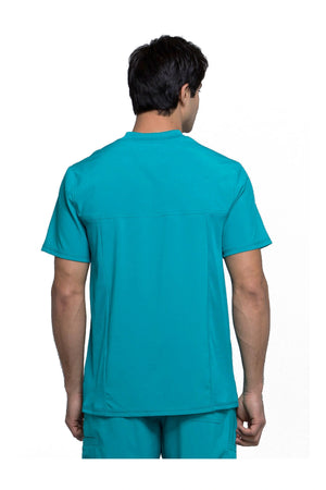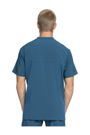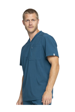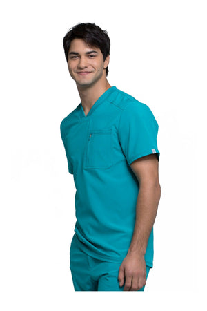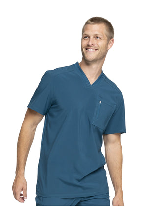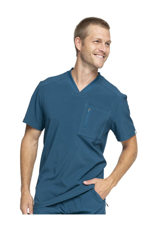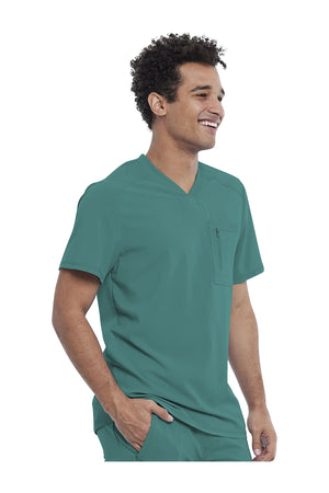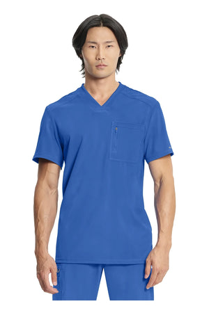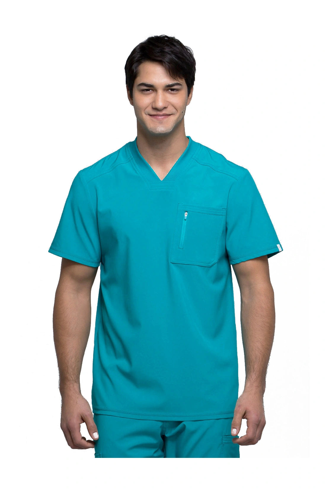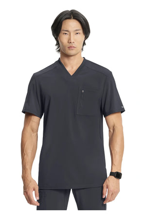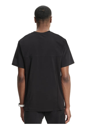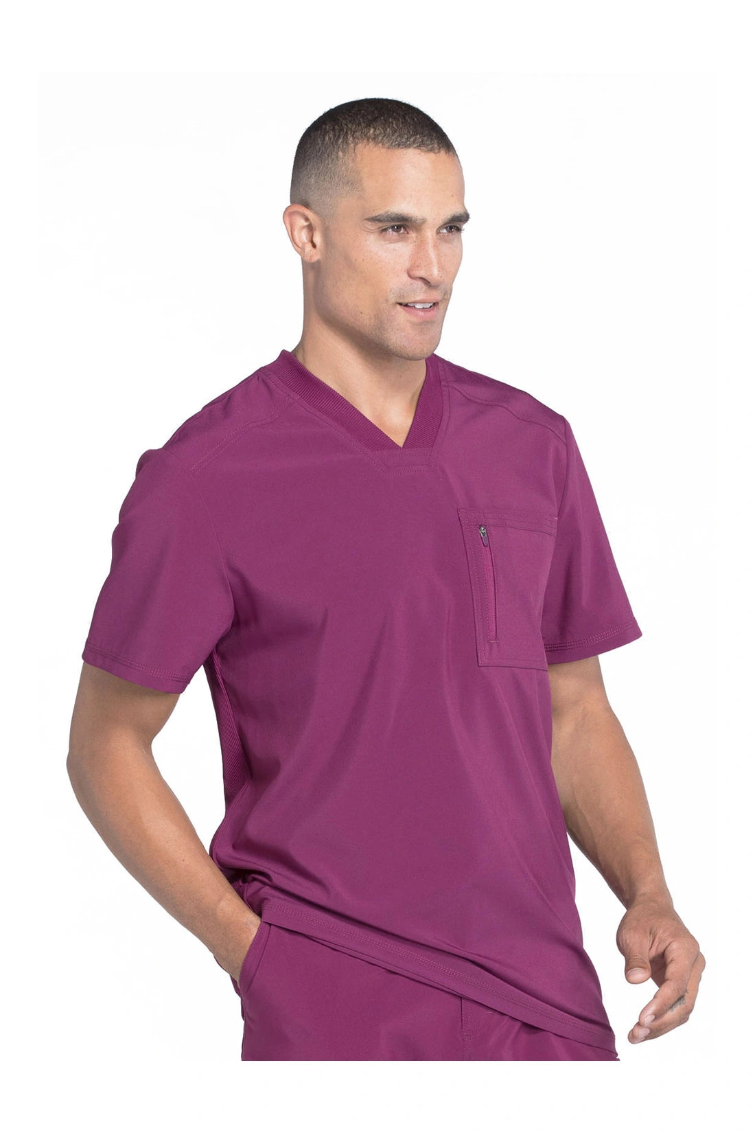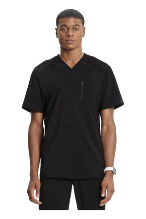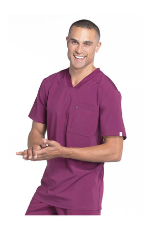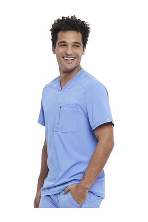 La camiseta de cuello en V de corte moderno para hombre cuenta con un bolsillo en el pecho con cierre de cremallera para mayor seguridad, un lazo para el instrumento en la manga izquierda, canesúes delanteros y traseros con pespuntes a tres agujas y paneles de punto elástico en el cuello y la espalda para mayor comodidad. Este estilo se ve muy bien metido o sin meter. Longitud en el centro de la espalda: 29 1/2". El cómodo tejido de popelina elástica y el punto de canalé súper elástico es la combinación perfecta para los profesionales de la salud.