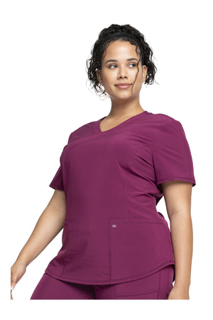 La camiseta de corte contemporáneo tiene costuras princesa delante y detrás y un dobladillo en cola de camisa. Tiene tres bolsillos: dos bolsillos delanteros de parche y un bolsillo multiusos a la derecha. Largo en el centro de la espalda: 26