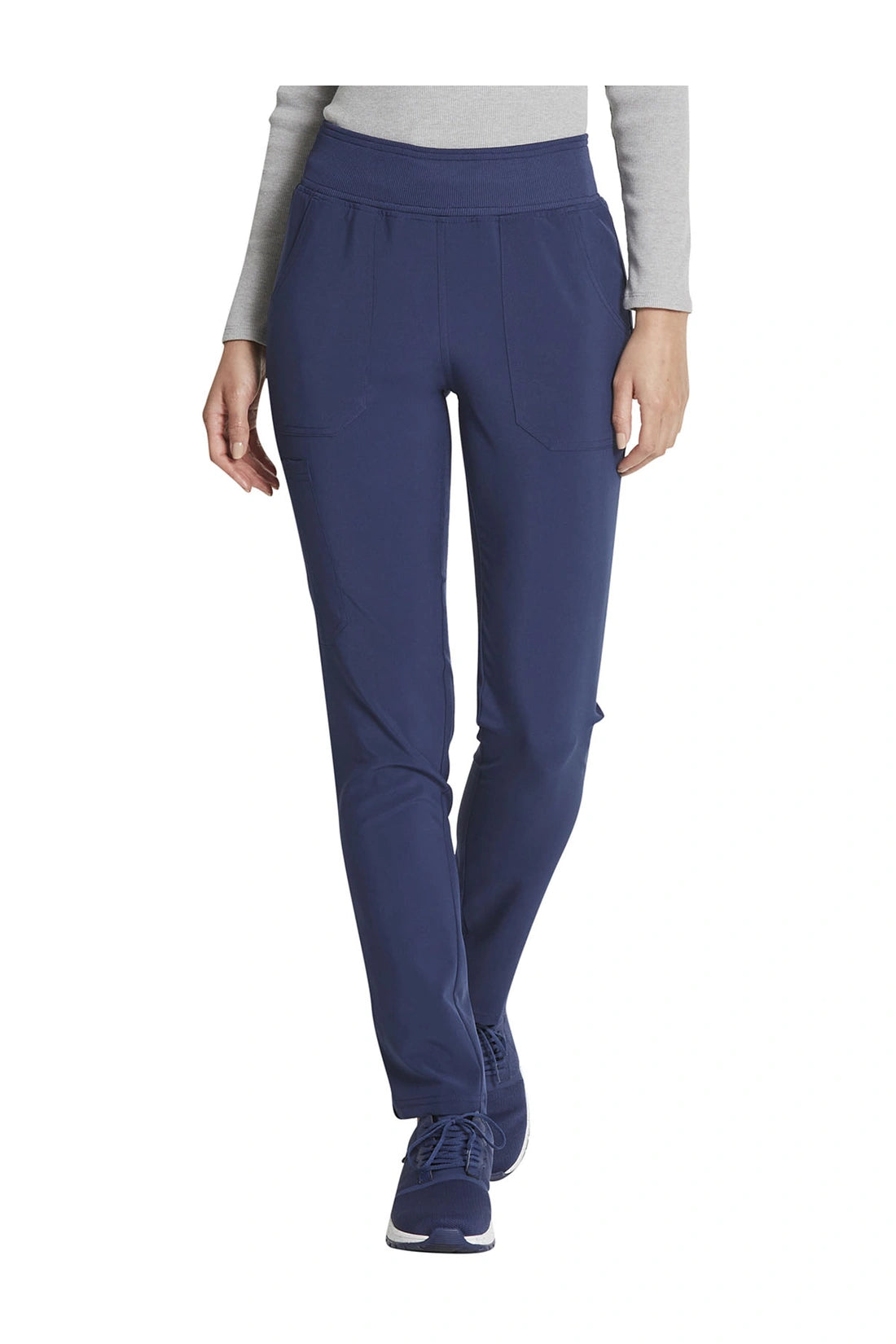 Este pantalón Contemporary fit de tiro medio tiene una cintura elástica cubierta de punto de canalé con cordón interior. Dispone de cinco bolsillos: dos bolsillos delanteros de parche, un bolsillo tipo cargo con ranura para bolígrafo y dos bolsillos traseros de parche. Las aberturas laterales completan el look. Pierna cónica, apertura de 12". Costura interior de 30