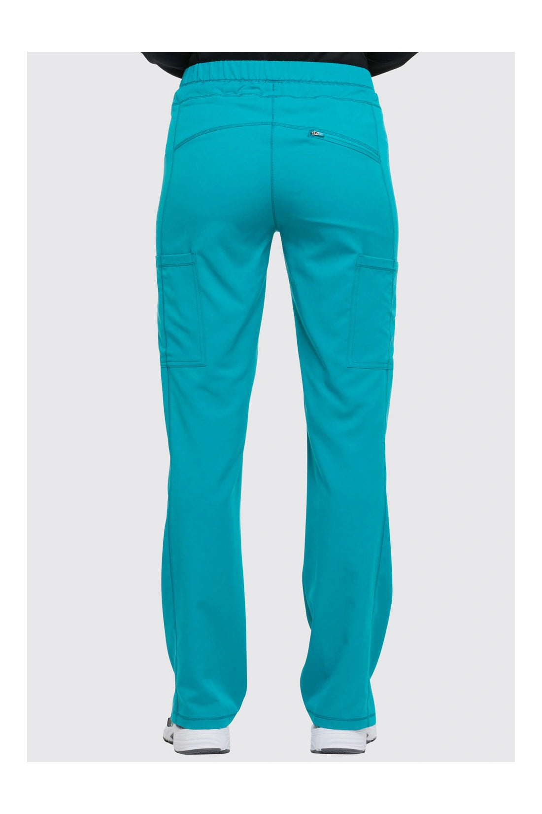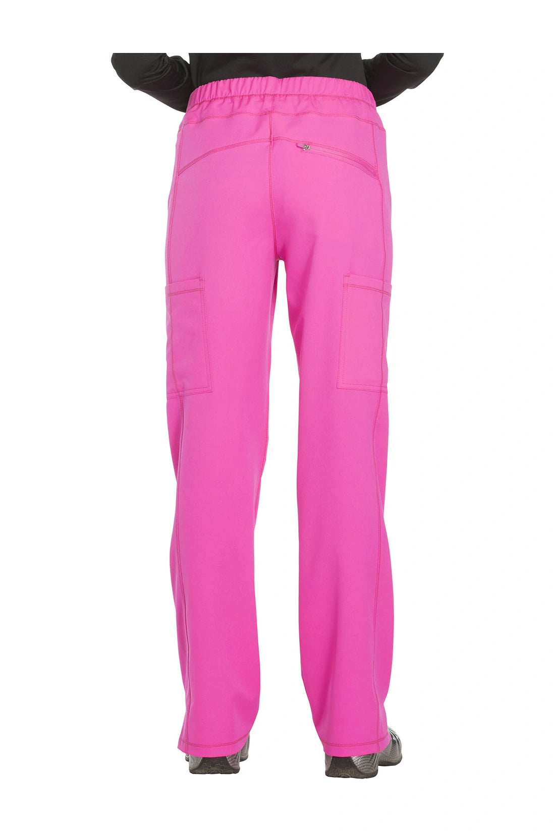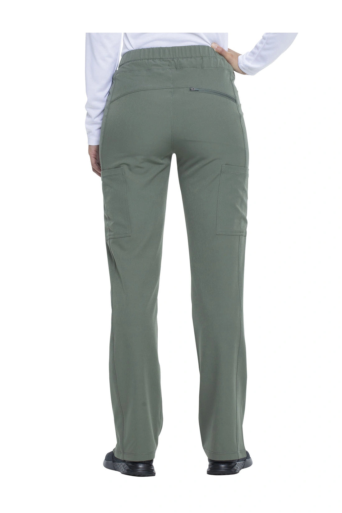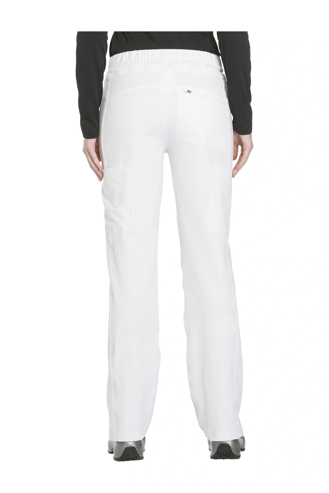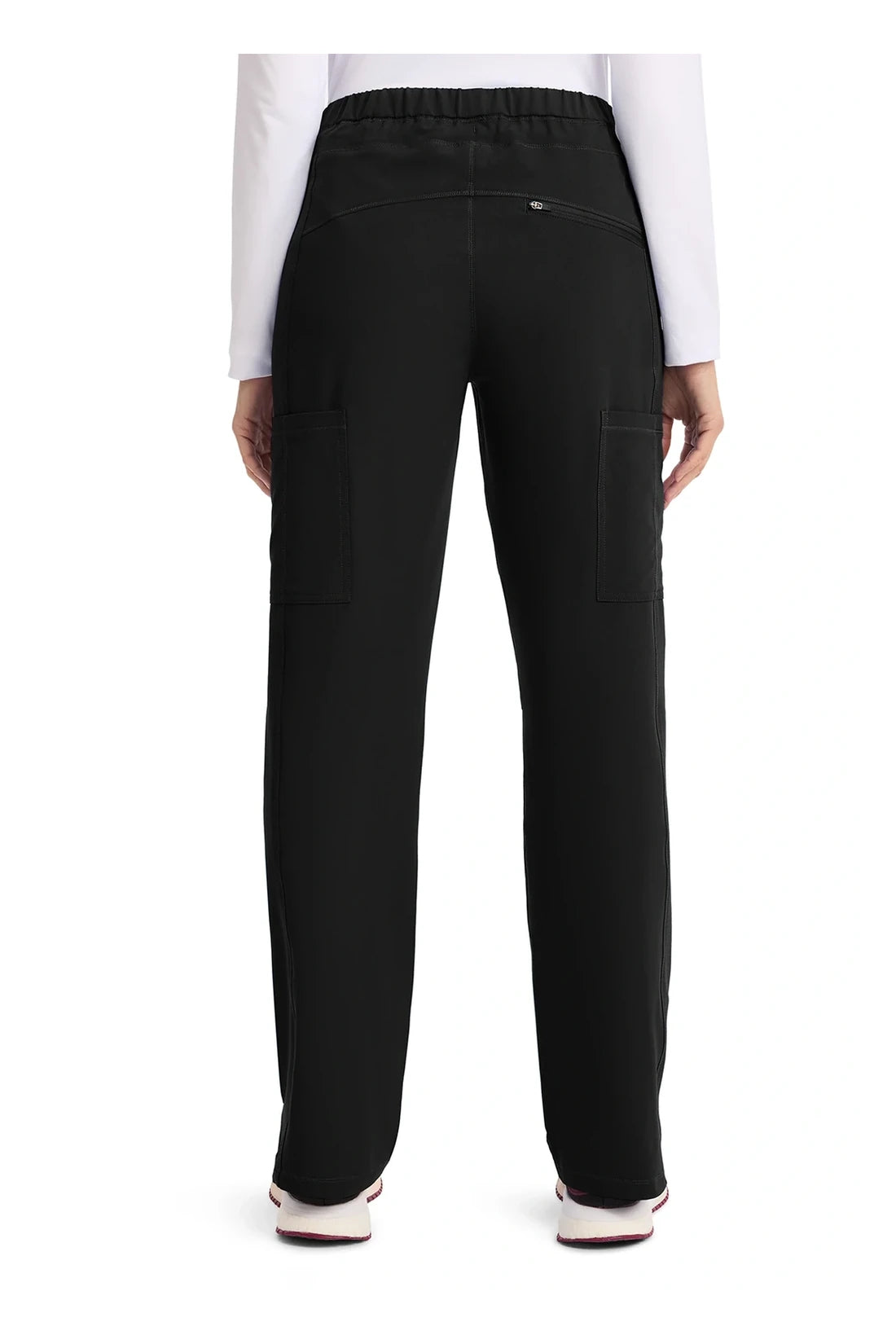 Un pantalón de corte contemporáneo, de tiro medio y pierna recta, con cintura elástica con cordón funcional, bolsillos en las costuras, bolsillos tipo cargo, bolsillo trasero con cremallera en el canesú, paneles laterales, aberturas laterales y detalles de pespuntes. Costura: 30 1/2