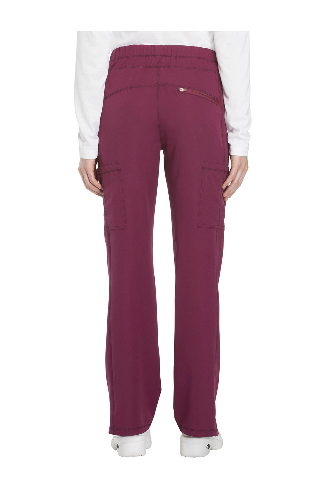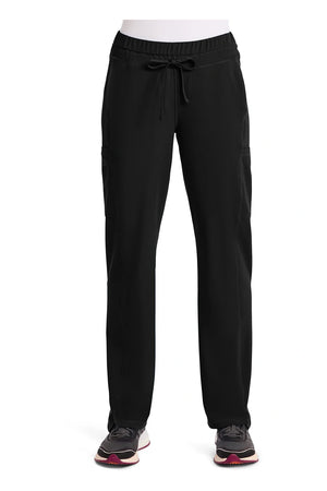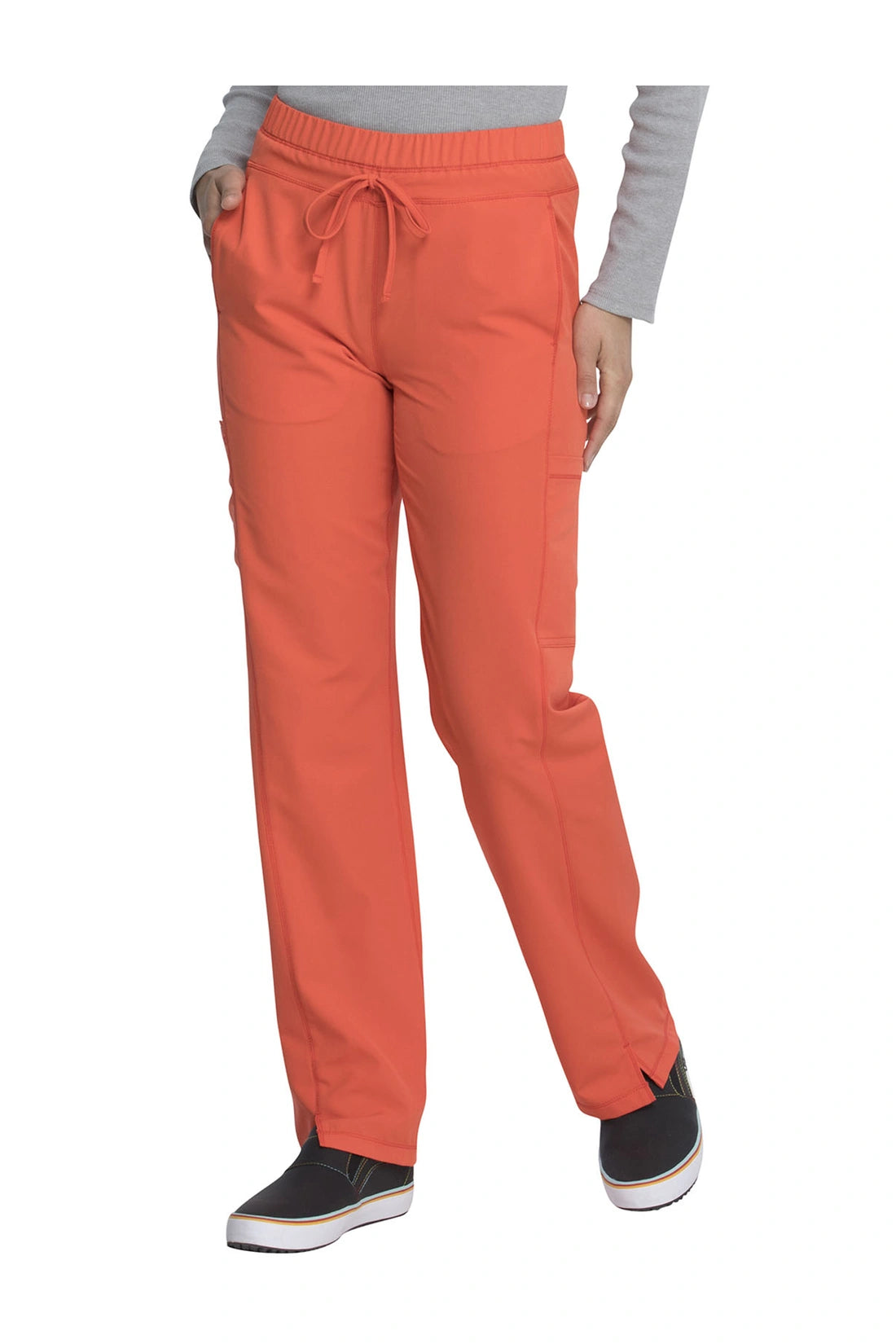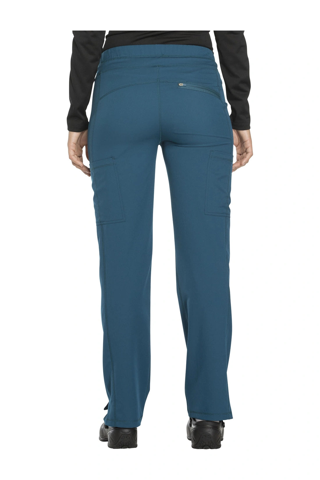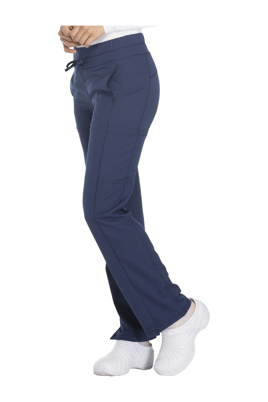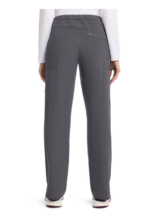 Un pantalón de corte contemporáneo, de tiro medio y pierna recta, con cintura elástica con cordón funcional, bolsillos en las costuras, bolsillos tipo cargo, bolsillo trasero con cremallera en el canesú, paneles laterales, aberturas laterales y detalles de pespuntes. Costura: 30 1/2