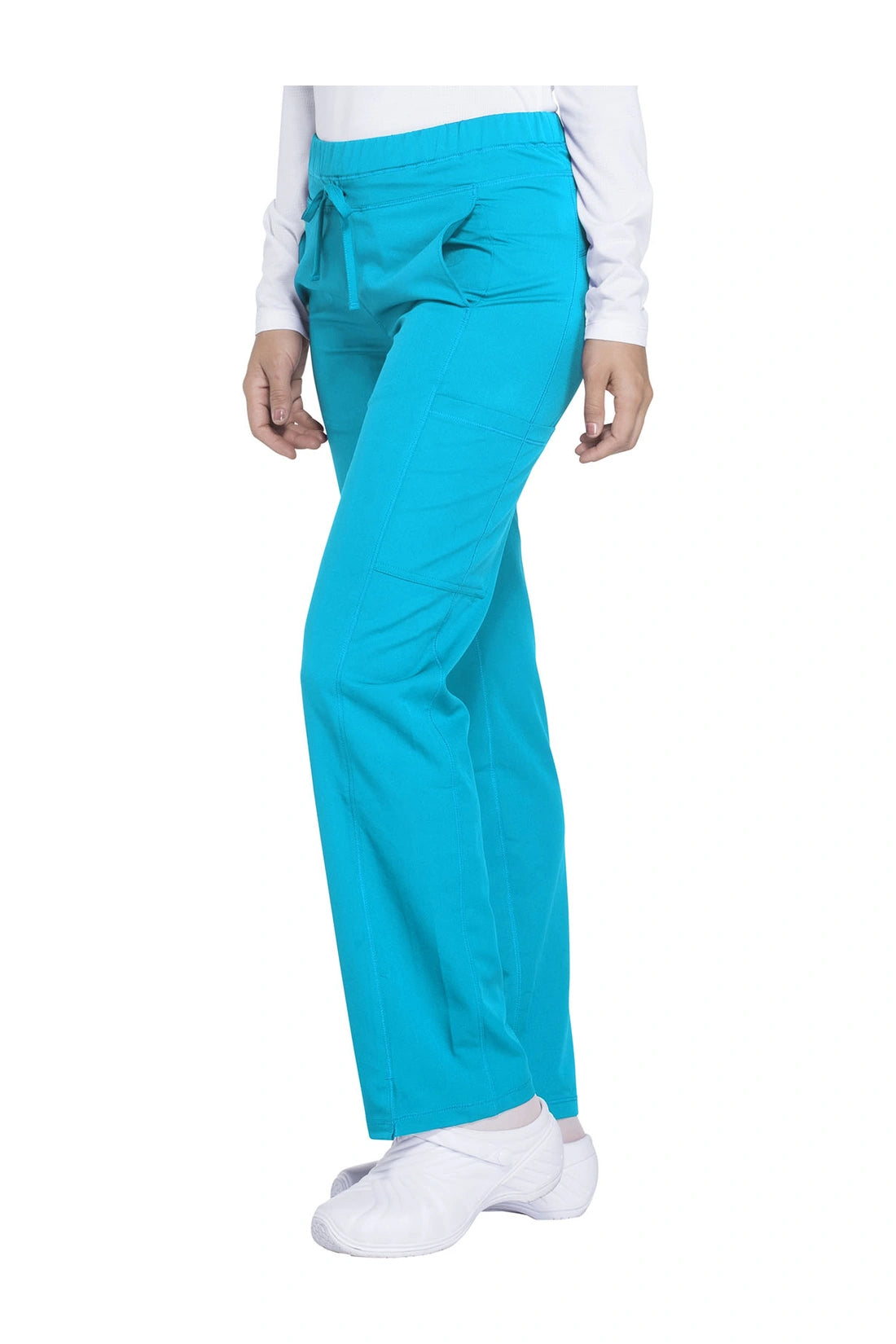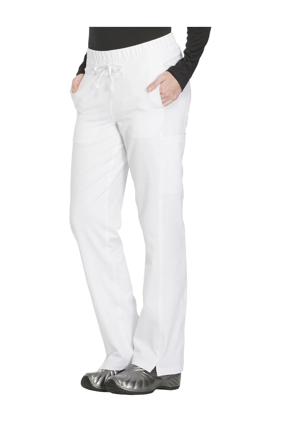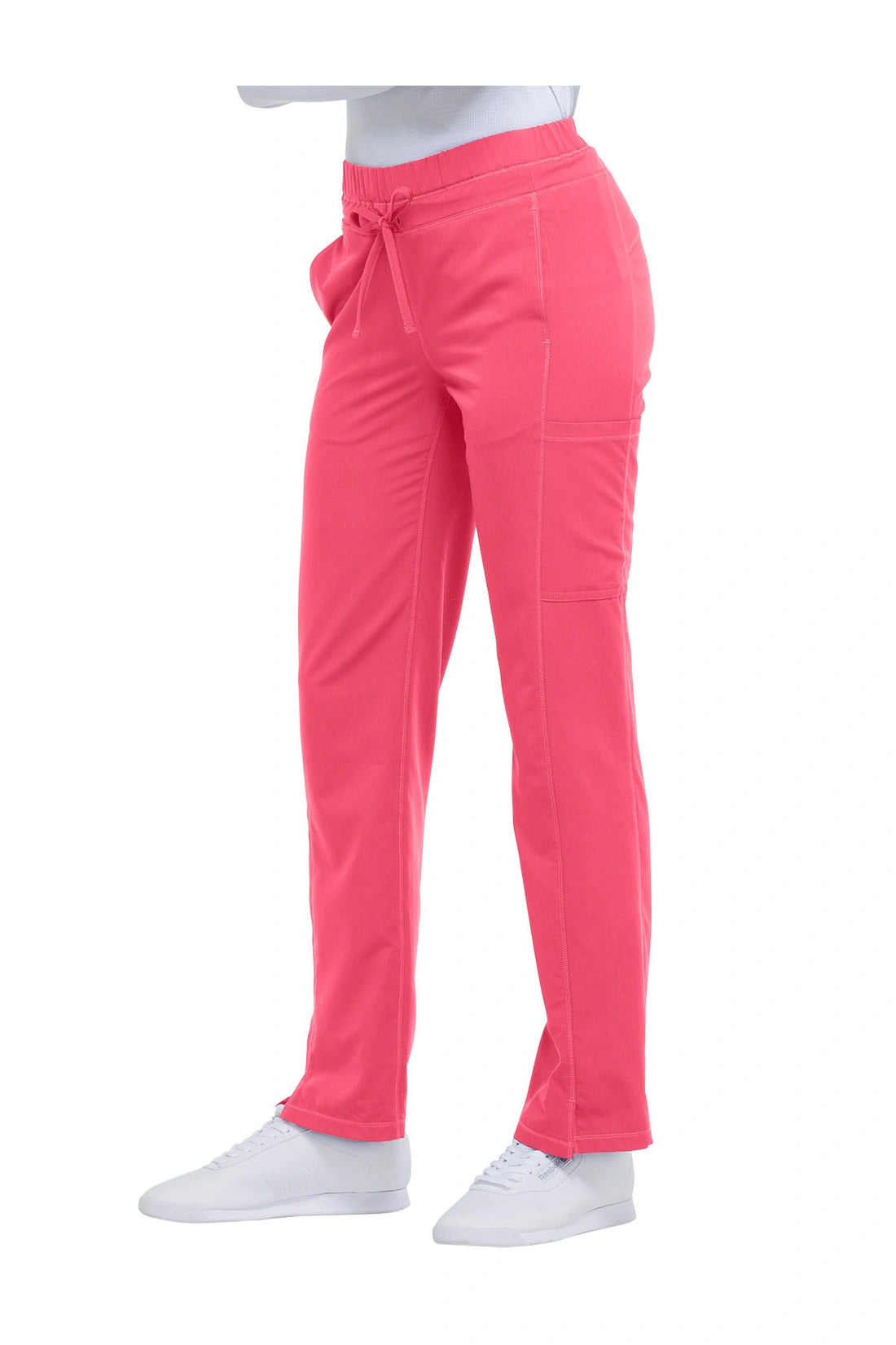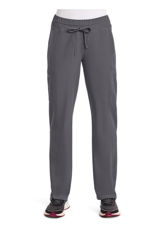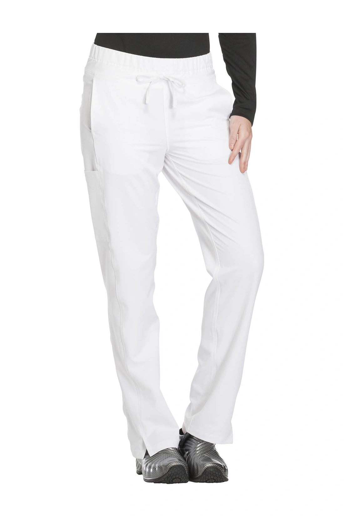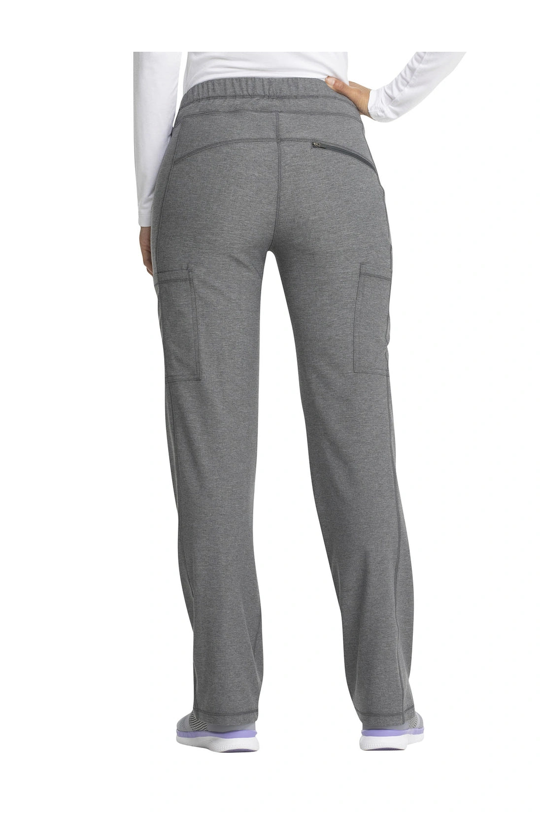 Un pantalón de corte contemporáneo, de tiro medio y pierna recta, con cintura elástica con cordón funcional, bolsillos en las costuras, bolsillos tipo cargo, bolsillo trasero con cremallera en el canesú, paneles laterales, aberturas laterales y detalles de pespuntes. Costura: 30 1/2