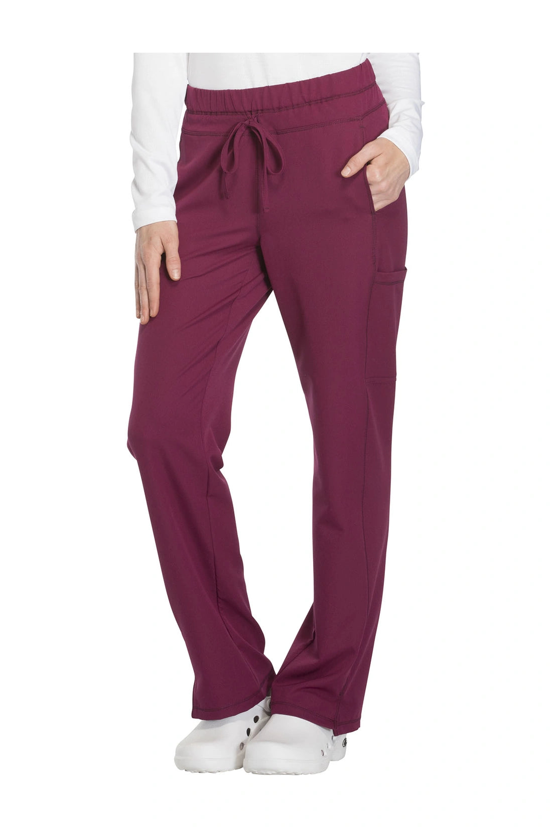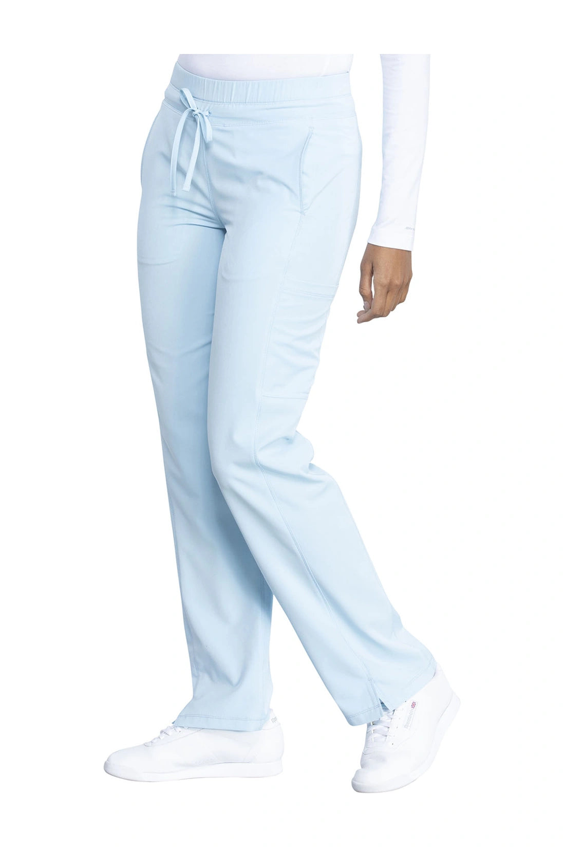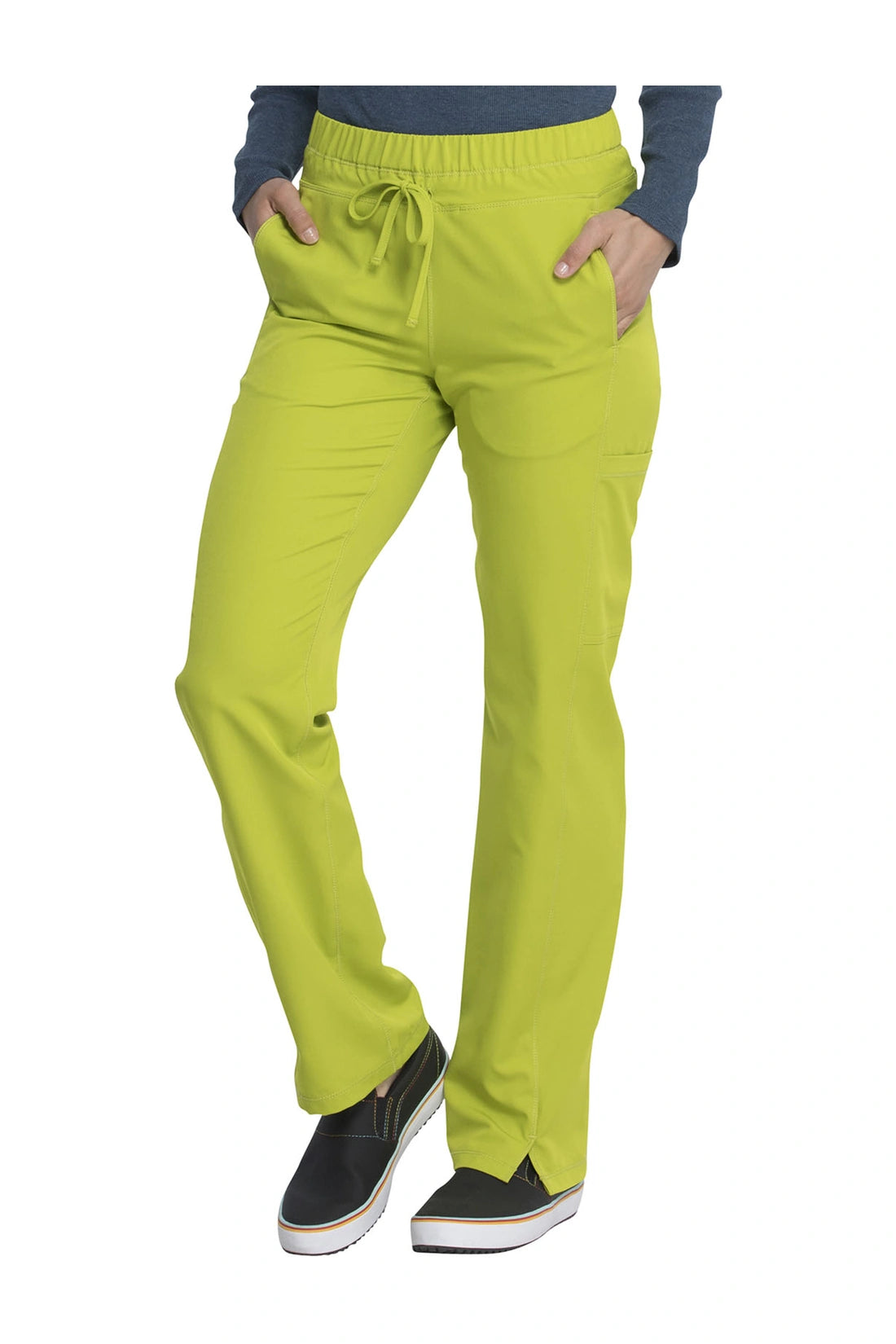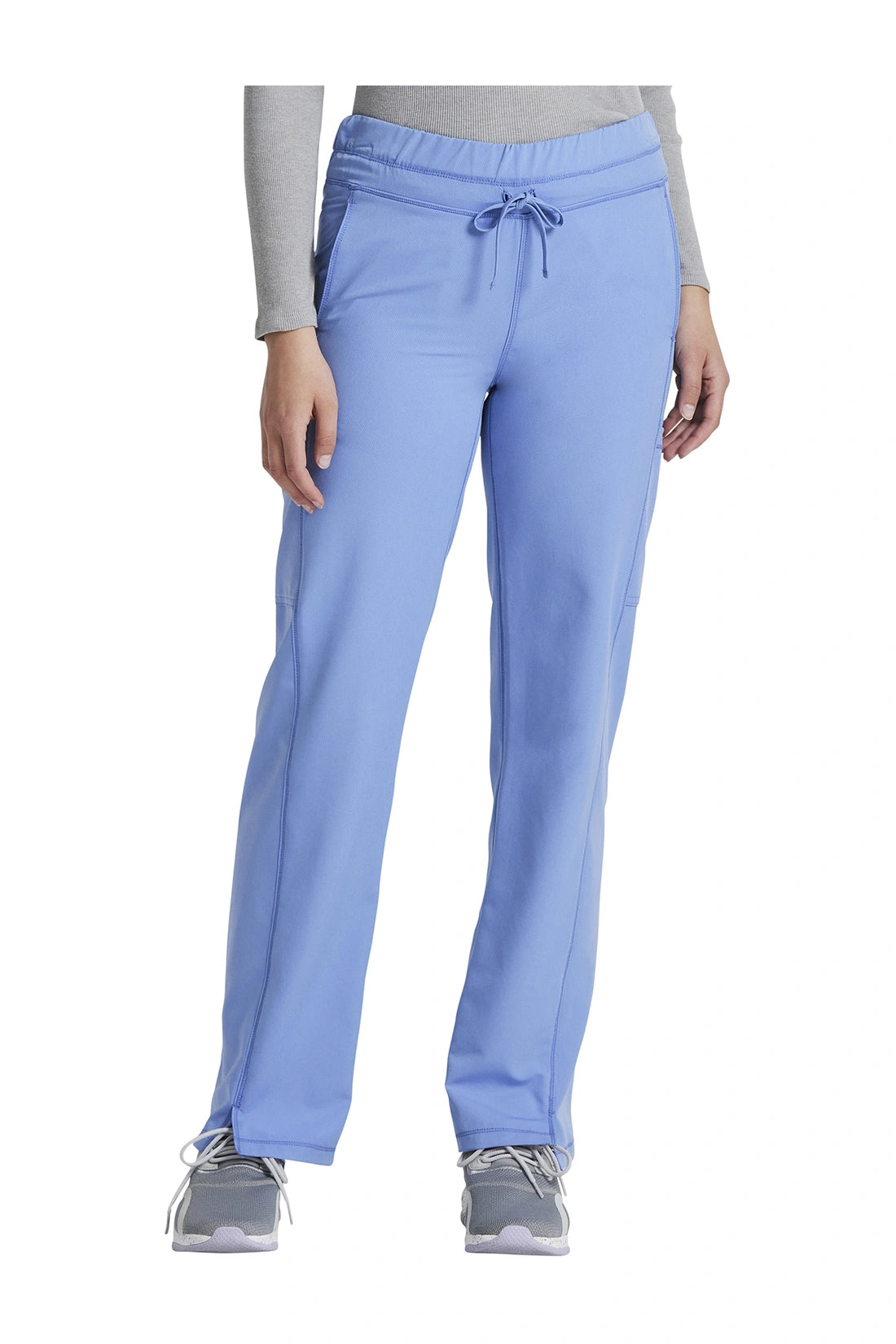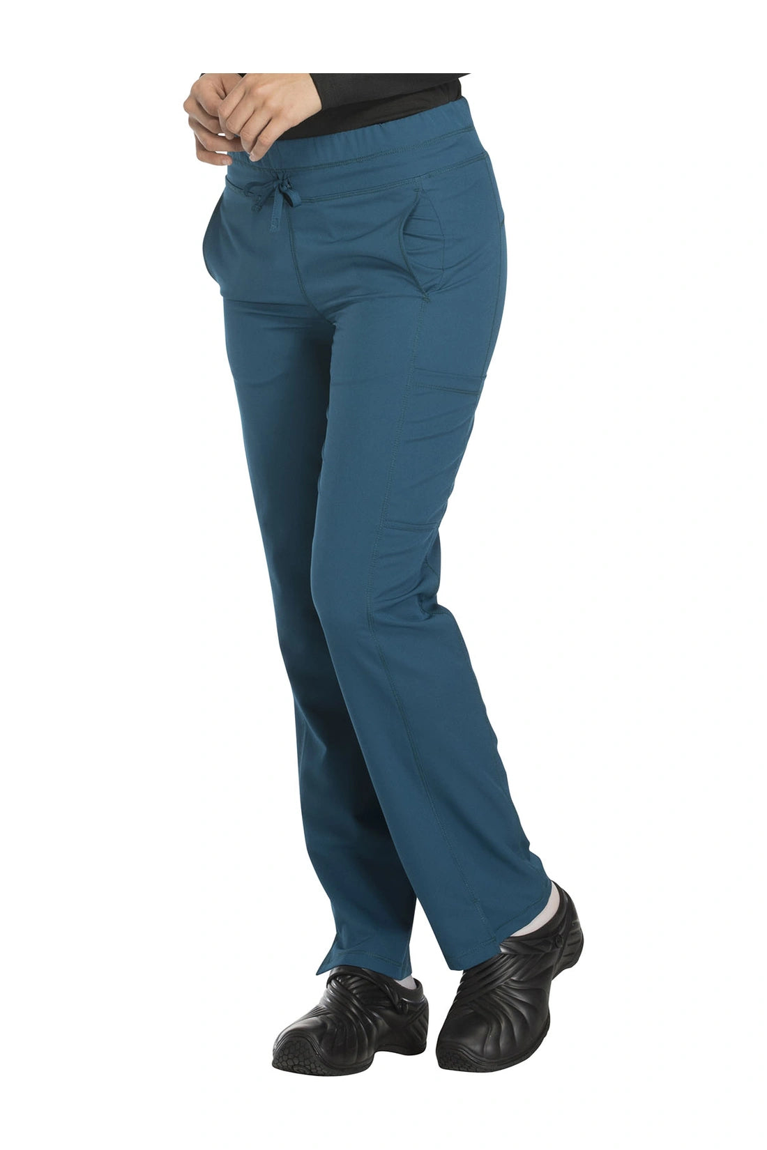 Un pantalón de corte contemporáneo, de tiro medio y pierna recta, con cintura elástica con cordón funcional, bolsillos en las costuras, bolsillos tipo cargo, bolsillo trasero con cremallera en el canesú, paneles laterales, aberturas laterales y detalles de pespuntes. Costura: 30 1/2