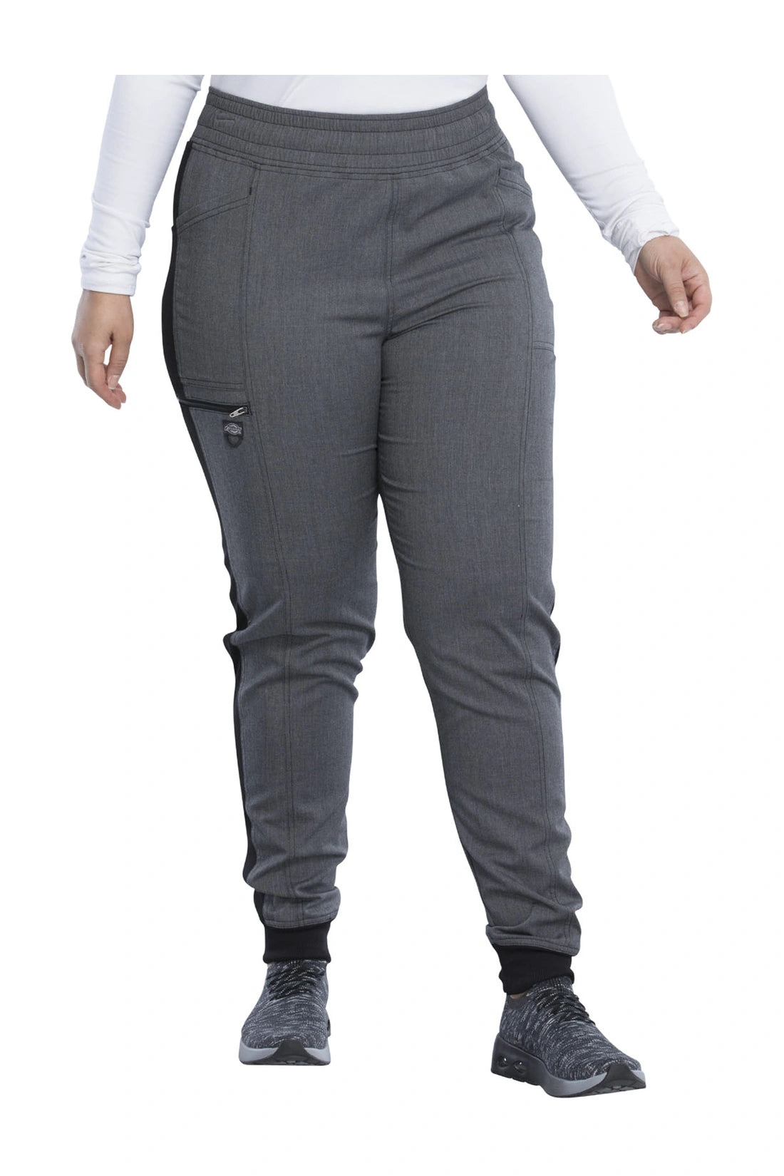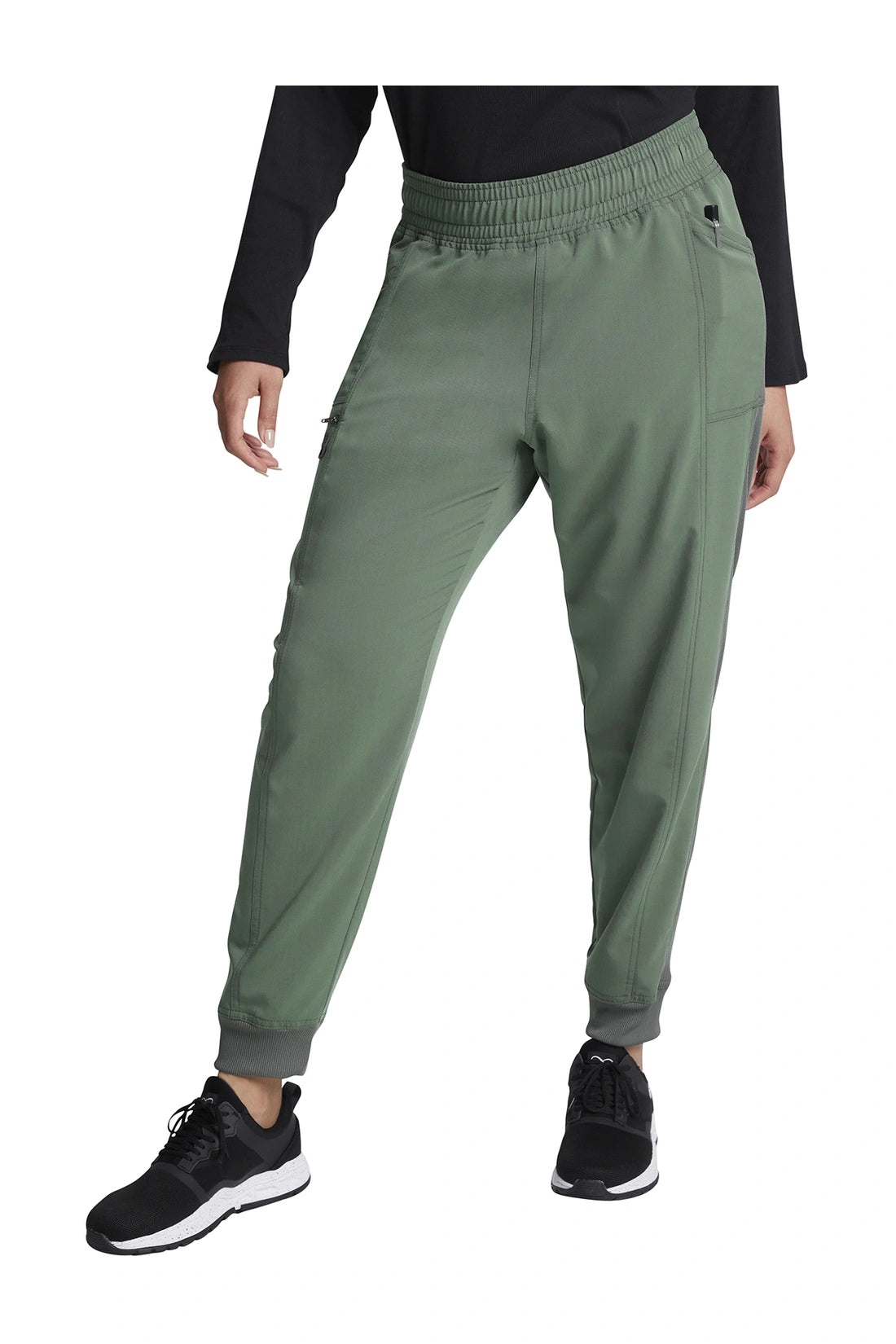 Este jogger de corte contemporáneo y altura media cuenta con una cintura elástica cerrada y un cordón interior. Tiene costuras en la parte delantera de la pierna para conseguir un efecto de alargamiento y paneles laterales traseros en cómodo punto elástico. Cinco bolsillos ofrecen mucho espacio de almacenamiento: dos amplios bolsillos delanteros, un bolsillo de seguridad con cremallera con un cordón elástico a la derecha del usuario y dos bolsillos traseros. Los bolsillos traseros cuentan con un ribete en el dobladillo invertido que aporta puntos de diseño adicionales. Los puños de punto elástico completan el look. Pierna cónica, apertura de 8 1/2". Costura interior: 29