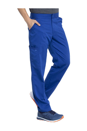 Este pantalón de pernera recta y altura media presenta una bragueta delantera con cintura elástica completa y cordón interior para un ajuste seguro. Ofrece dos bolsillos delanteros de parche, un bolsillo oculto con cremallera en el lado derecho del usuario, un bolsillo tipo cargo, dos bolsillos traseros de parche y una presilla decorativa. Etiqueta tejida de Dickies en el mismo tono. Ajuste para hombre. Costura interior: 31 1/2", Apertura de la pierna: 16