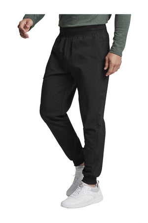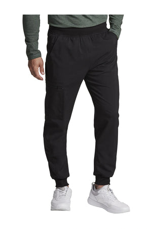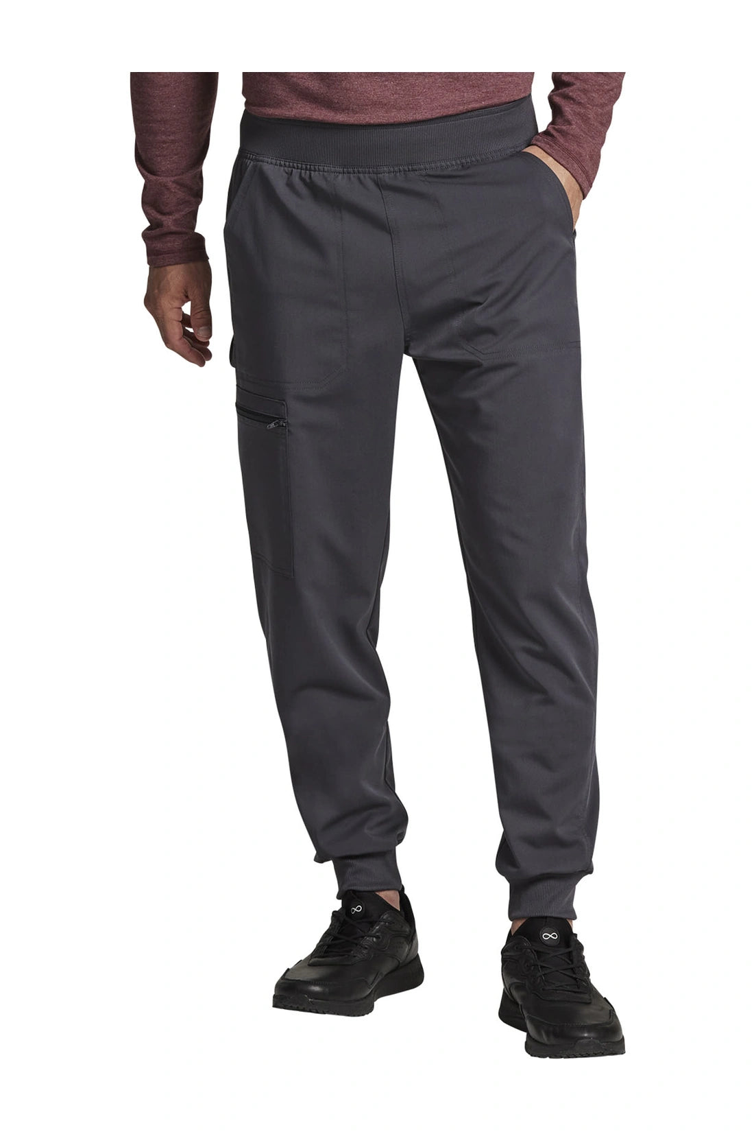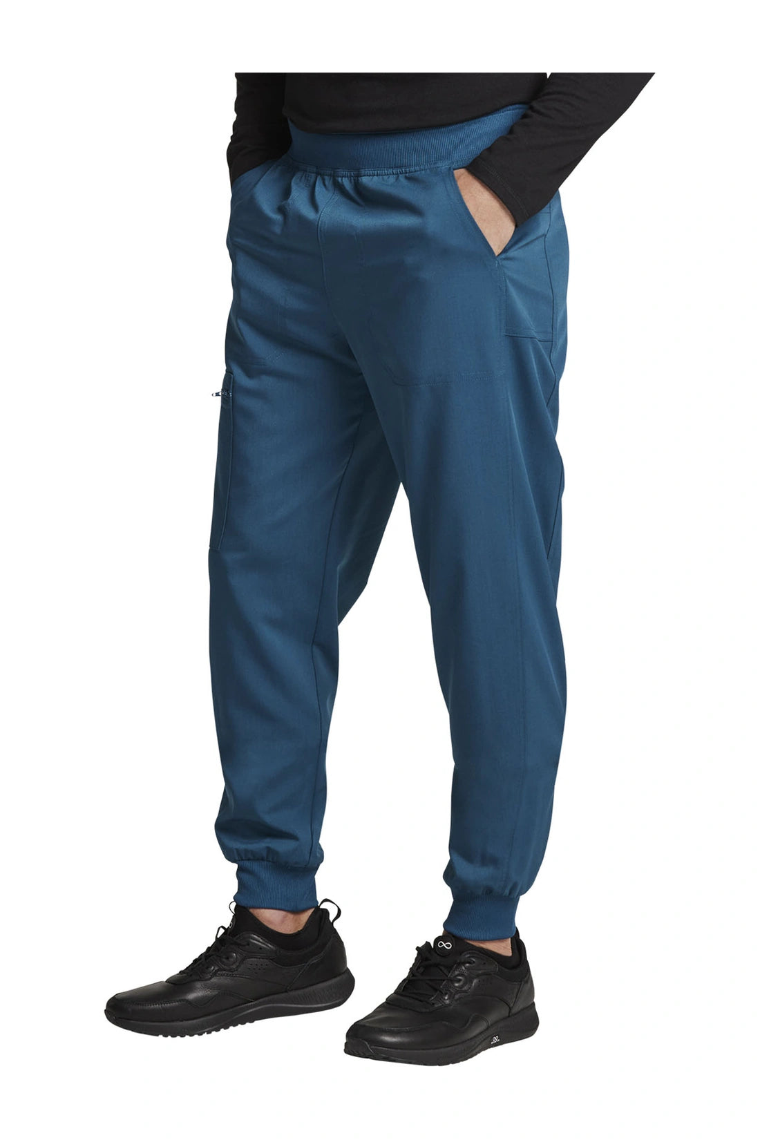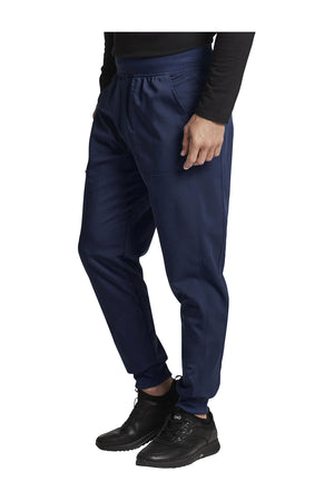 Este jogger de ajuste medio para hombre cuenta con una cintura elástica cubierta de punto de canalé con cordón interior. Dispone de cinco bolsillos: dos delanteros, uno para el móvil en el lado izquierdo, otro con cremallera y otro trasero de parche. Un bucle de utilidad en el lado derecho del usuario y los puños de punto elástico completan el look. Pierna cónica, apertura de 10 1/2". Costura interior: 30