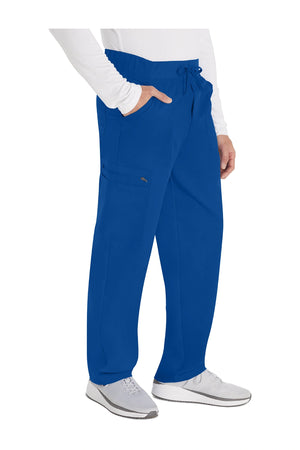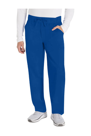 Este pantalón de corte masculino con cremallera y bragueta tiene cintura con cordón para mayor ajuste y seguridad. Inserciones de punto elástico en la cintura. Dispone de seis bolsillos para un almacenamiento organizado: dos bolsillos delanteros, dos bolsillos cargo (izquierdo con ranura para bolígrafo, derecho con cierre de cremallera) más un bolsillo adicional en capas en el cargo derecho del usuario, y un bolsillo trasero. Las costuras decorativas en las piernas completan el look. Altura media con pierna recta, abertura de 16 ½». Entrepierna: 32».