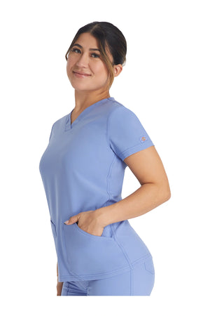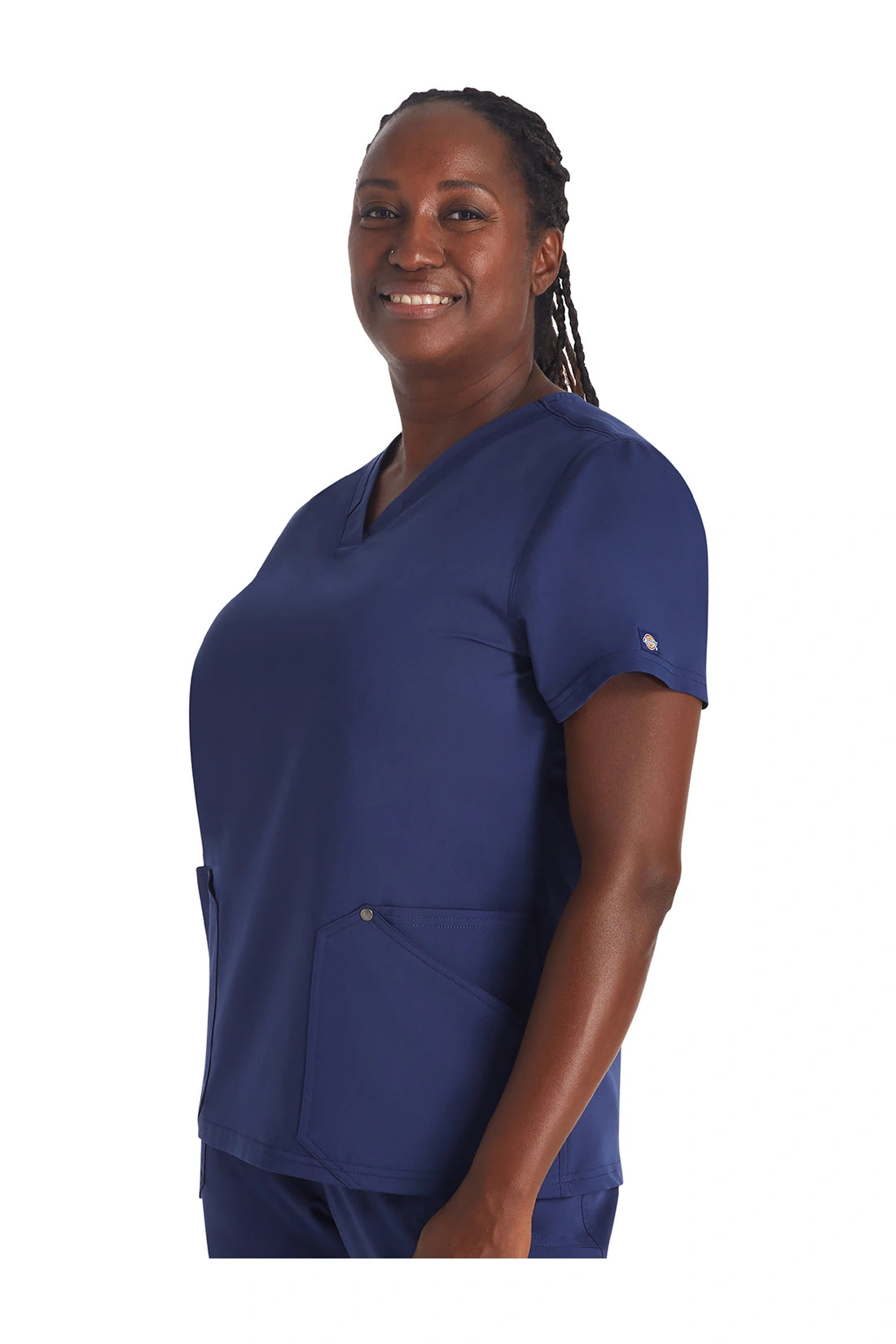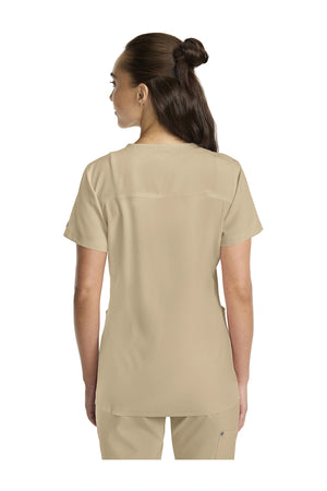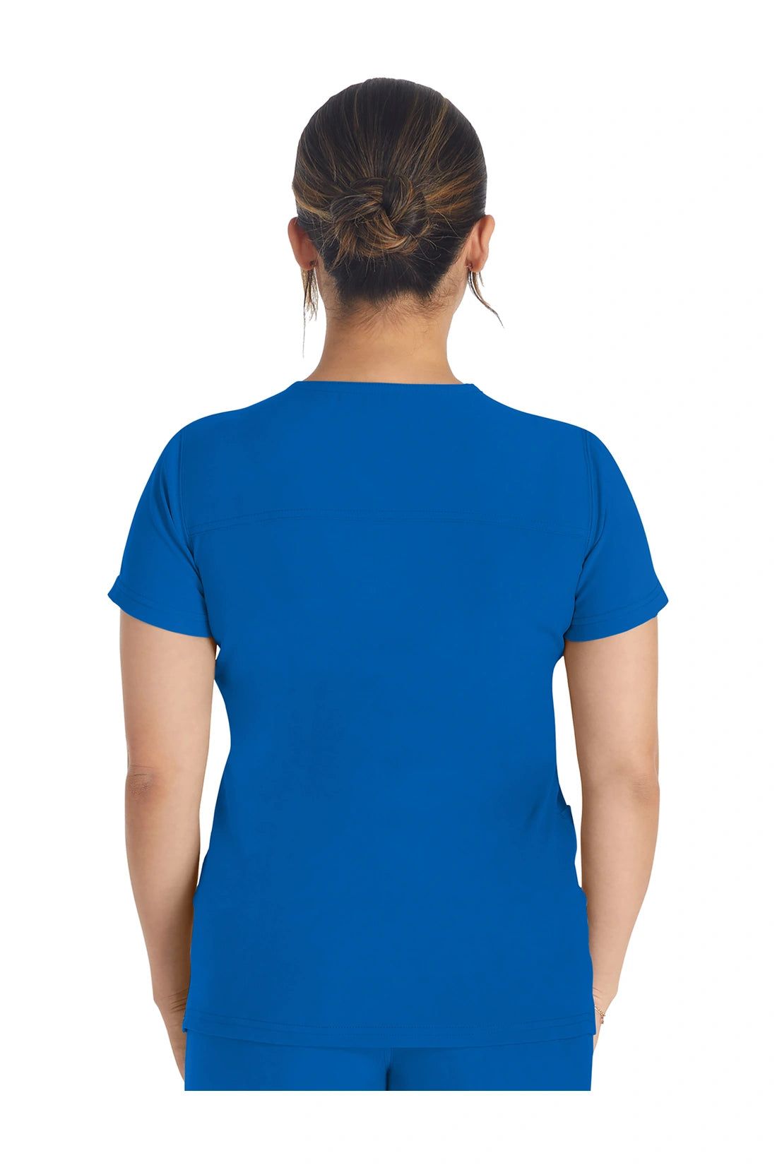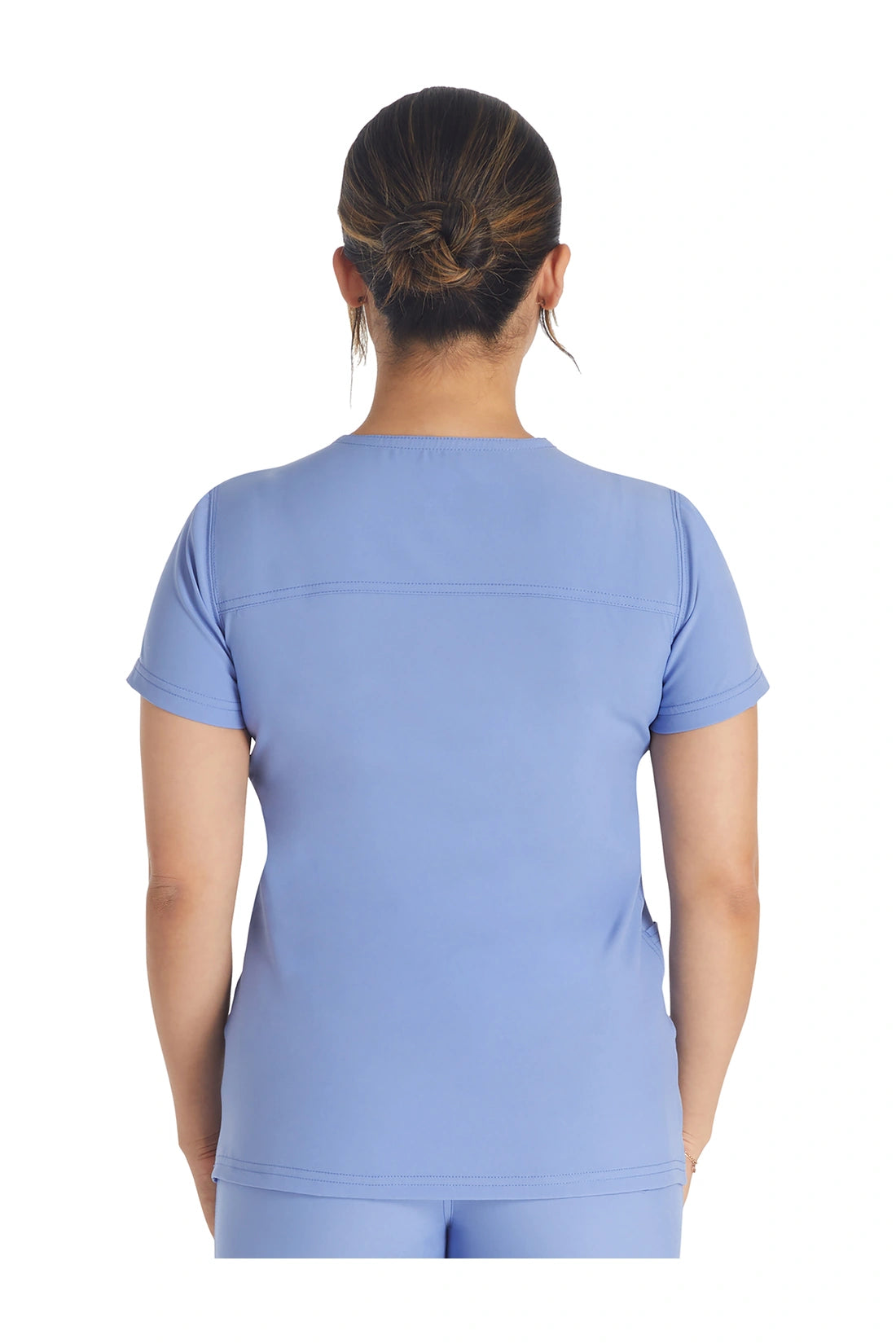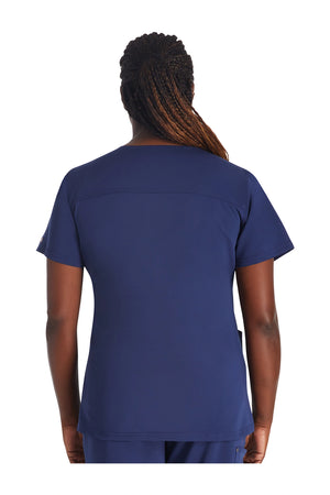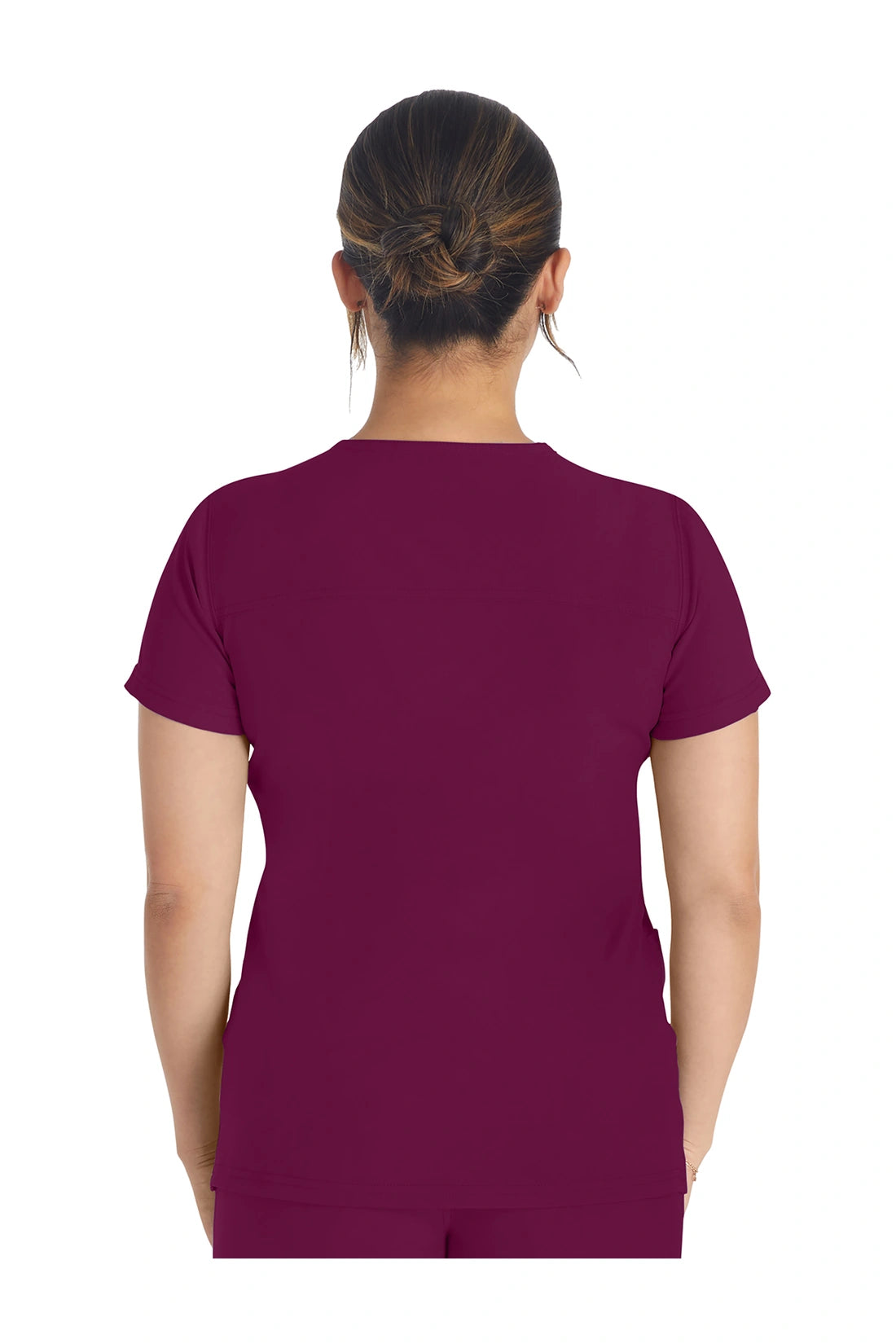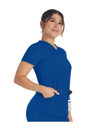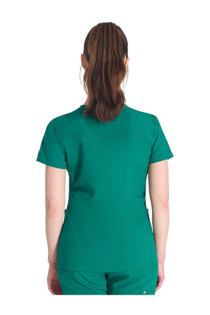 Los detalles no decepcionan en este top de corte contemporáneo con cuello en V. Presenta costuras decorativas en la cinta del cuello y pespuntes decorativos en todas las costuras para añadir estilo. Cuatro bolsillos para un almacenamiento organizado con bolsillos dobles de parche a cada lado (el derecho tiene una ranura para bolígrafo/instrumento). Logotipo decorativo en las esquinas de los bolsillos. El canesú trasero completa el look. CBL: 25