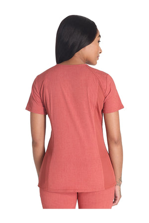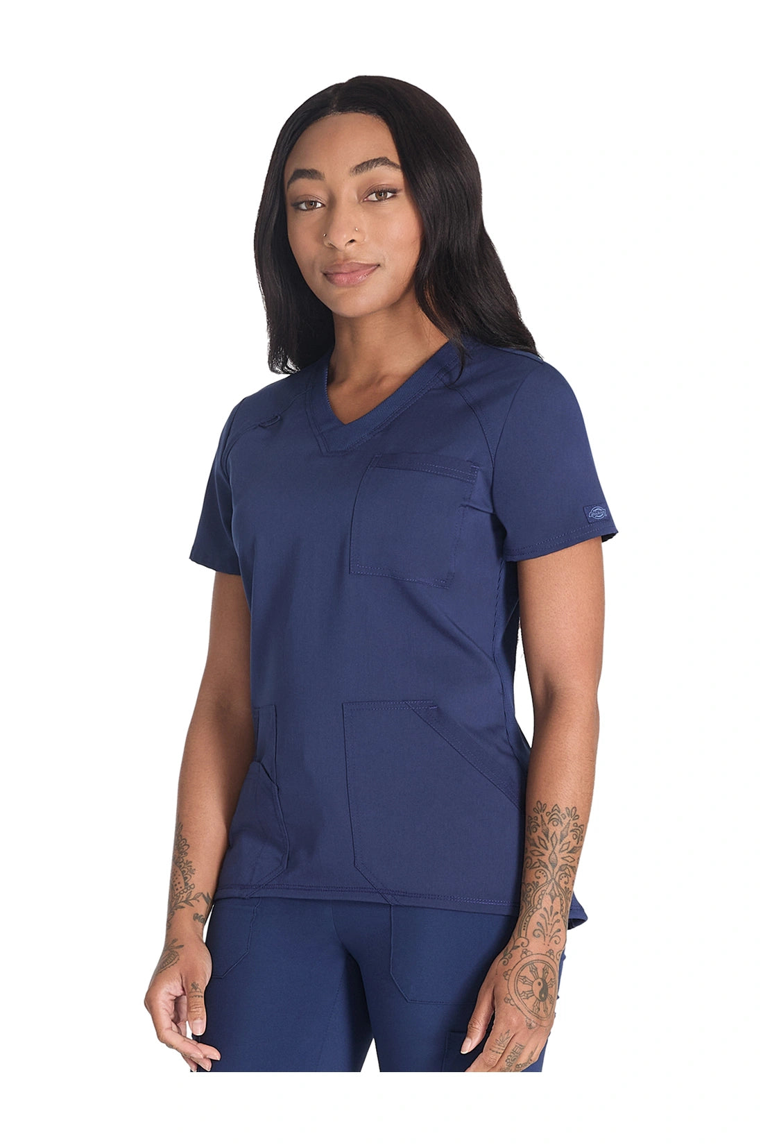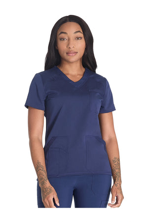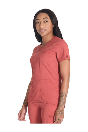 Diseñada para equilibrar estilo y funcionalidad, esta camiseta con cuello de pico tiene ribetes elásticos de punto elástico y muchos bolsillos. Presenta un ribete de punto elástico tonal en la banda del cuello, los bordes de los bolsillos y los cómodos paneles laterales traseros. Cuatro bolsillos ofrecen mucho espacio de almacenamiento: un bolsillo de parche en el pecho, dos amplios bolsillos de parche delanteros y un bolsillo para accesorios con ranura para instrumentos en el bolsillo derecho. Las hombreras curvadas delanteras y traseras proporcionan ajuste y estilo. Lazo elástico para tarjeta de identificación en el canesú del hombro derecho. Dobladillo redondeado alto-bajo termina esta camiseta con cuello en V. Corte contemporáneo. Largo en el centro de la espalda: 26».