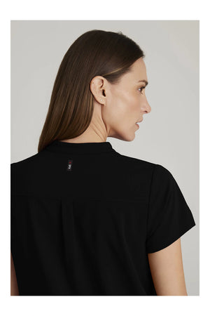 Un cuello con banda, mangas con muescas, dos bolsillos en ángulo en la cintura y un canesú en la espalda brindan un aspecto sobrio pero refinado. Confeccionado con una lujosa combinación de poliéster, rayón y elastano, ofrece comodidad superior y facilidad de movimiento. Incluye tecnología que absorbe la humedad y elimina la suciedad.