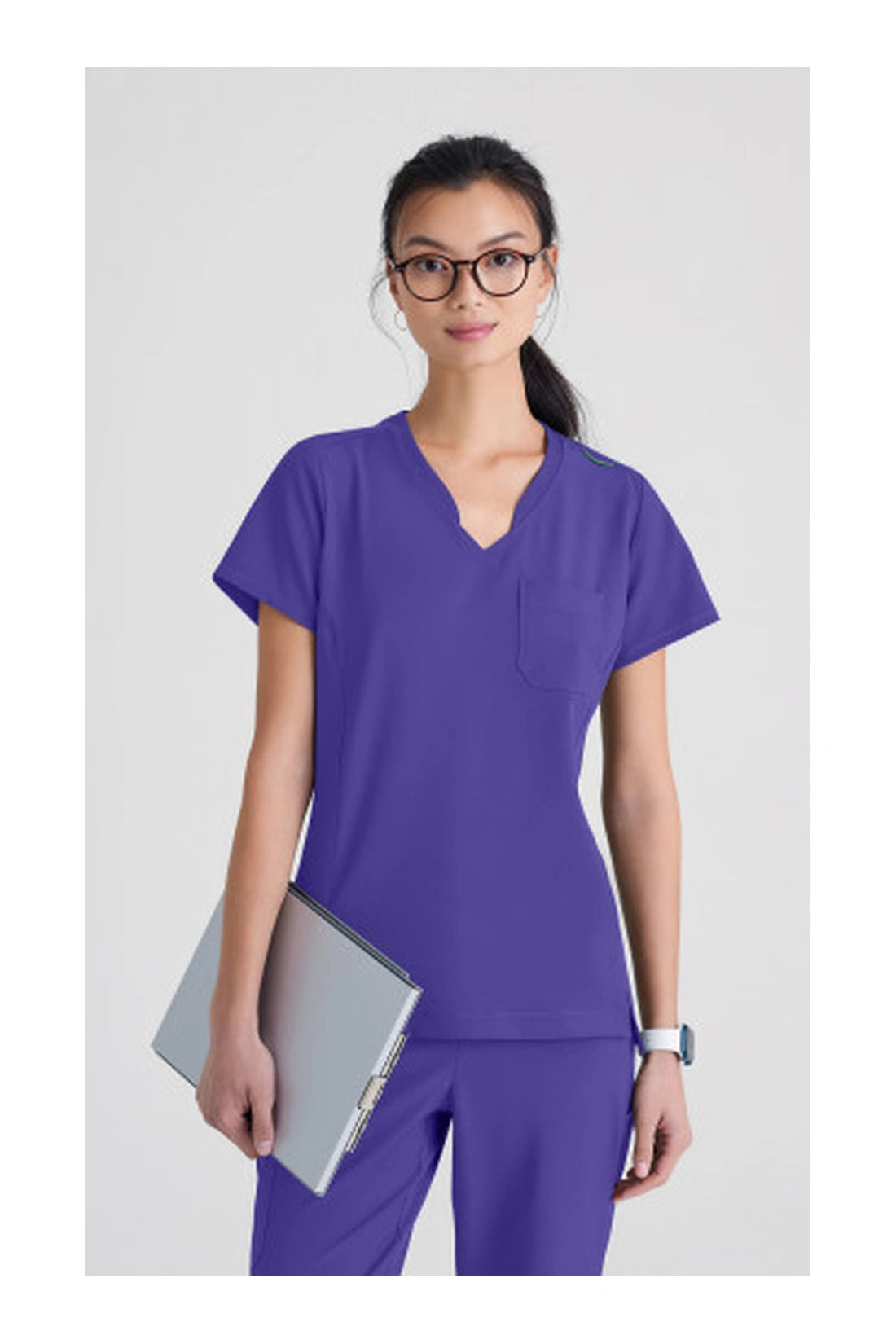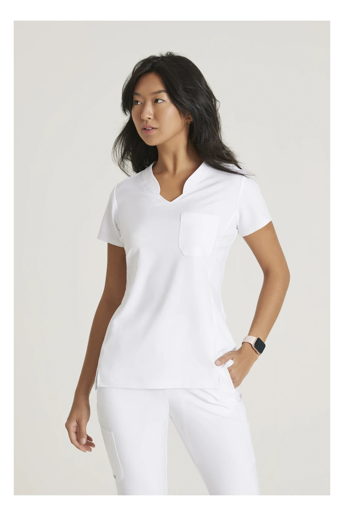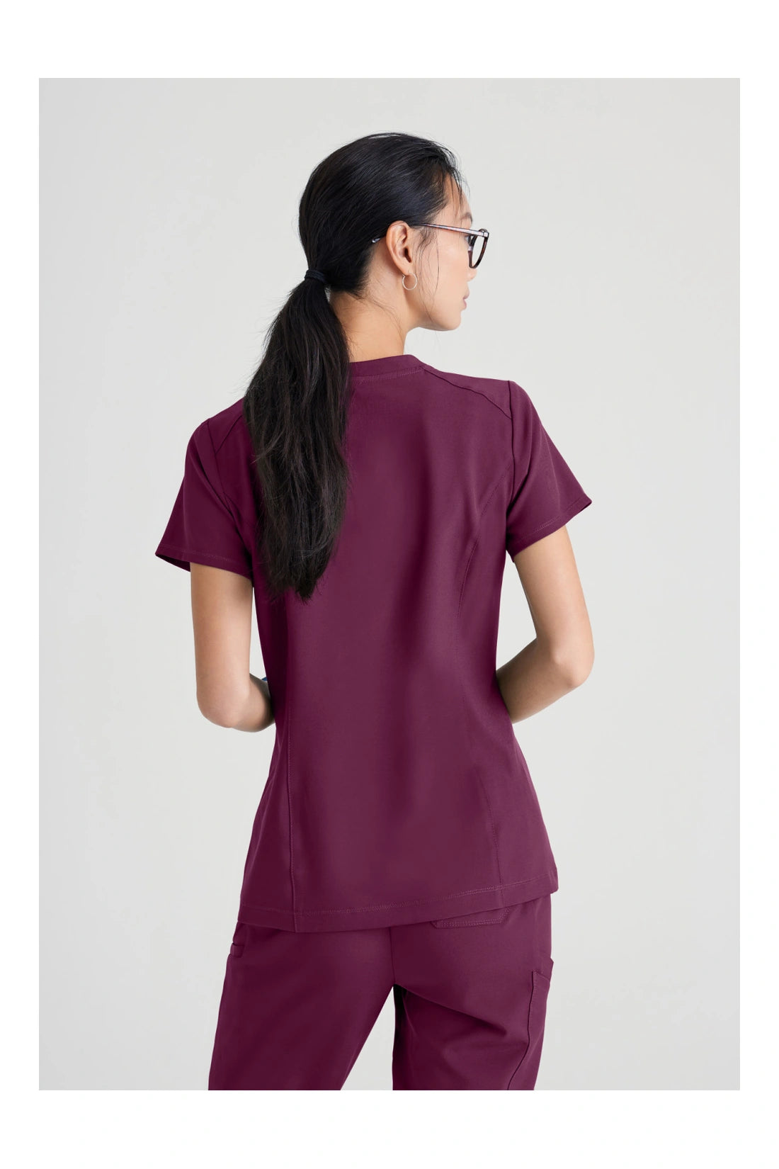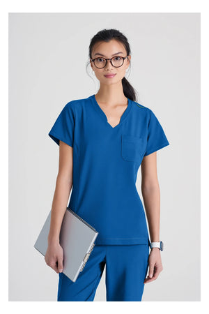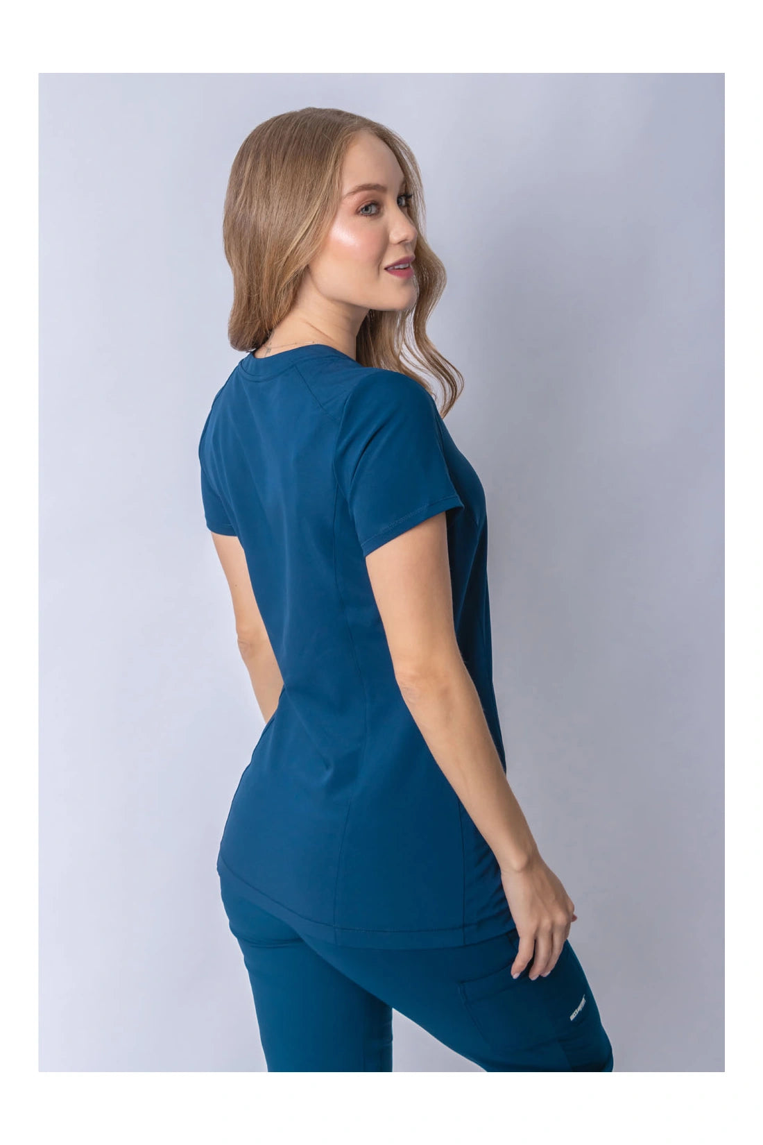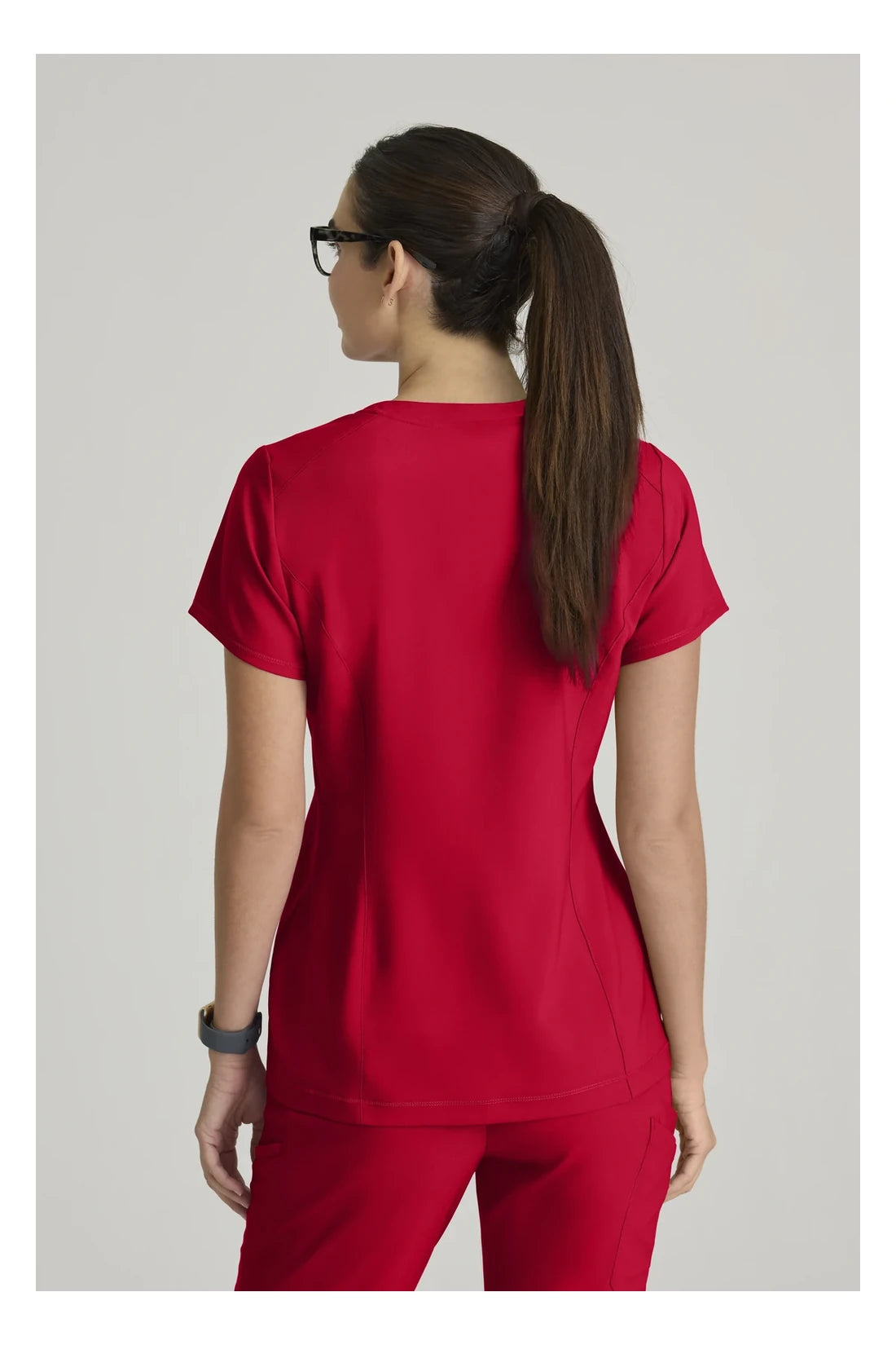 Prepárate para el éxito con el top Sway de la colección Grey's Anatomy by Barco Evolve. El diseño limpio cuenta con un moderno cuello de pico con banda que complementa el dobladillo alto-bajo, mientras que las costuras princesa proporcionan un ajuste favorecedor. Además, el característico lazo verde ofrece un práctico lugar para tu insignia. Fabricado con poliéster reciclado y tecnología CiCLO®, el tejido es suave, elástico y transpirable para ofrecer comodidad durante todo el día.