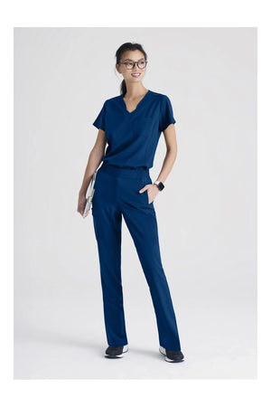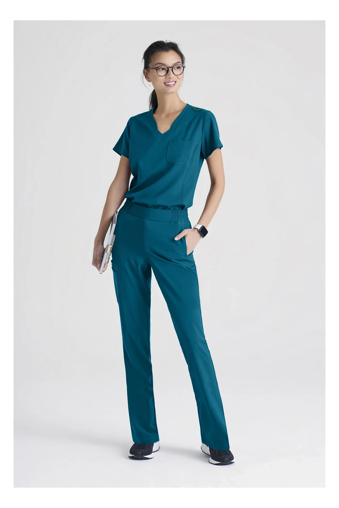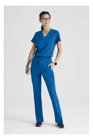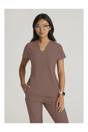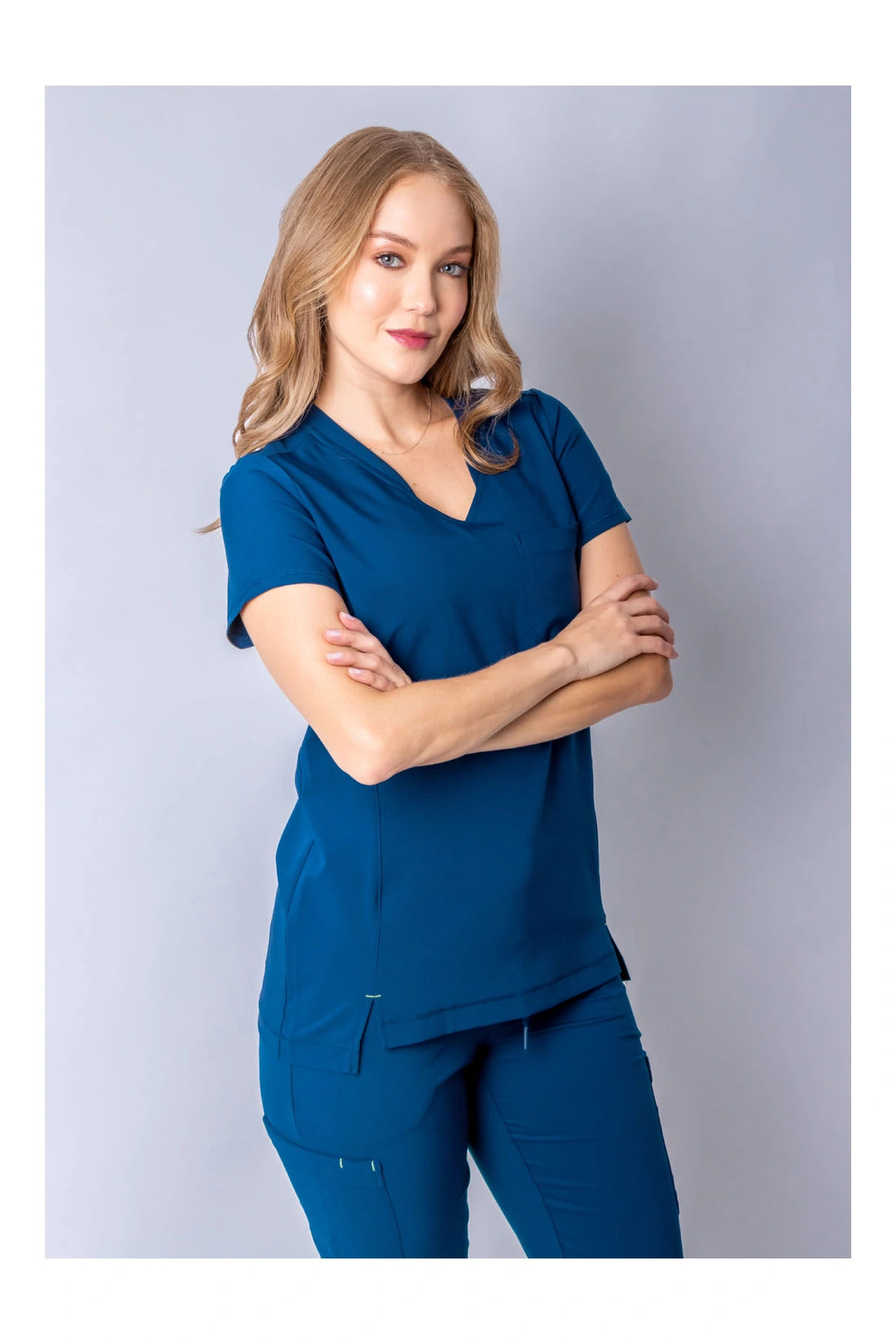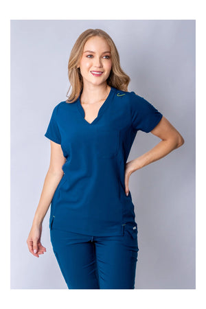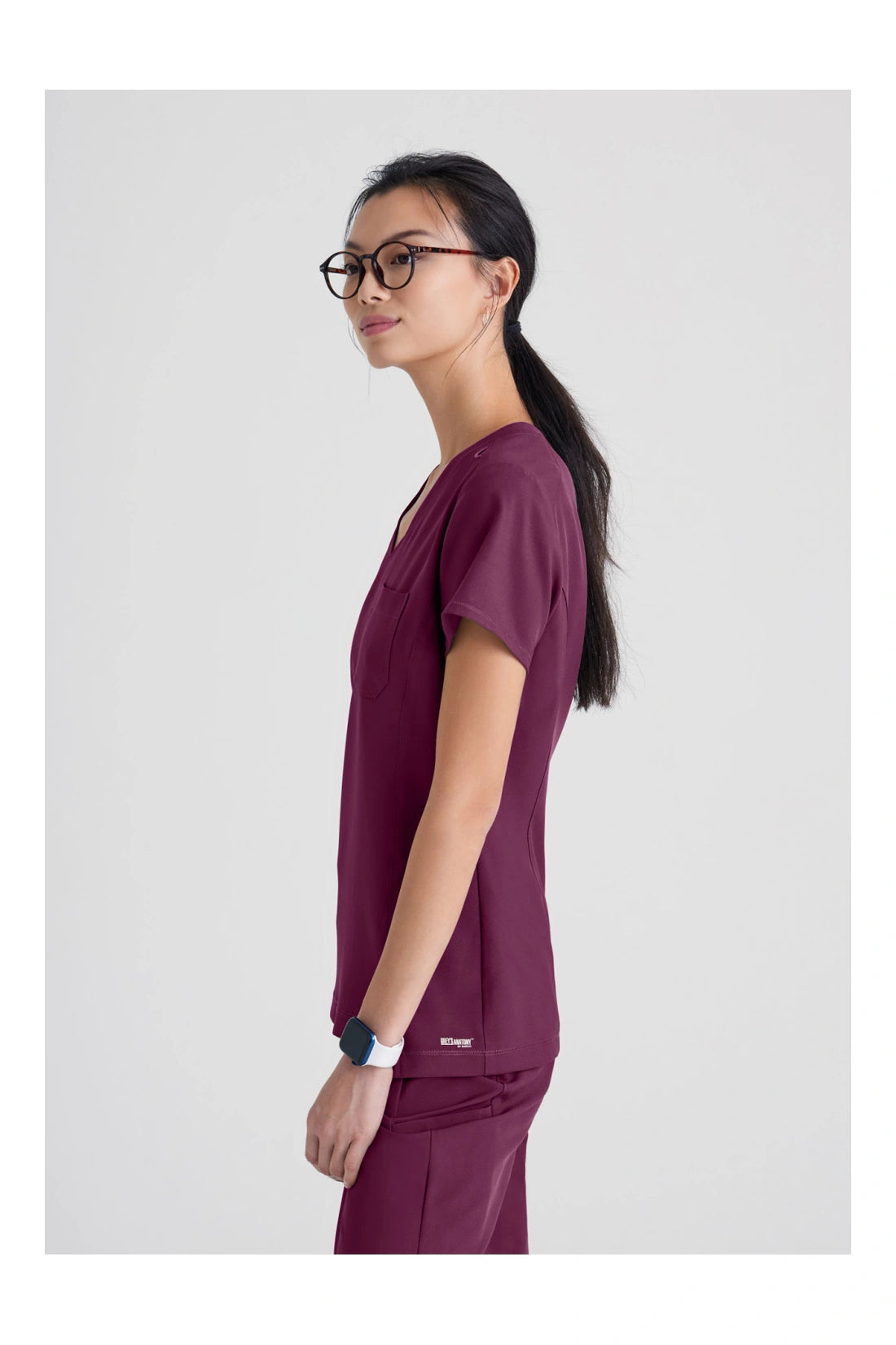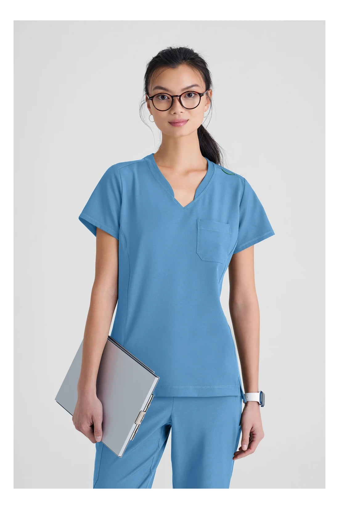 Prepárate para el éxito con el top Sway de la colección Grey's Anatomy by Barco Evolve. El diseño limpio cuenta con un moderno cuello de pico con banda que complementa el dobladillo alto-bajo, mientras que las costuras princesa proporcionan un ajuste favorecedor. Además, el característico lazo verde ofrece un práctico lugar para tu insignia. Fabricado con poliéster reciclado y tecnología CiCLO®, el tejido es suave, elástico y transpirable para ofrecer comodidad durante todo el día.