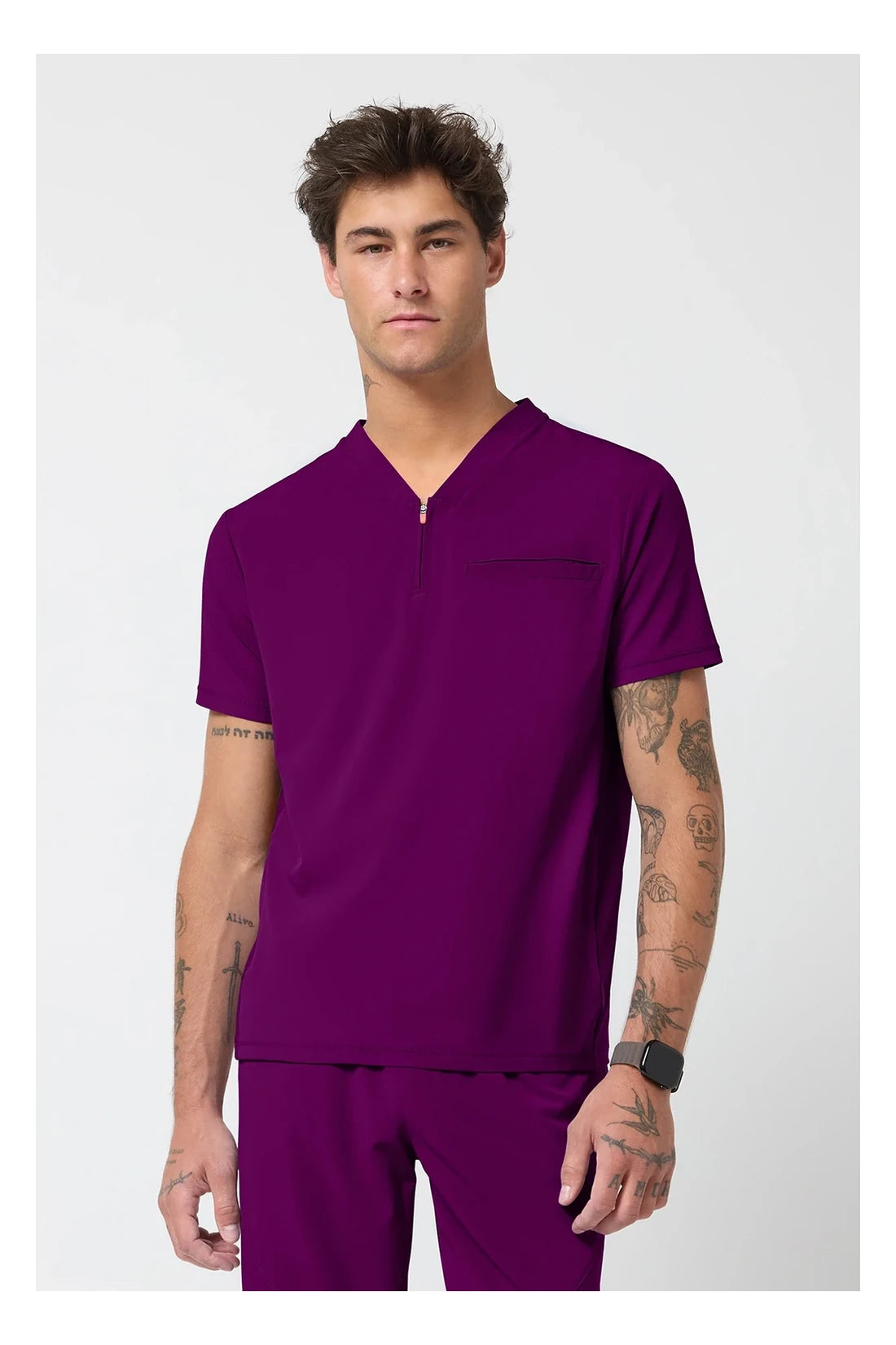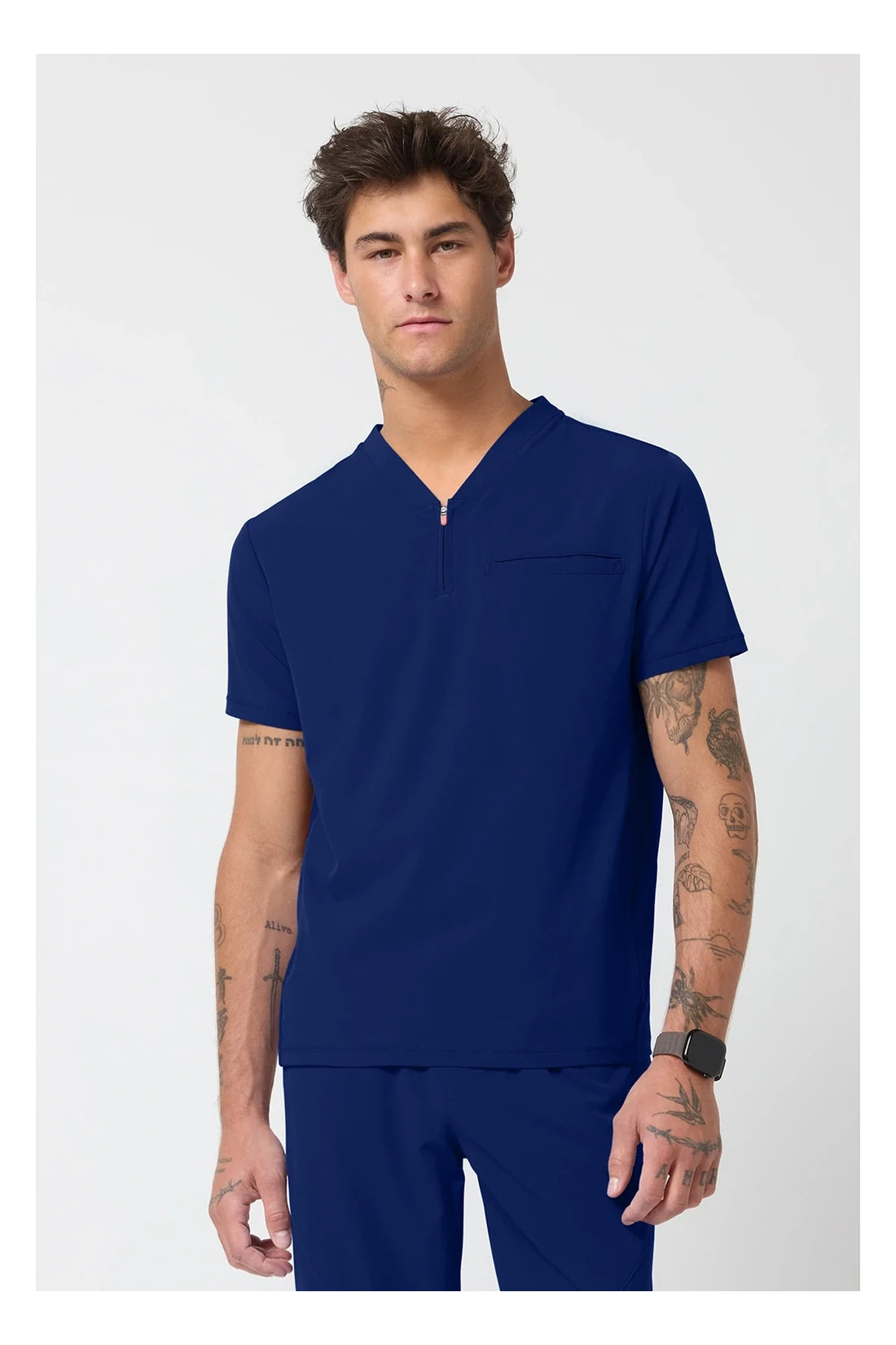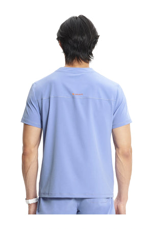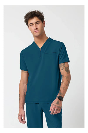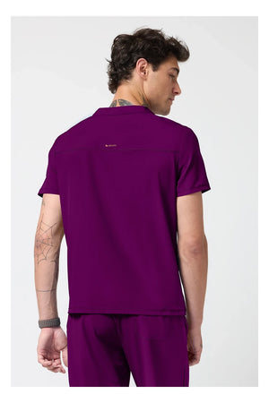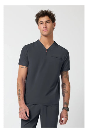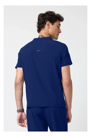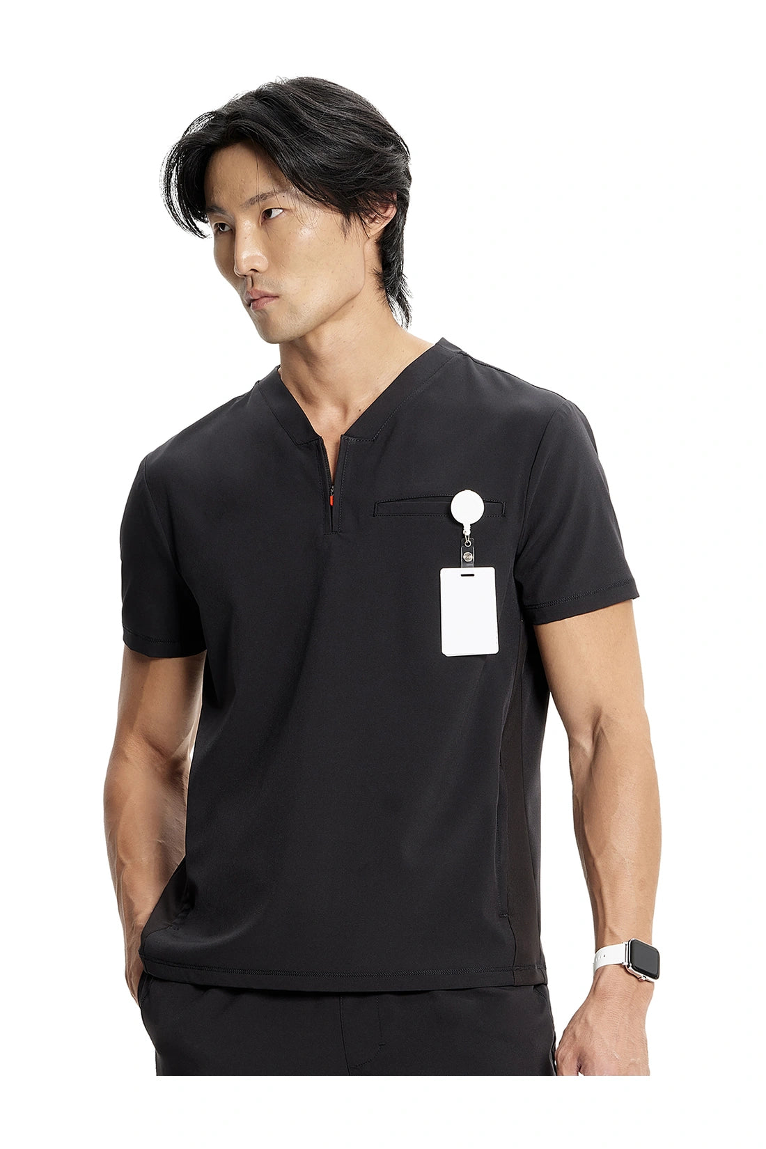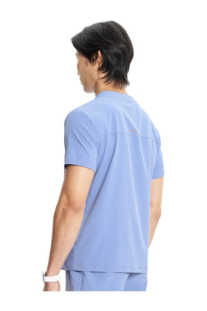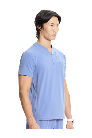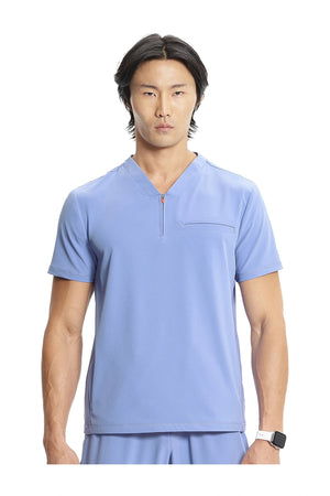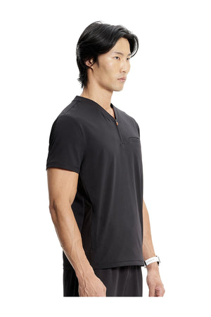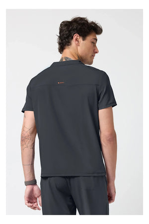 Esta camiseta de caballero con cuello de pico tiene cremallera parcial en la parte delantera, costura en el canesú trasero para un mejor ajuste sobre los hombros y paneles laterales de punto elástico teñido a juego. Dispone de tres bolsillos: un bolsillo ribeteado en el pecho y dos bolsillos delanteros con cremallera en la costura. Tiradores de cremallera de color contrastado para facilitar el agarre. Largo en el centro de la espalda: 26 ½».