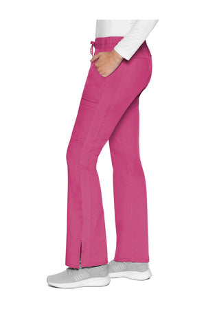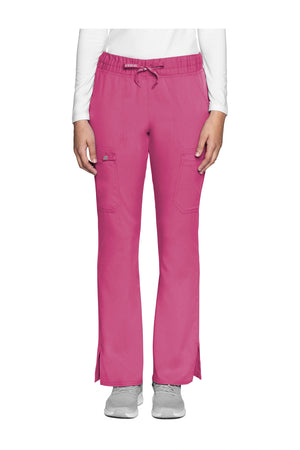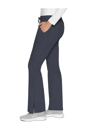 Combinando moda y funcionalidad, este moderno pantalón de pierna acampanada cumple todos los requisitos. Presenta una cintura elástica reforzada con cordón ajustable. Tiene cinco bolsillos: dos delanteros, dos tipo cargo (el derecho con solapa) y uno trasero en la costura. Este pantalón presenta un canesú trasero, paneles laterales traseros de punto elástico y aberturas laterales en el dobladillo para un ajuste favorecedor. Corte Missy. Pierna acampanada, abertura de 16». Entrepierna: 31