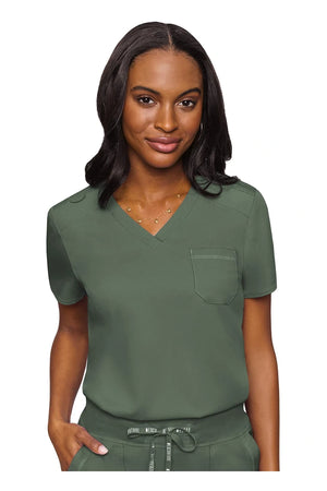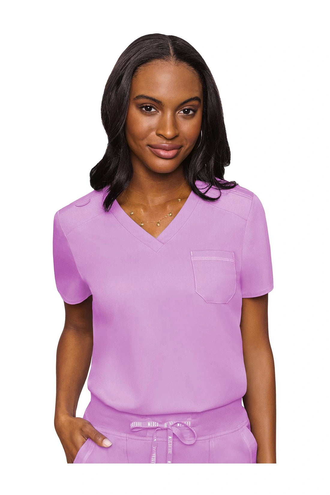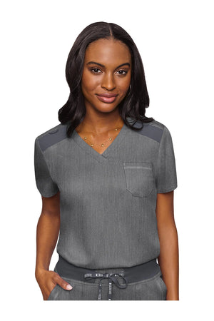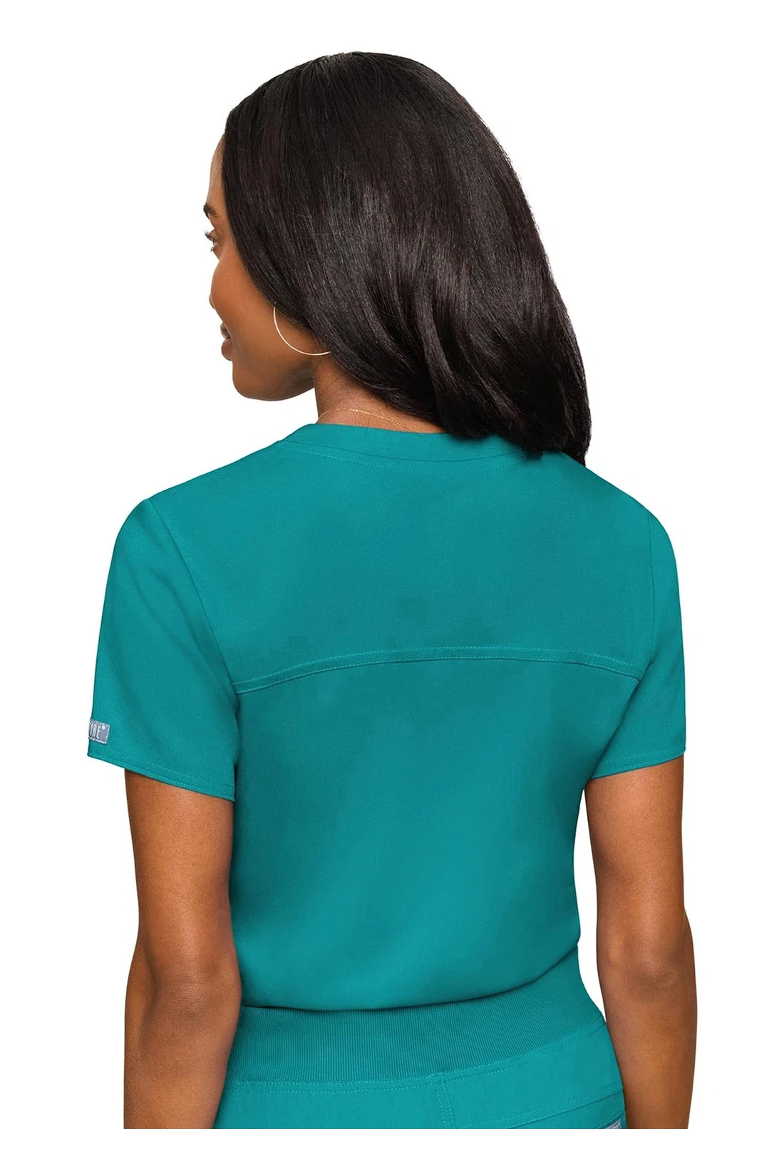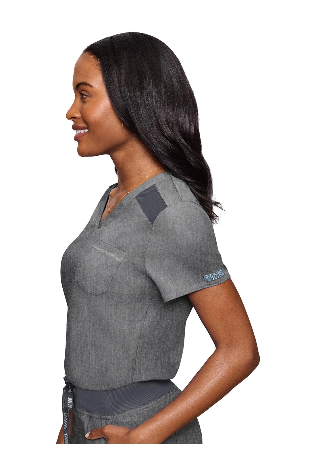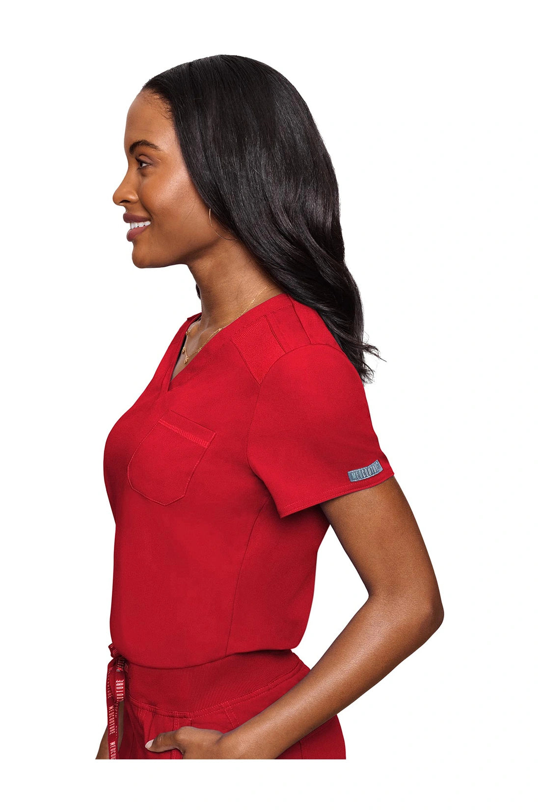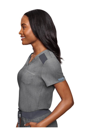 Los pequeños detalles lo son todo. Por eso nos preocupamos de los pequeños detalles, como los hombros elásticos de punto elástico, el práctico lazo elástico y el sencillo detalle del canesú, para que tú no tengas que hacerlo. Metida por dentro o por fuera, esta prenda siempre funciona. Cuello de pico, un bolsillo de parche, canesú de punto elástico en los hombros, canesú trasero, lazo elástico para accesorios, tejido Touch Performance. Largo de espalda: 27 1/2 "Colección : MC Touch