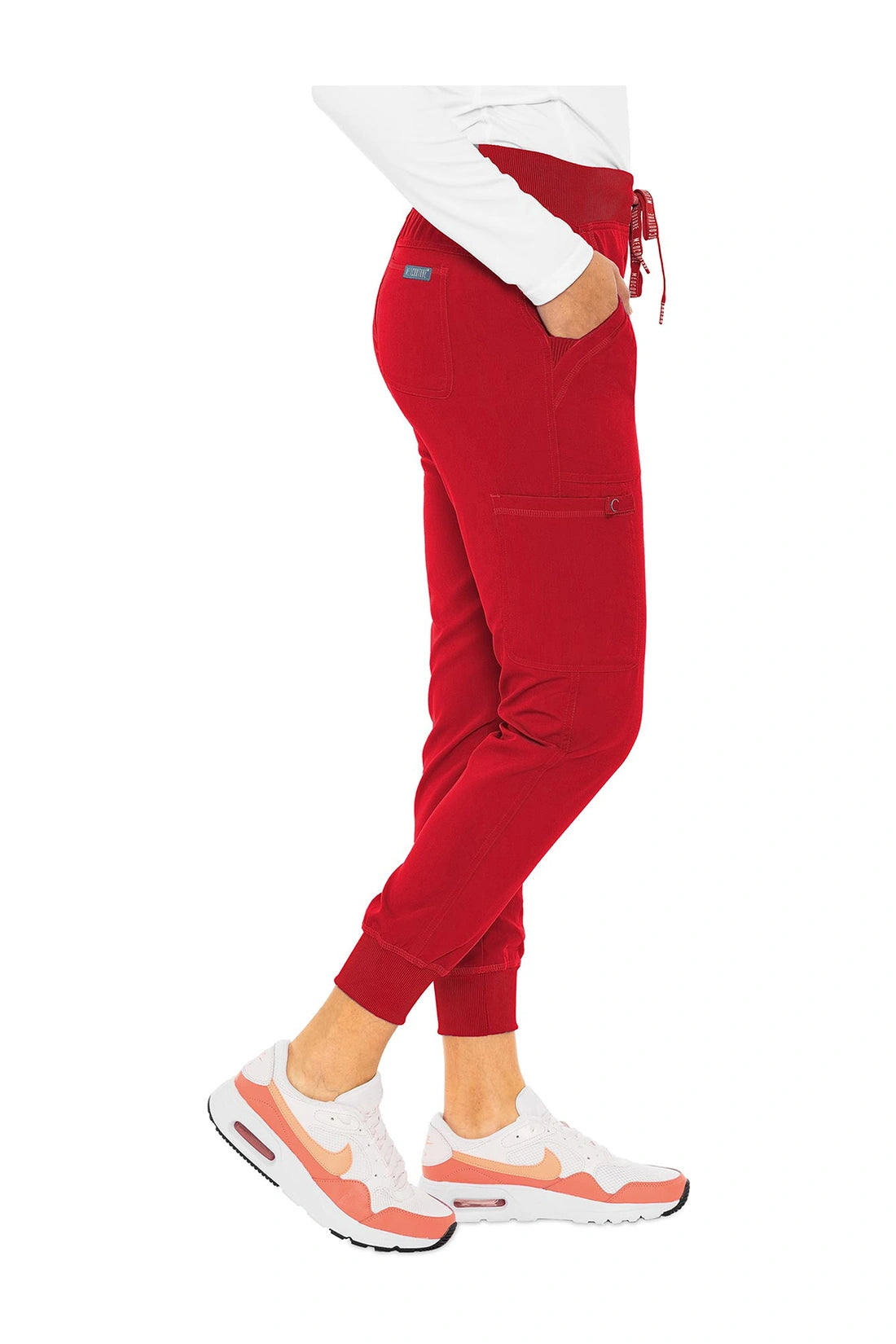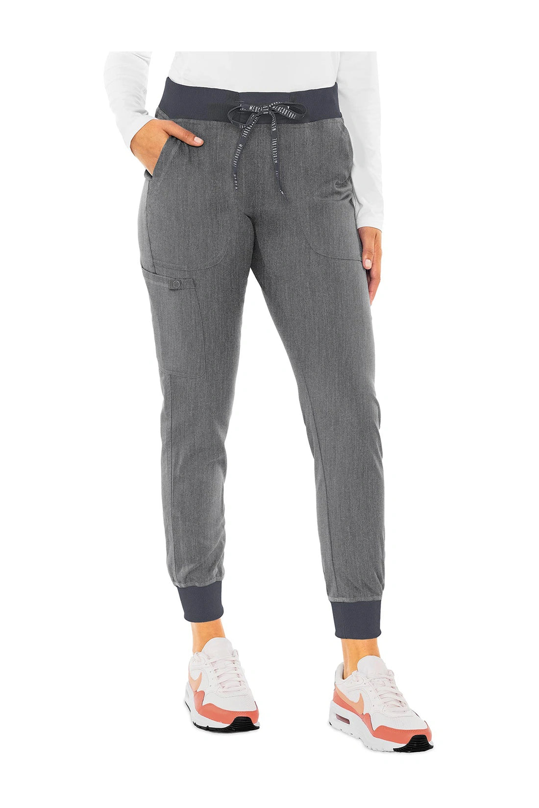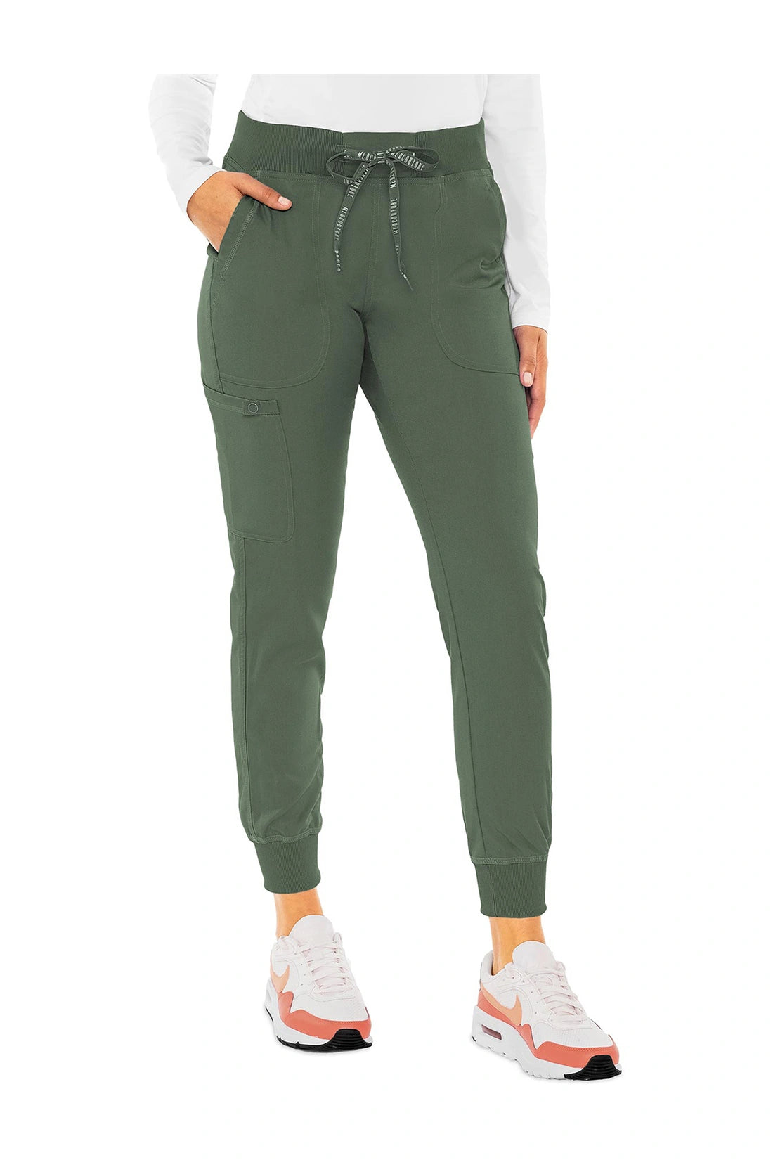 Tus pantalones para ir a todas partes. Disfruta de esta cómoda y práctica combinación inspirada en la ropa deportiva. El tejido Touch Performance es tan suave como el algodón, mientras que la cintura de punto elástico y los puños de los tobillos se adaptan perfectamente a tus necesidades. Cintura de punto elástico con cordones de ajuste, un bolsillo cargo, dos bolsillos traseros de parche, presilla para accesorios, tejido Touch Performance. Entrepierna: 28 1/2".
