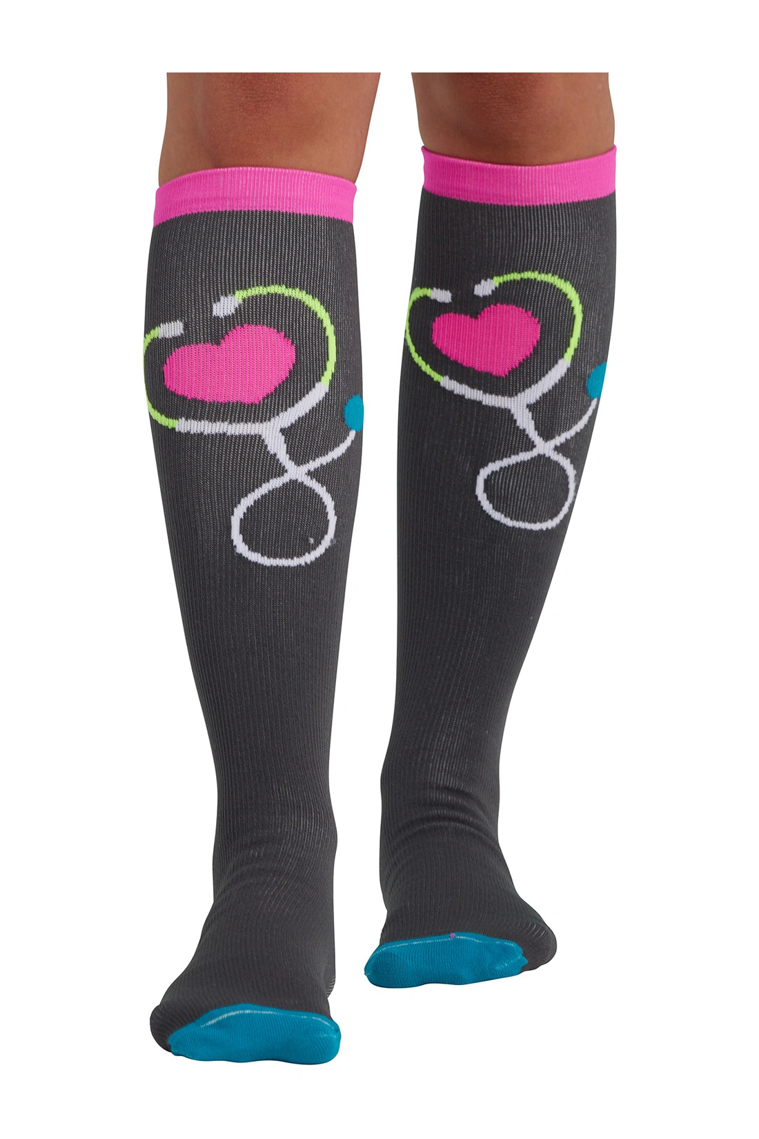 Suavidad extrema y novedoso diseño, los calcetines de compresión moderada de mezcla de lana Infinity Kickstart energizan y vigorizan tus piernas. Suaves, coloridos y que absorben la humedad, darán vida a tu uniforme mientras te ayudan a verte y sentirte fabulosa durante todo el turno.