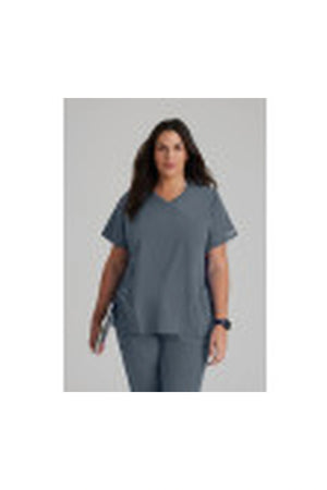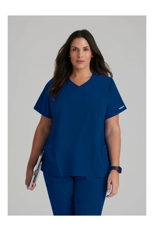 No escatimes en comodidad. Esta blusa médica para mujer, que forma parte de nuestra colección Vitality de Skechers, está confeccionada con un tejido elástico en cuatro direcciones que absorbe la humedad para mantenerte fresca y seca cuando las cosas parecen no detenerse nunca. También está confeccionada con materiales reciclados, para que puedas sentirte bien mientras haces el bien. El escote en V cruzado falso y los bolsillos fruncidos en la parte superior añaden detalles elegantes.
