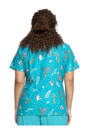 Un top con cuello en V de corte clásico moderno, con ribetes en el cuello, pinzas en el pecho, bolsillos laterales en ángulo, aberturas laterales y pinzas en la espalda para dar forma. Longitud del centro de la espalda: 26