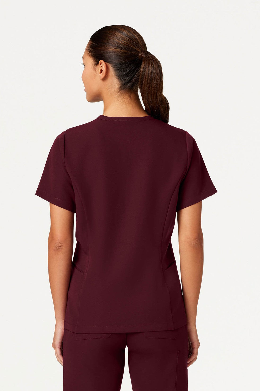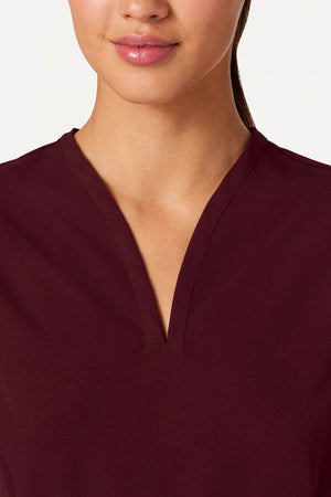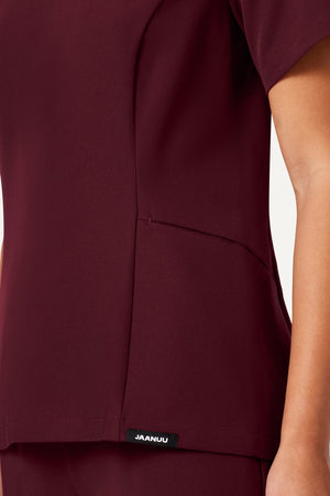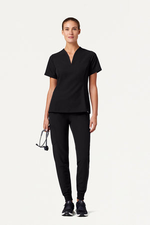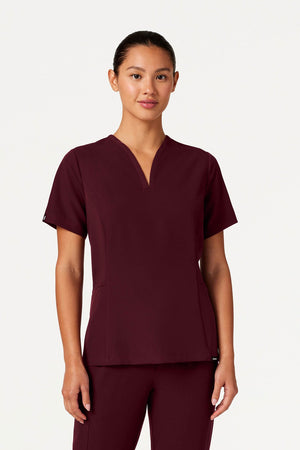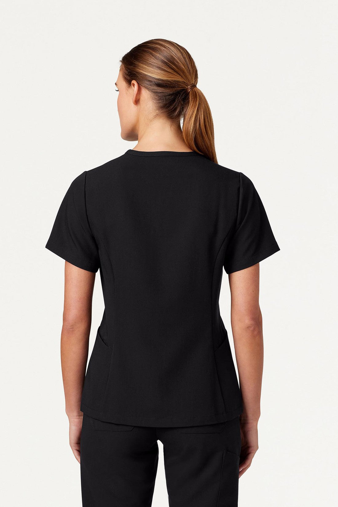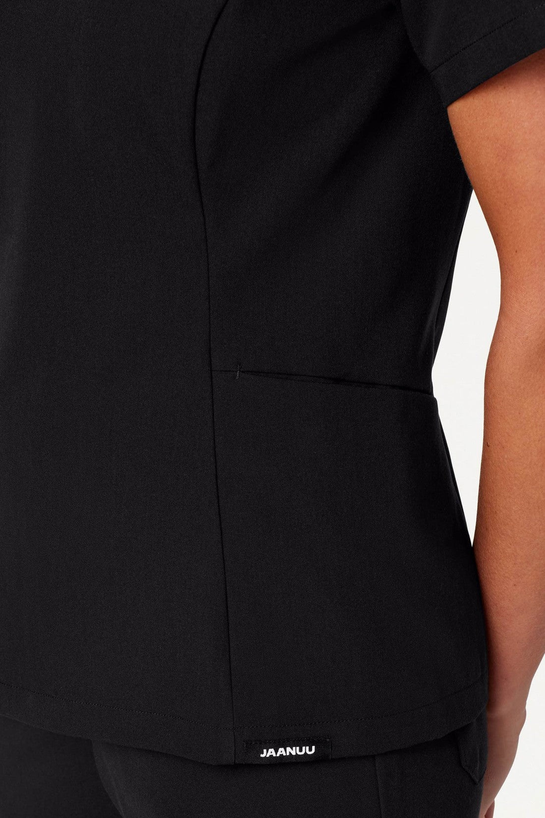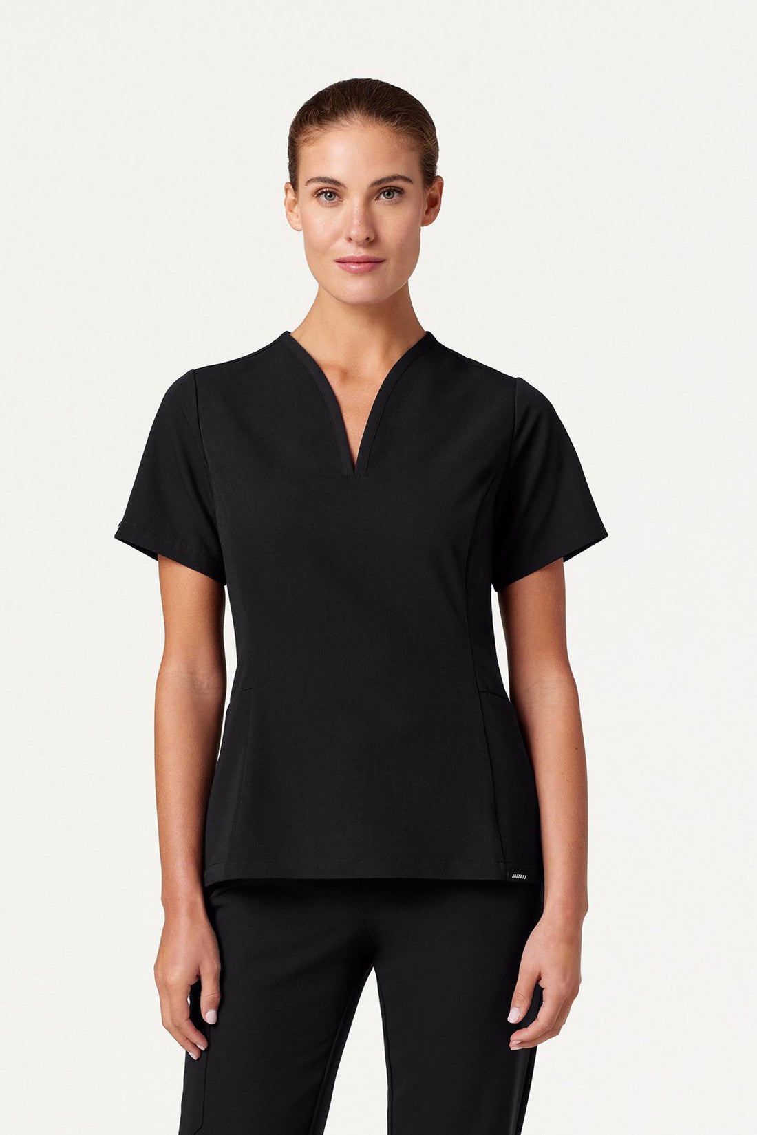 Ajuste ajustado a la cintura con un escote único y favorecedor. Este modelo combina mejor con los pantalones de chispazo JAANUU UltraLAST™. Diseño de ajuste y acampanado Distintivo cuello en V con 2 bolsillos laterales angulados Costuras princesa