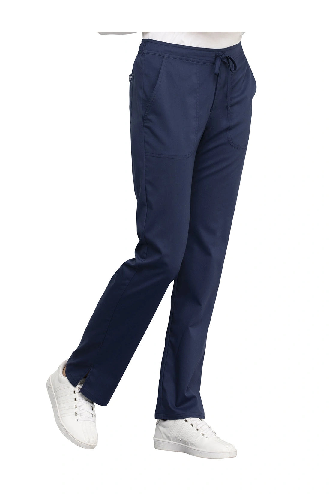 Un pantalón de corte clásico moderno, de tiro medio y pierna recta, con un cordón funcional y una cintura elástica en la parte trasera. También cuenta con bolsillos de parche delanteros, un bolsillo trasero y aberturas laterales. Costura interior; 31