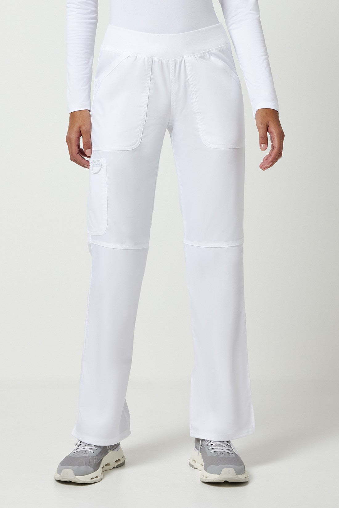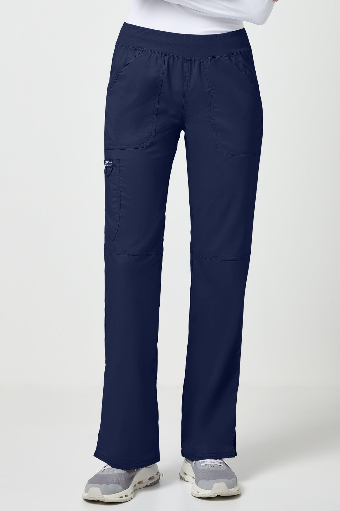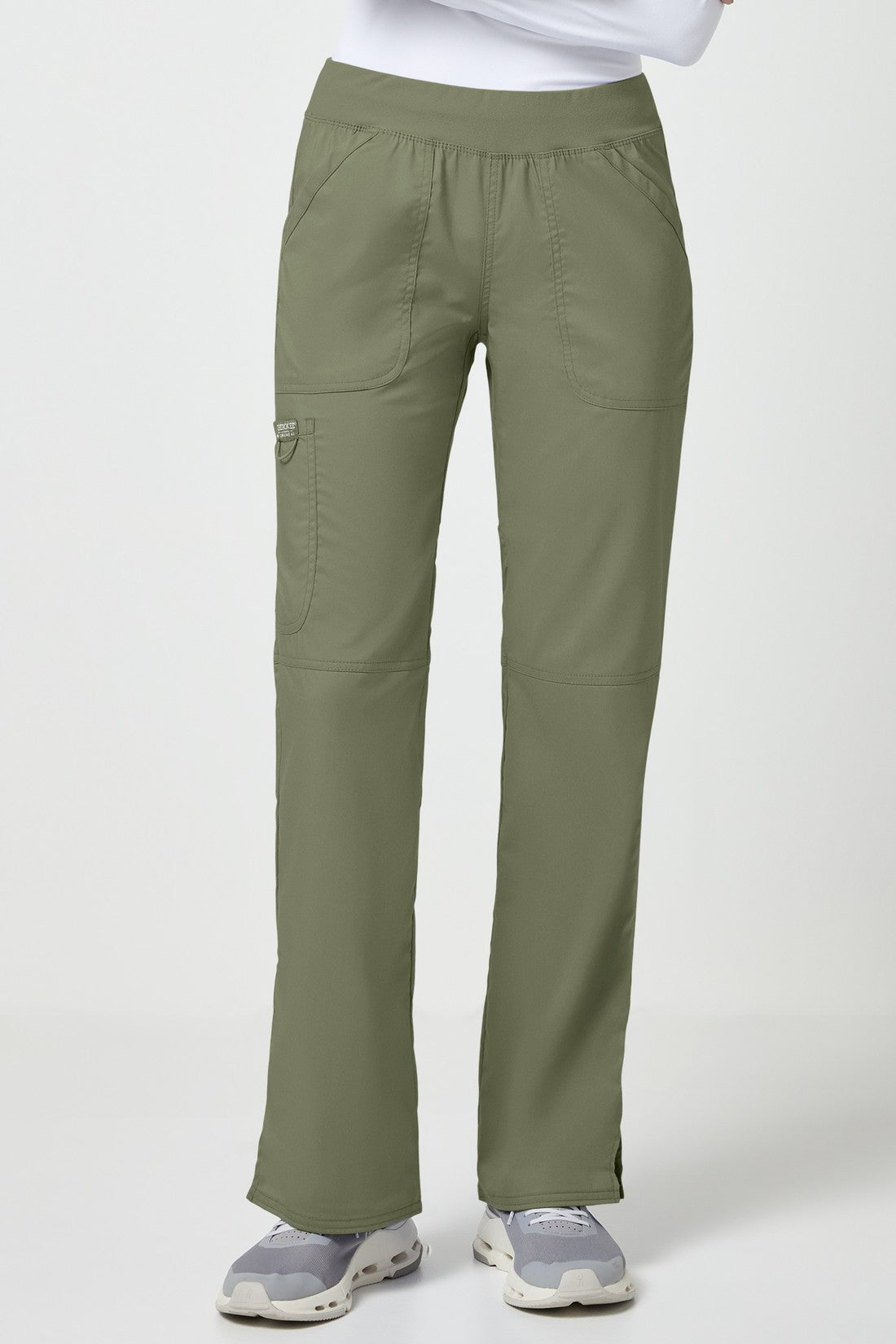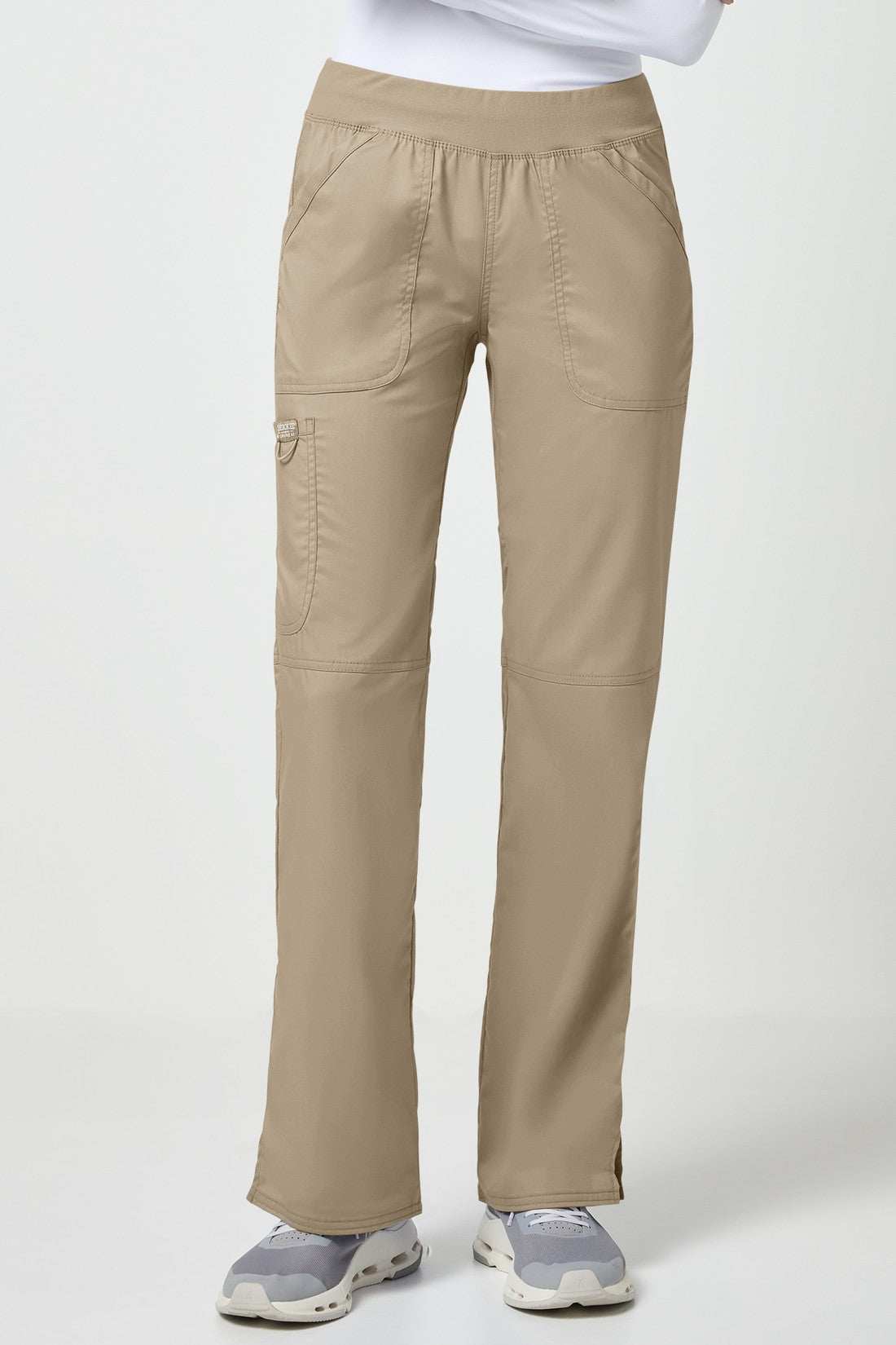 Un pantalón Modern Classic, de tiro medio y pierna recta, con una cintura de punto muy cómoda reforzada con un elástico interior para una mayor sujeción. También cuenta con bolsillos delanteros de parche, un bolsillo tipo cargo, etiqueta con el logotipo y lazo elástico, bolsillo trasero, costuras en las rodillas y aberturas laterales. Costura interior: 34