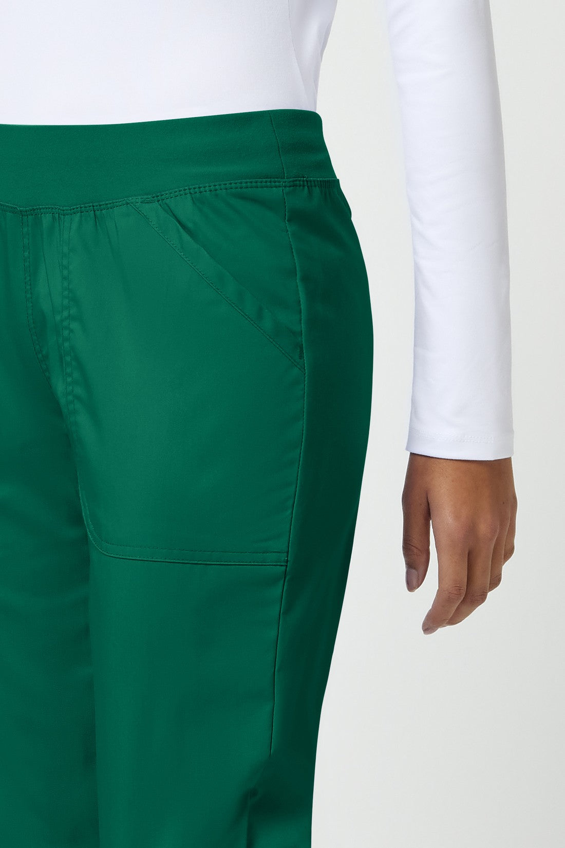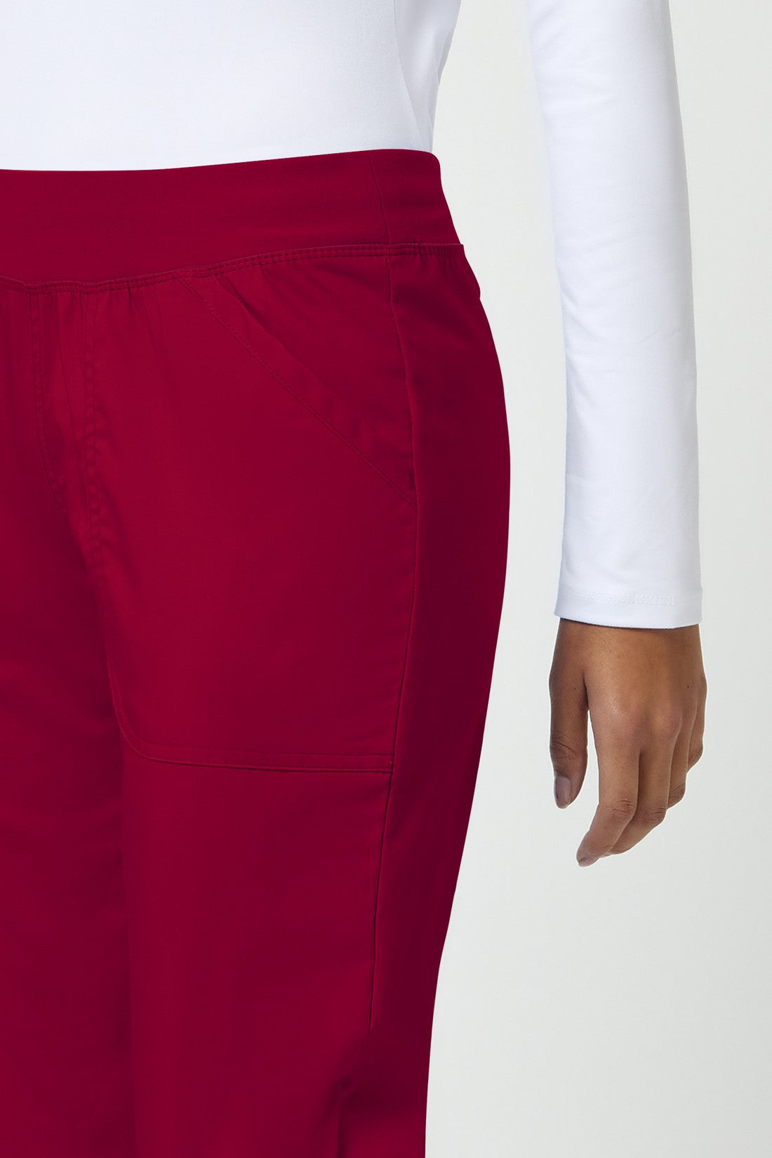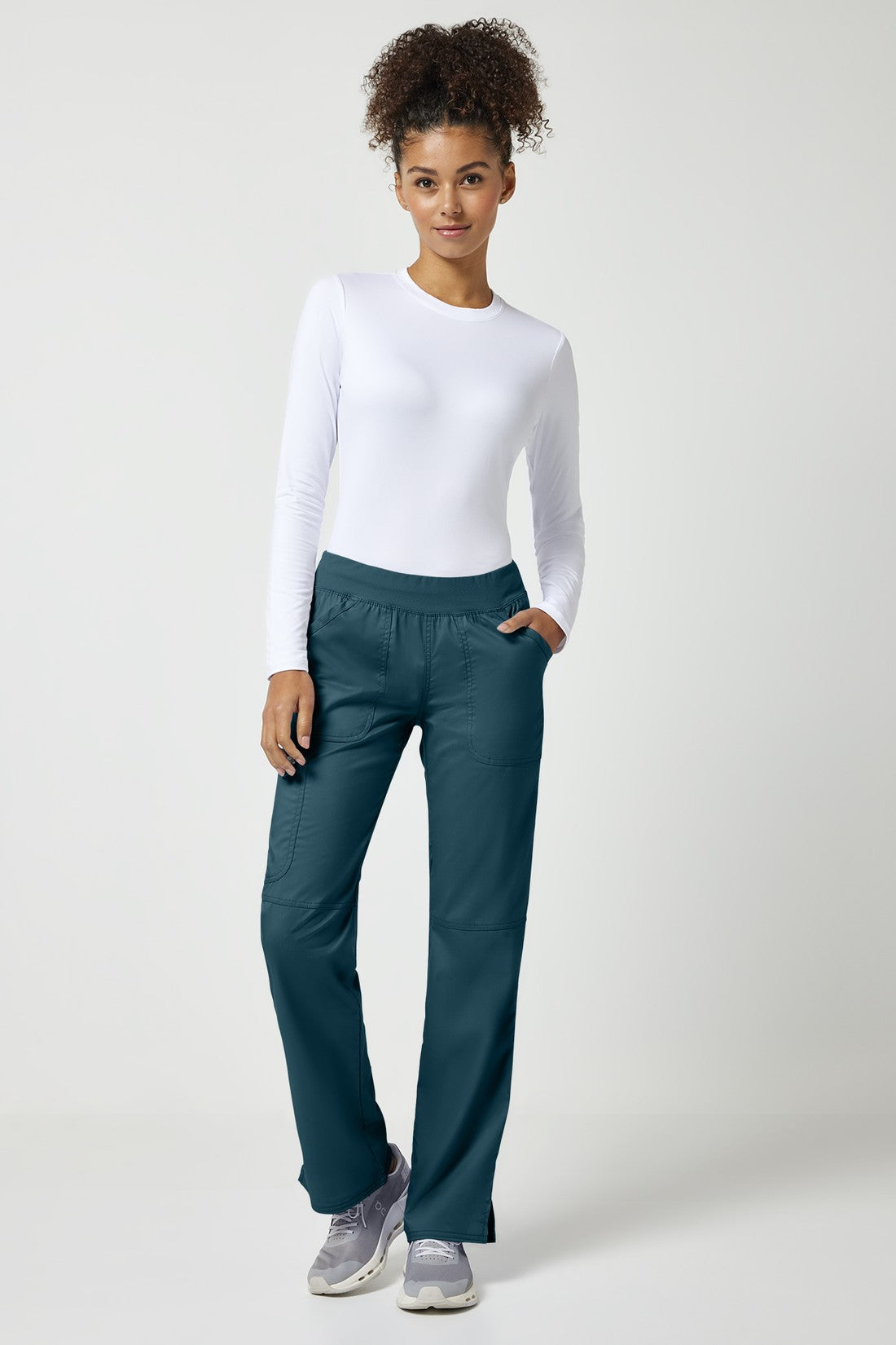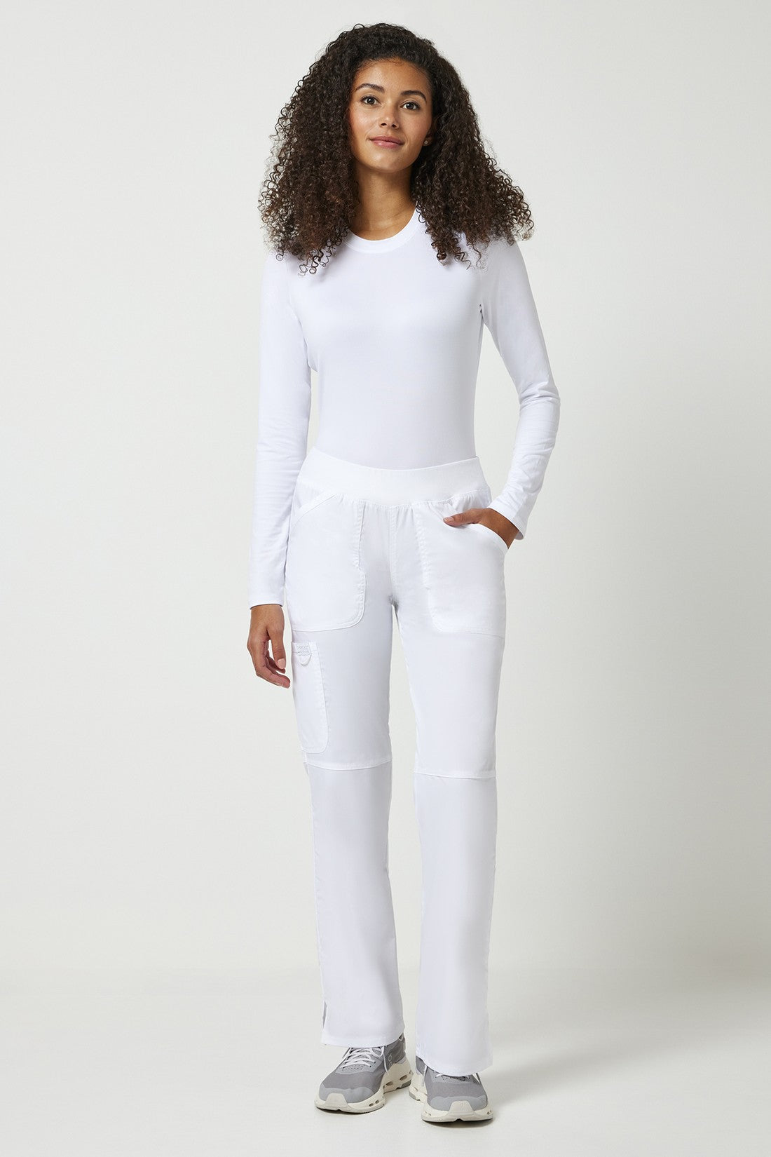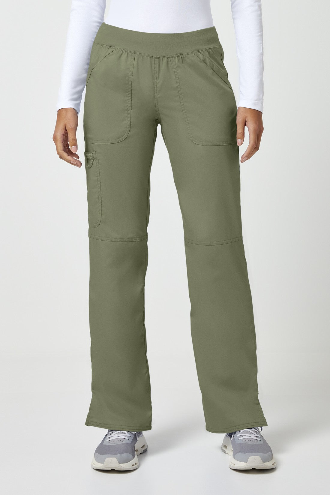 Un pantalón Modern Classic, de tiro medio y pierna recta, con una cintura de punto muy cómoda reforzada con un elástico interior para una mayor sujeción. También cuenta con bolsillos delanteros de parche, un bolsillo tipo cargo, etiqueta con el logotipo y lazo elástico, bolsillo trasero, costuras en las rodillas y aberturas laterales. Costura interior: 34