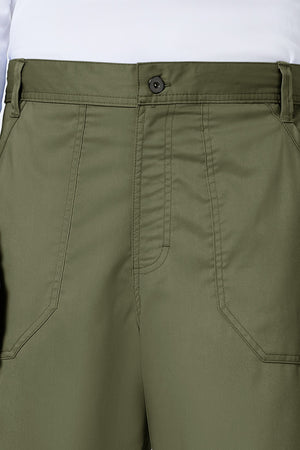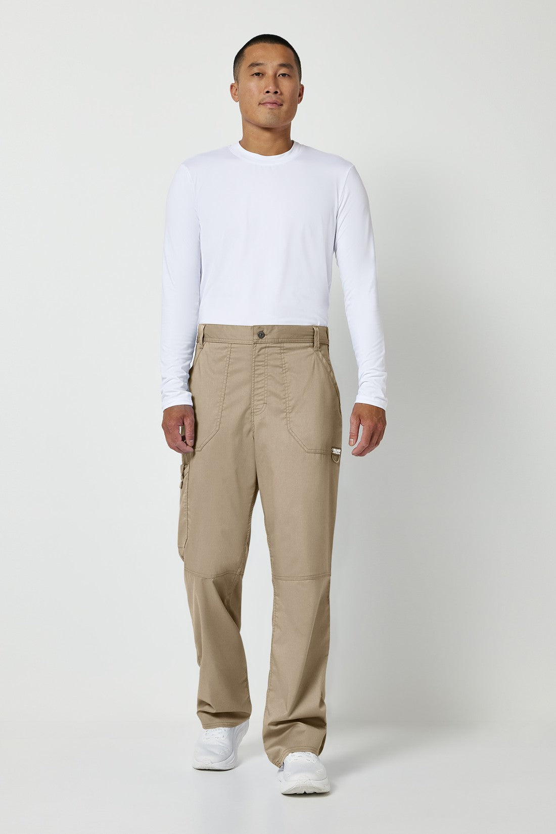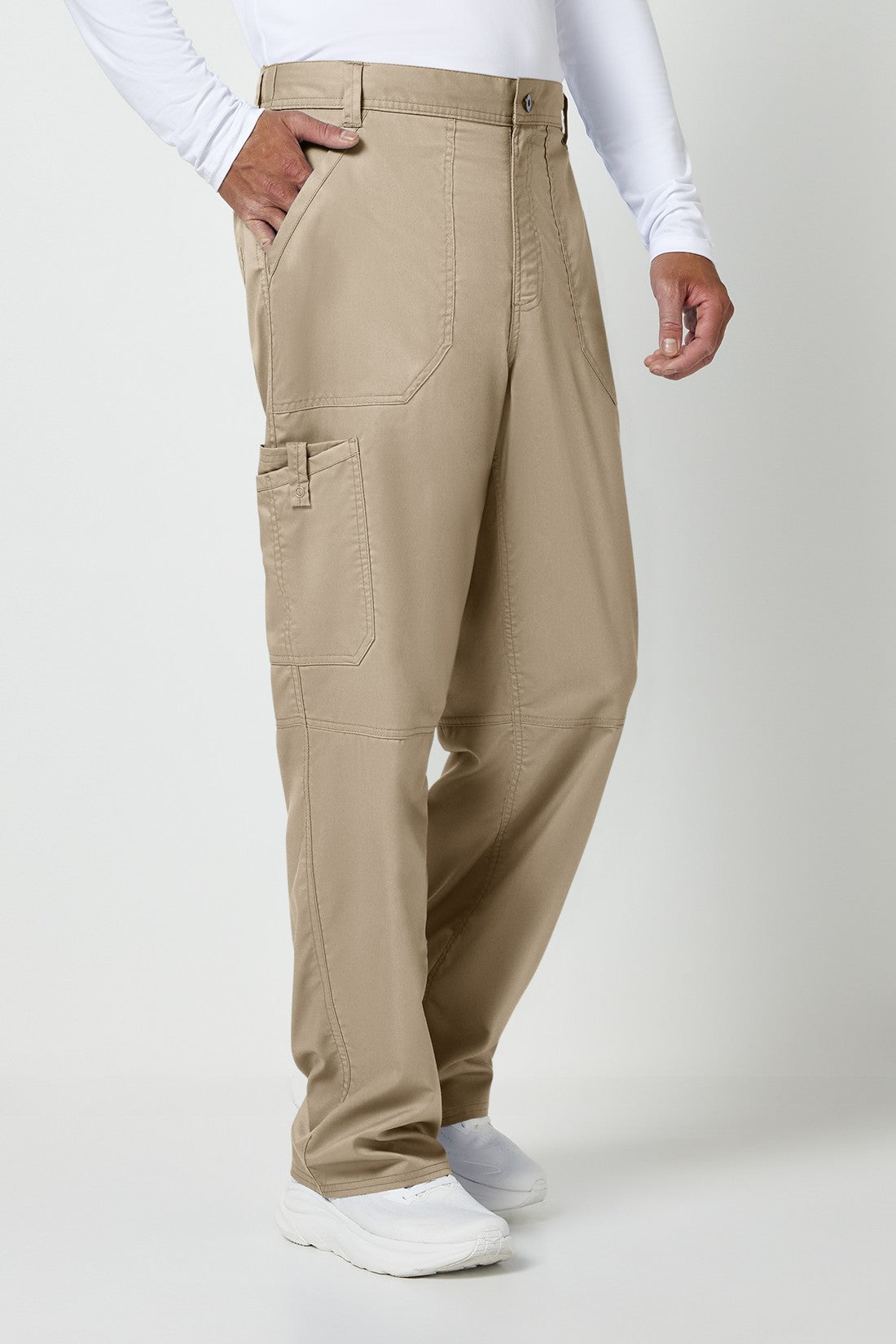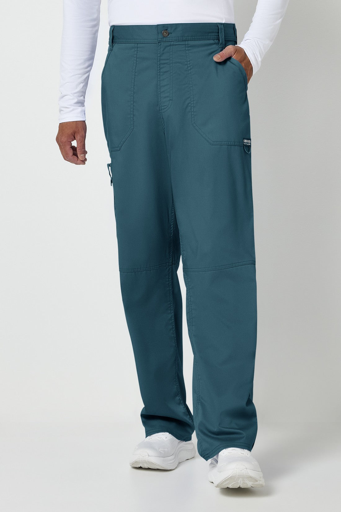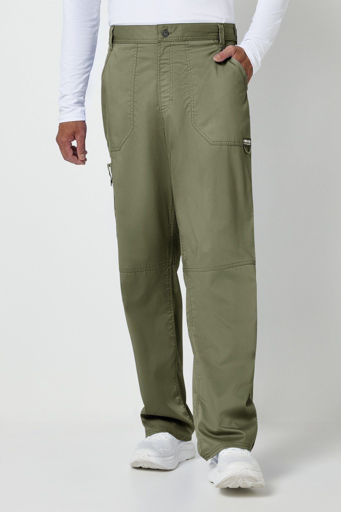 Un pantalón de corte moderno para hombre con un cordón interior funcional y una cintura elástica en la parte trasera, con cinco trabillas para el cinturón y una bragueta con cremallera y cierre de botón. También cuenta con bolsillos de parche delanteros, una etiqueta con el logotipo y un lazo elástico, un bolsillo de carga doble a la derecha con un lazo de identificación a presión, bolsillos de parche traseros y costuras en las rodillas. Costura interior: 32