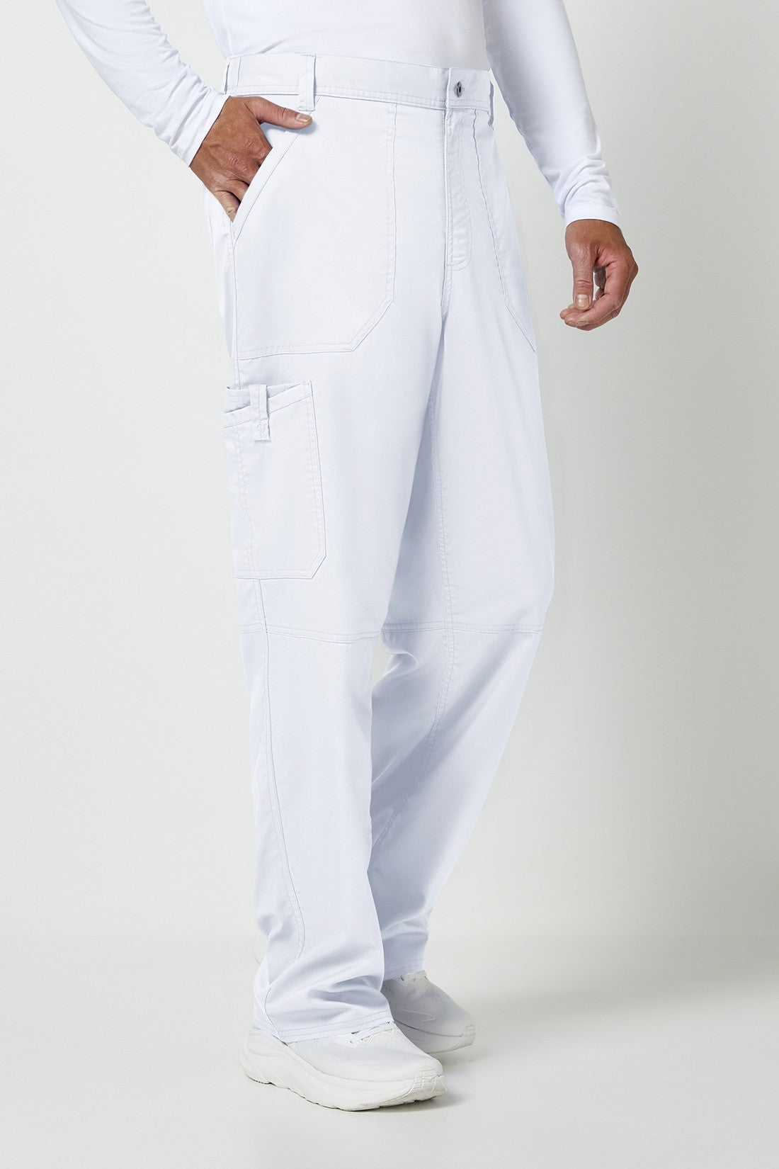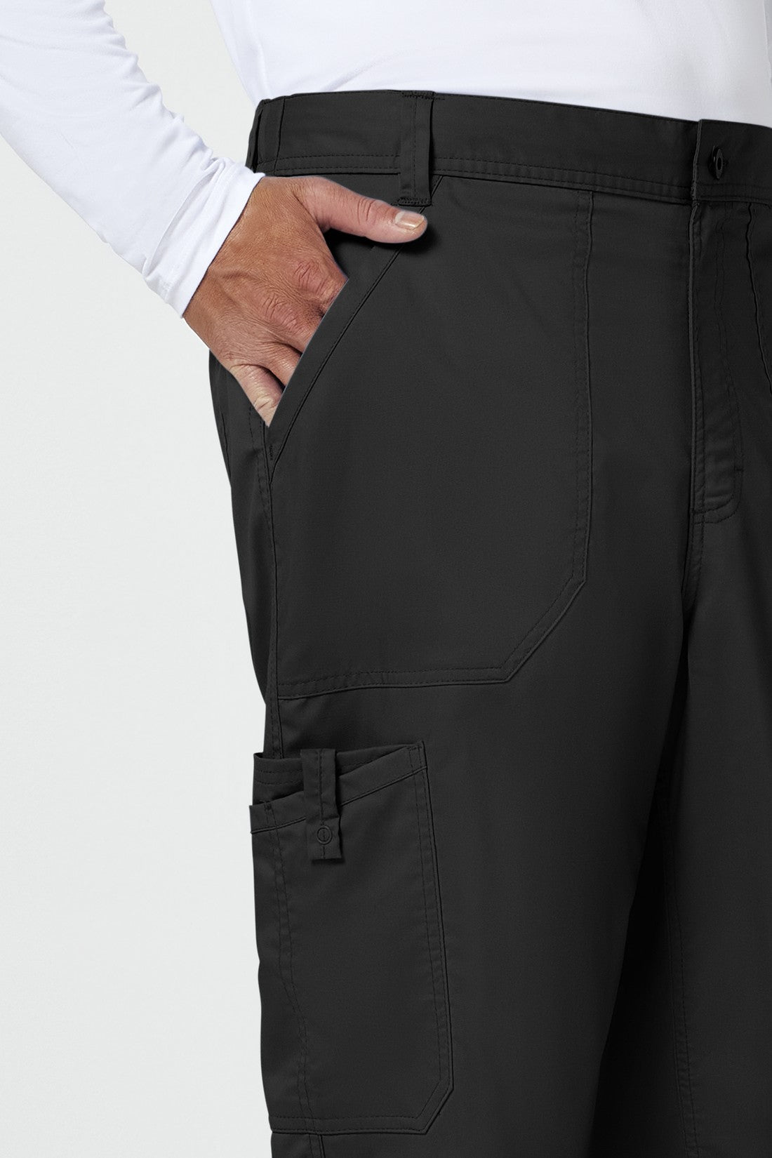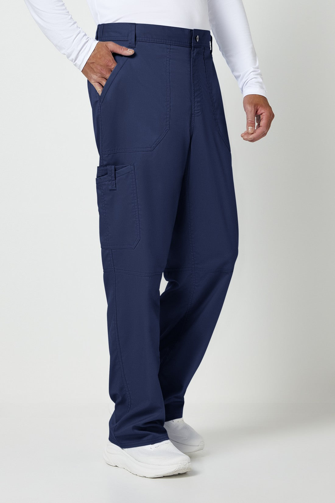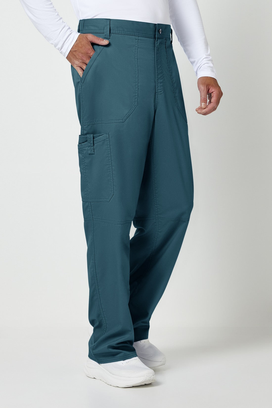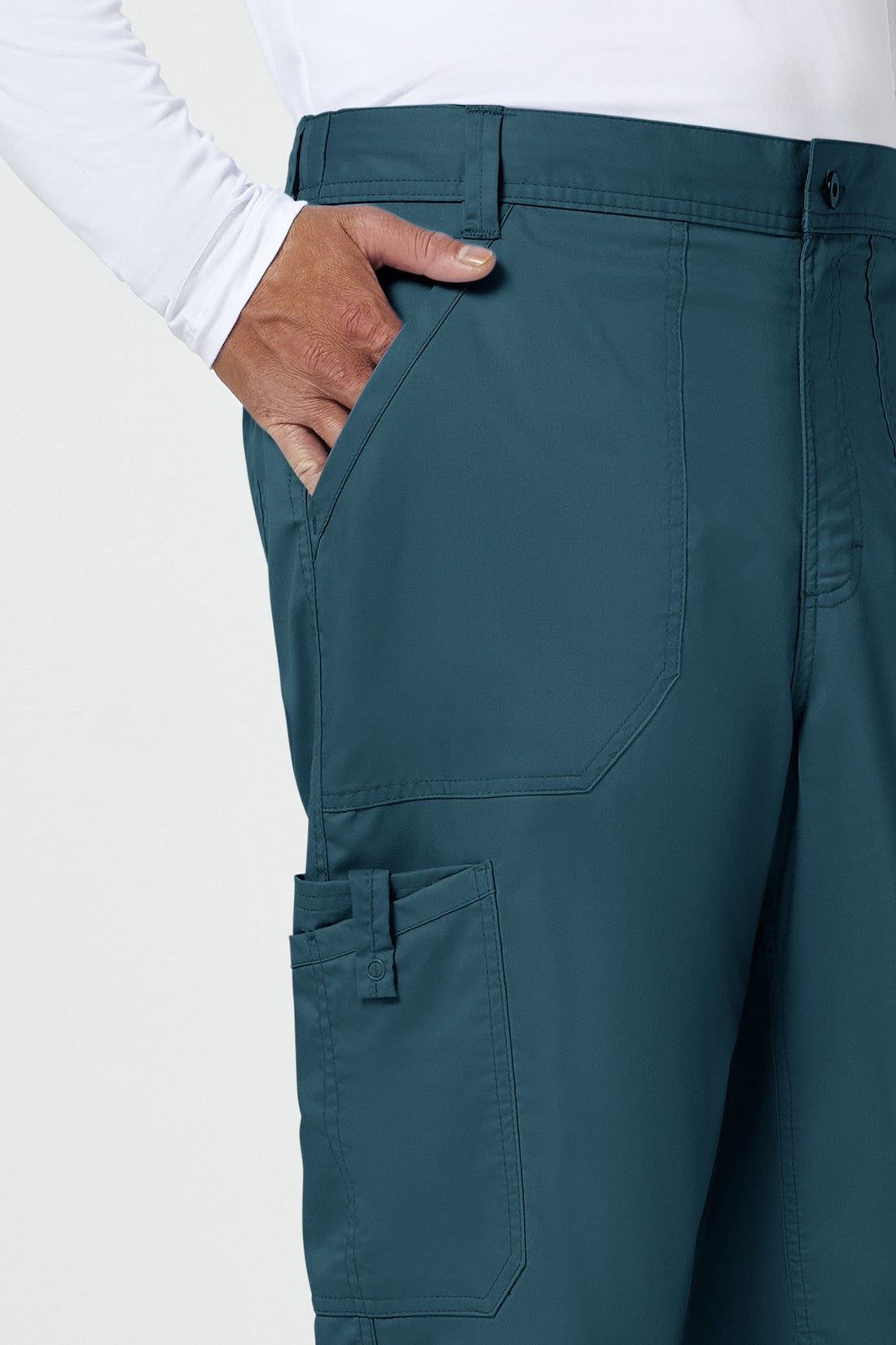 Un pantalón de corte moderno para hombre con un cordón interior funcional y una cintura elástica en la parte trasera, con cinco trabillas para el cinturón y una bragueta con cremallera y cierre de botón. También cuenta con bolsillos de parche delanteros, una etiqueta con el logotipo y un lazo elástico, un bolsillo de carga doble a la derecha con un lazo de identificación a presión, bolsillos de parche traseros y costuras en las rodillas. Costura interior: 32