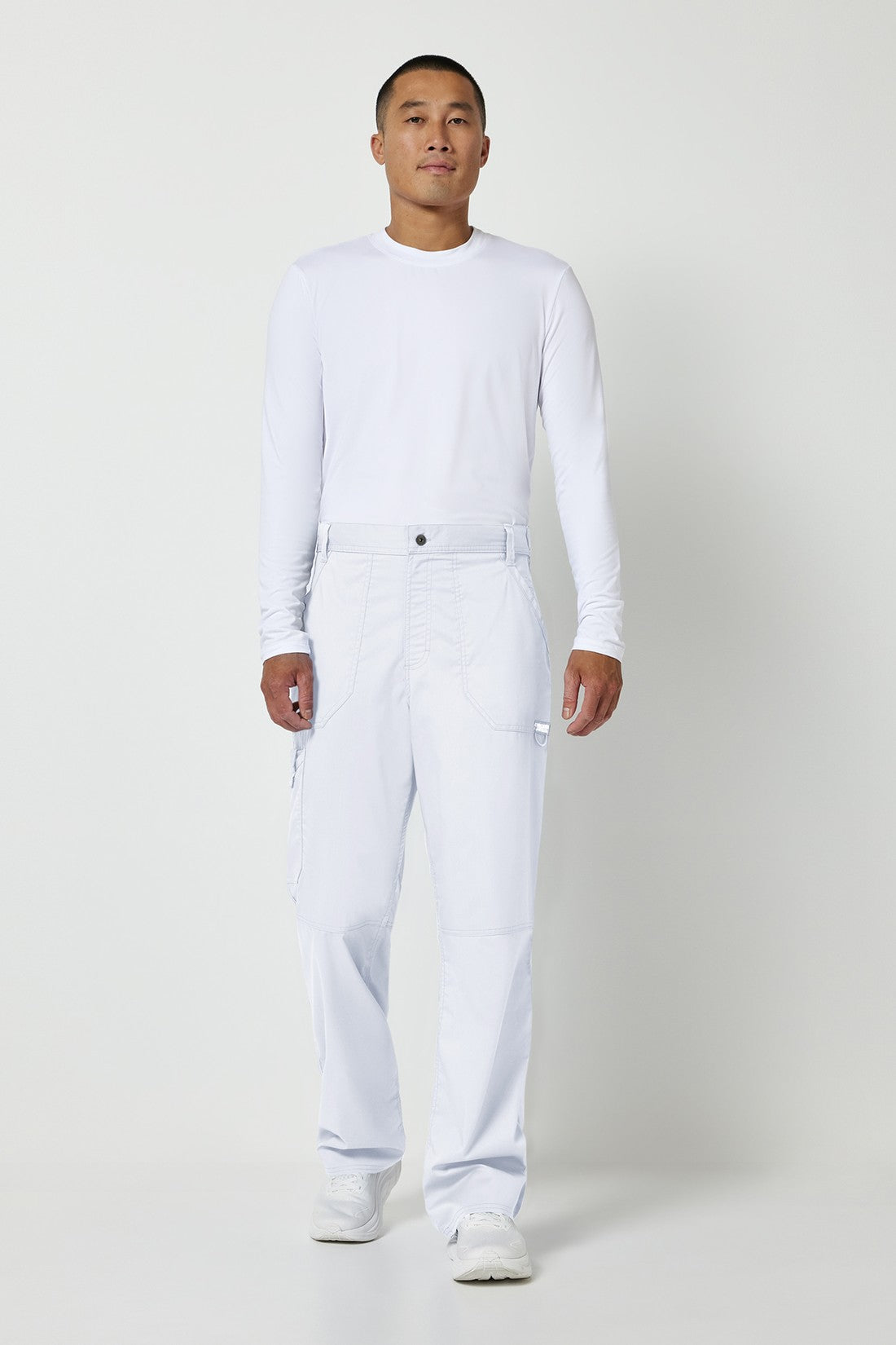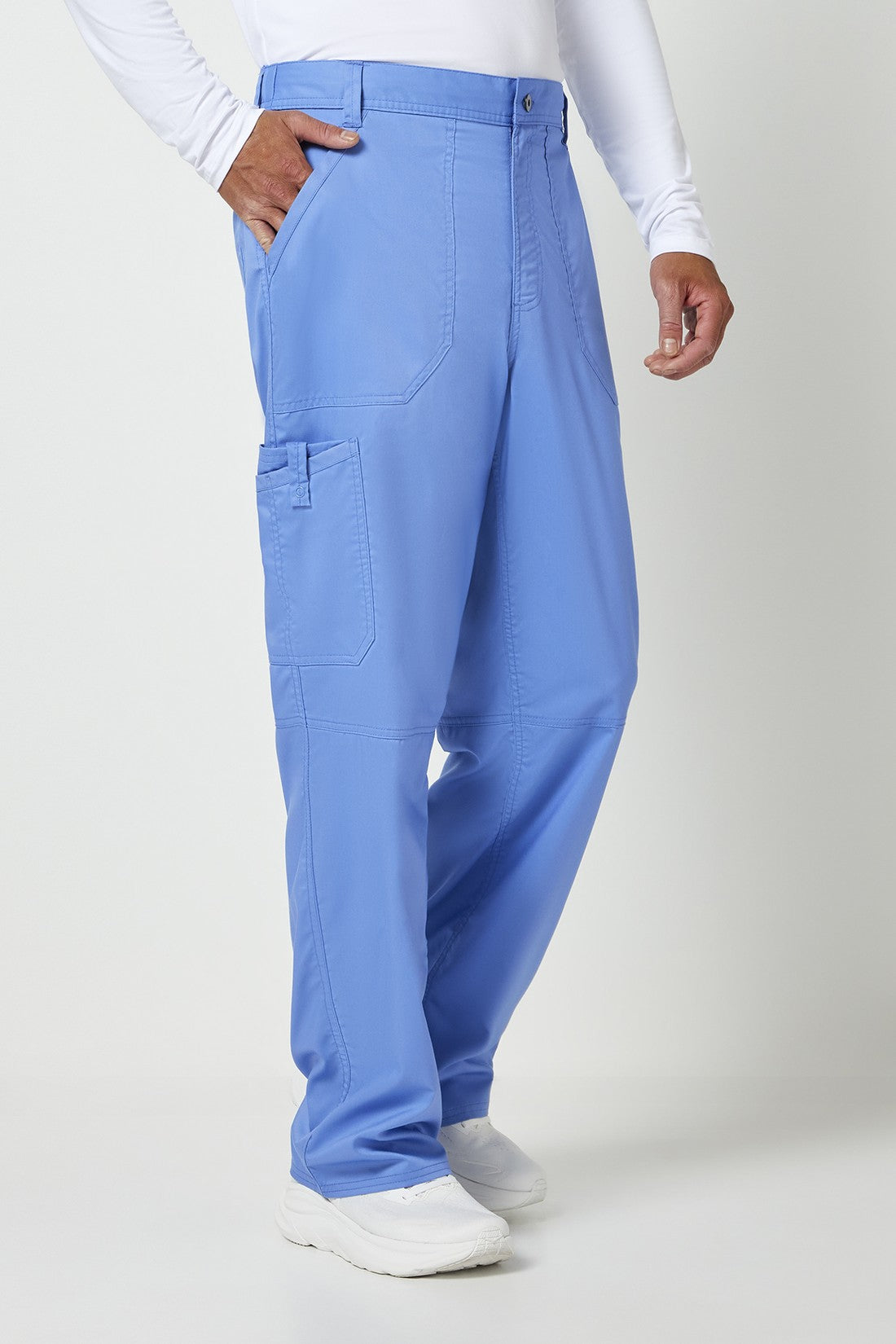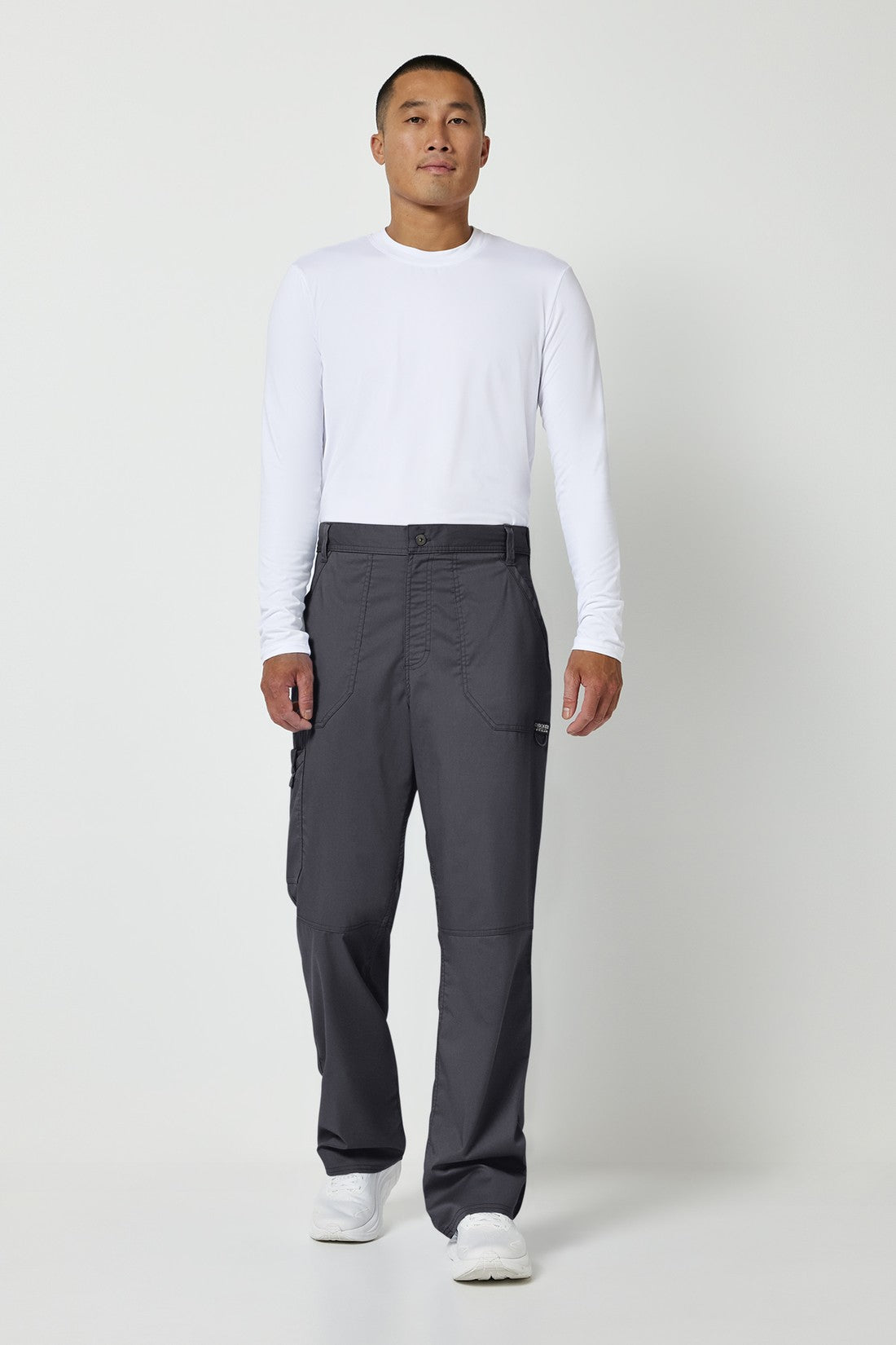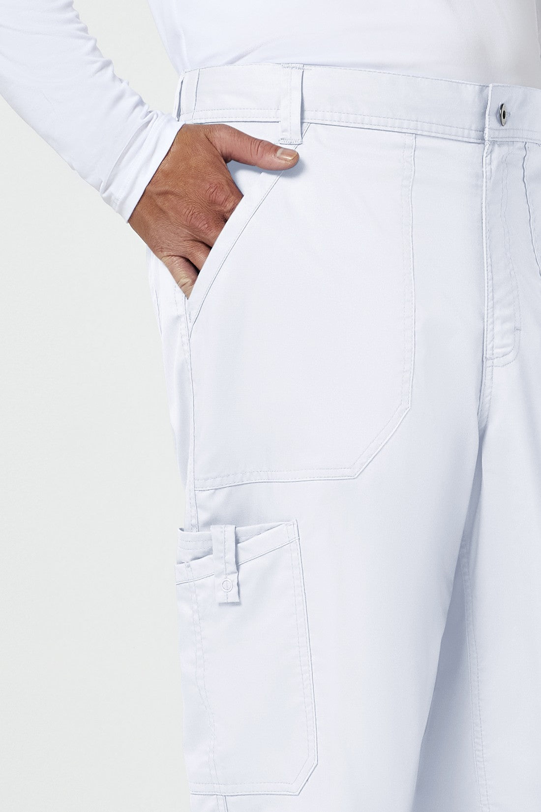 Un pantalón de corte moderno para hombre con un cordón interior funcional y una cintura elástica en la parte trasera, con cinco trabillas para el cinturón y una bragueta con cremallera y cierre de botón. También cuenta con bolsillos de parche delanteros, una etiqueta con el logotipo y un lazo elástico, un bolsillo de carga doble a la derecha con un lazo de identificación a presión, bolsillos de parche traseros y costuras en las rodillas. Costura interior: 32