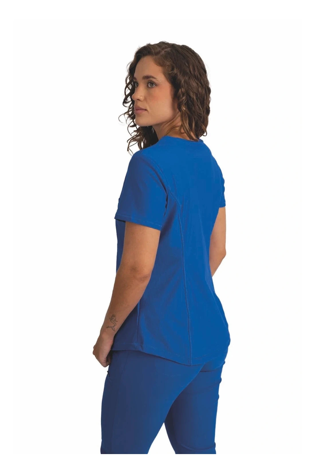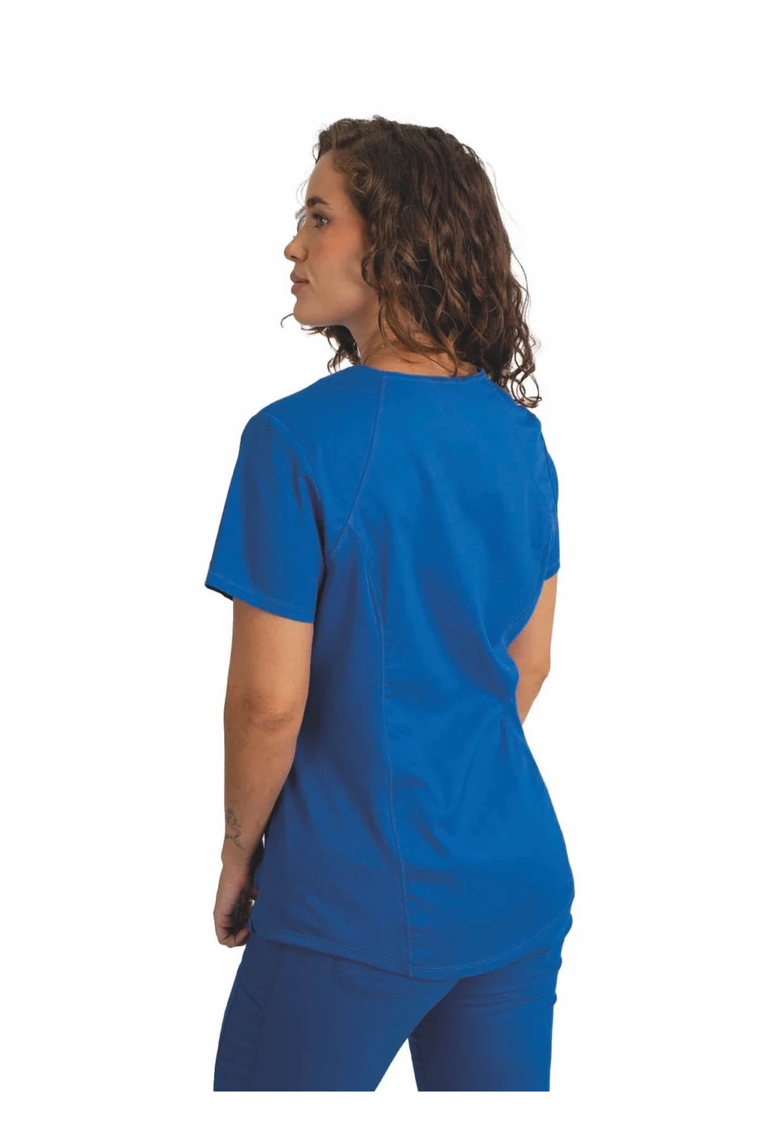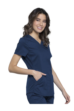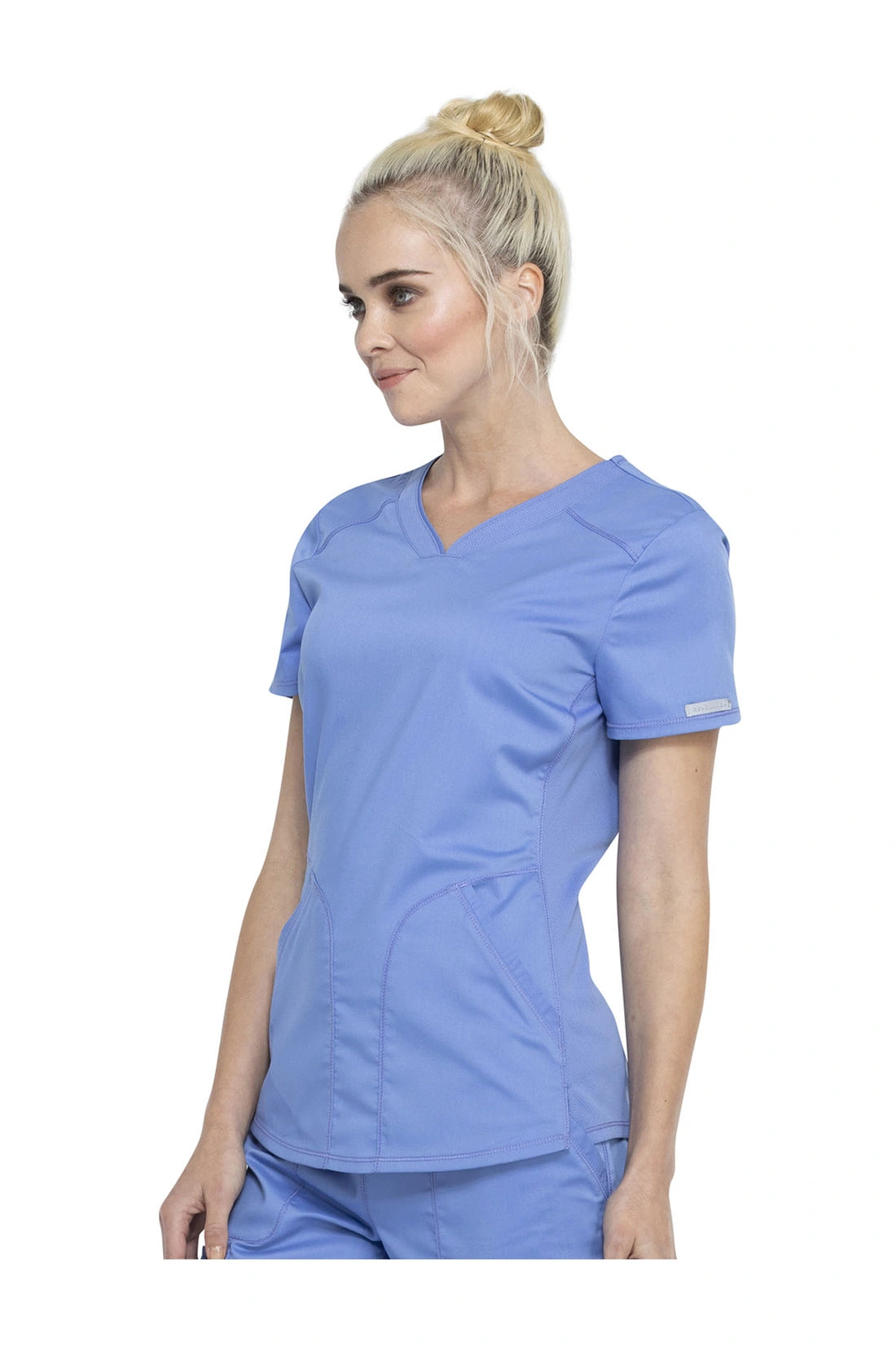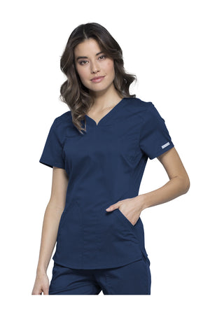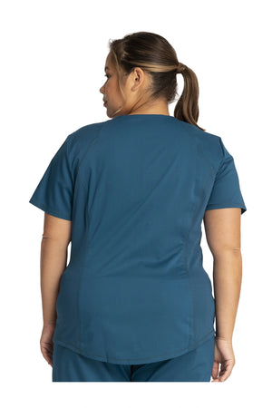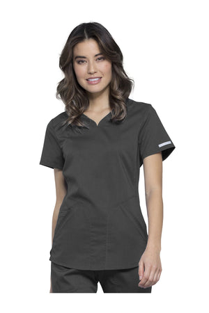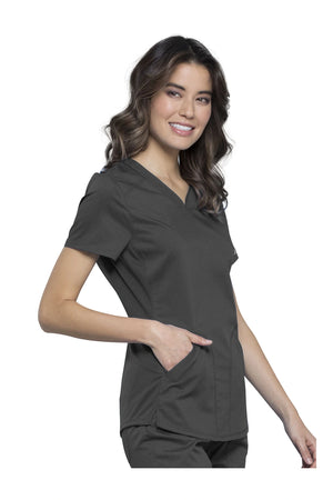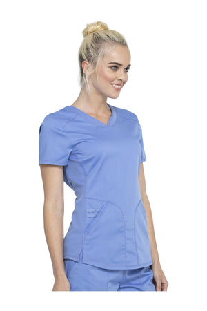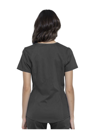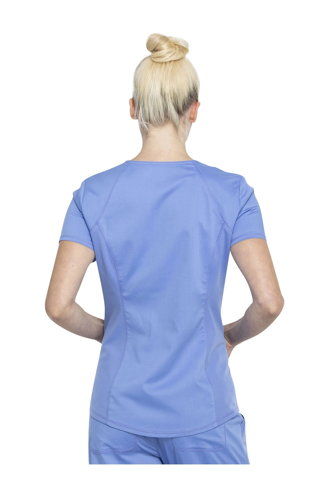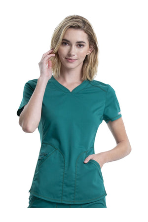 Añade un toque deportivo a tu vestuario médico con este top de cuello en V de forma suave con dos bolsillos de parche y bucles para instrumentos. Una malla transpirable en la banda del cuello y los paneles laterales para mayor comodidad y movilidad. Ajuste clásico moderno. Longitud en el centro de la espalda: 26