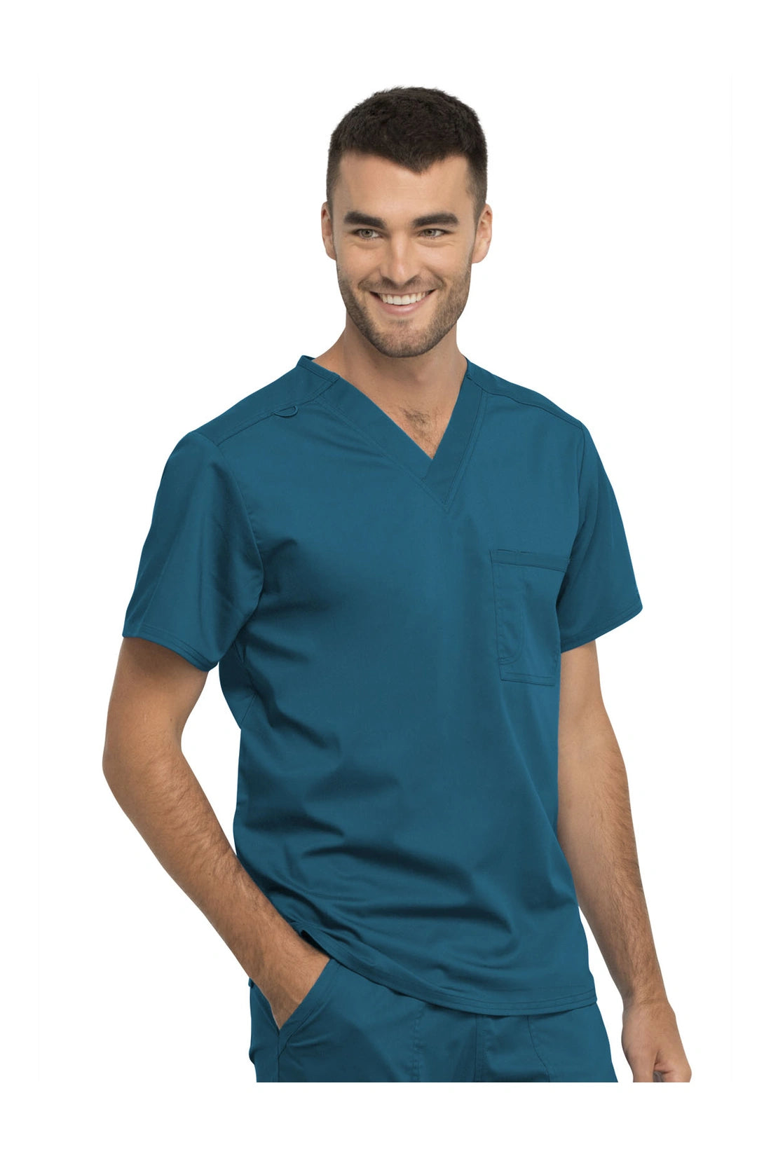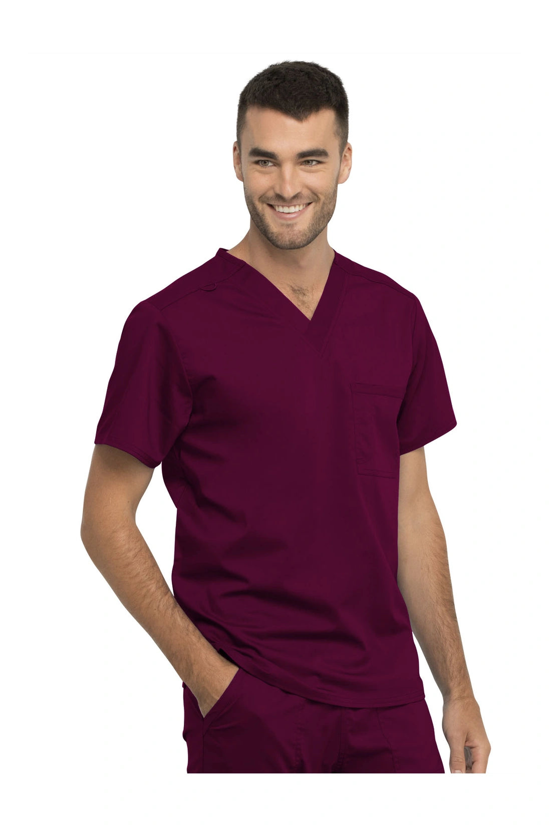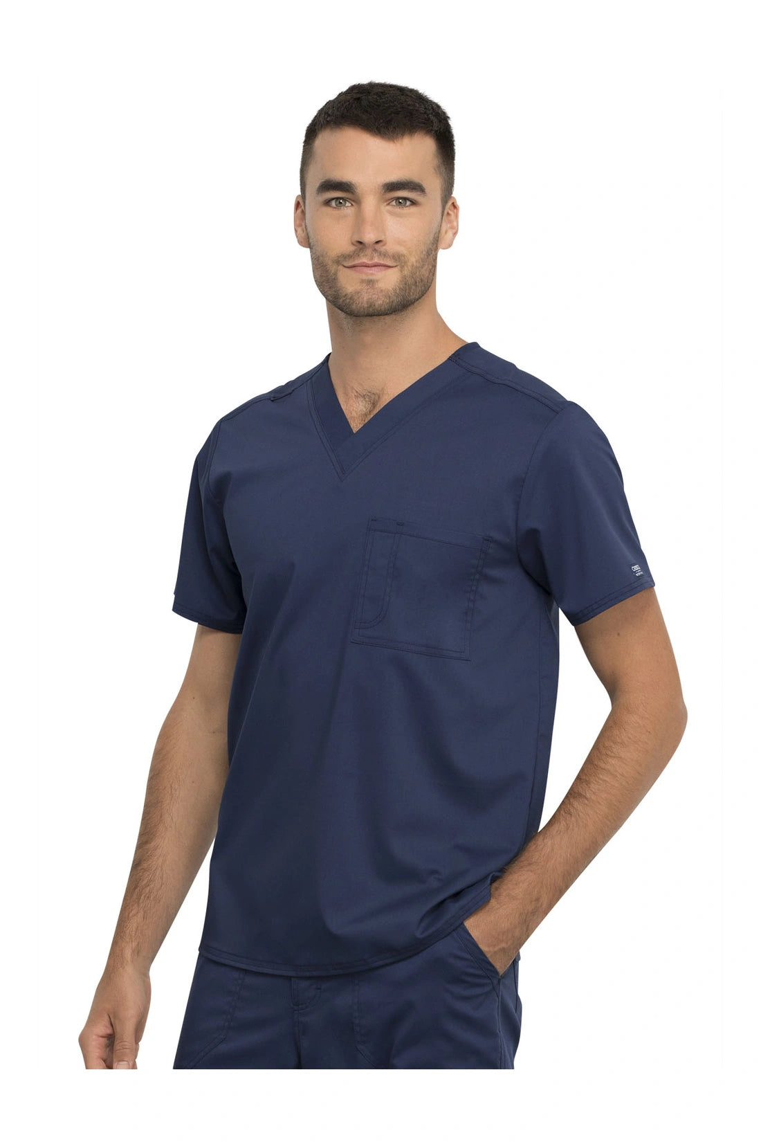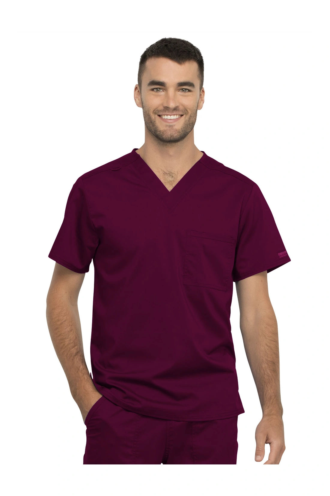 Esta camiseta esencial unisex de corte moderno presenta un corte relajado, un bolsillo en el pecho con un punto de bolígrafo, un lazo de identificación Bungee en la costura del hombro y aberturas laterales para facilitar el movimiento.