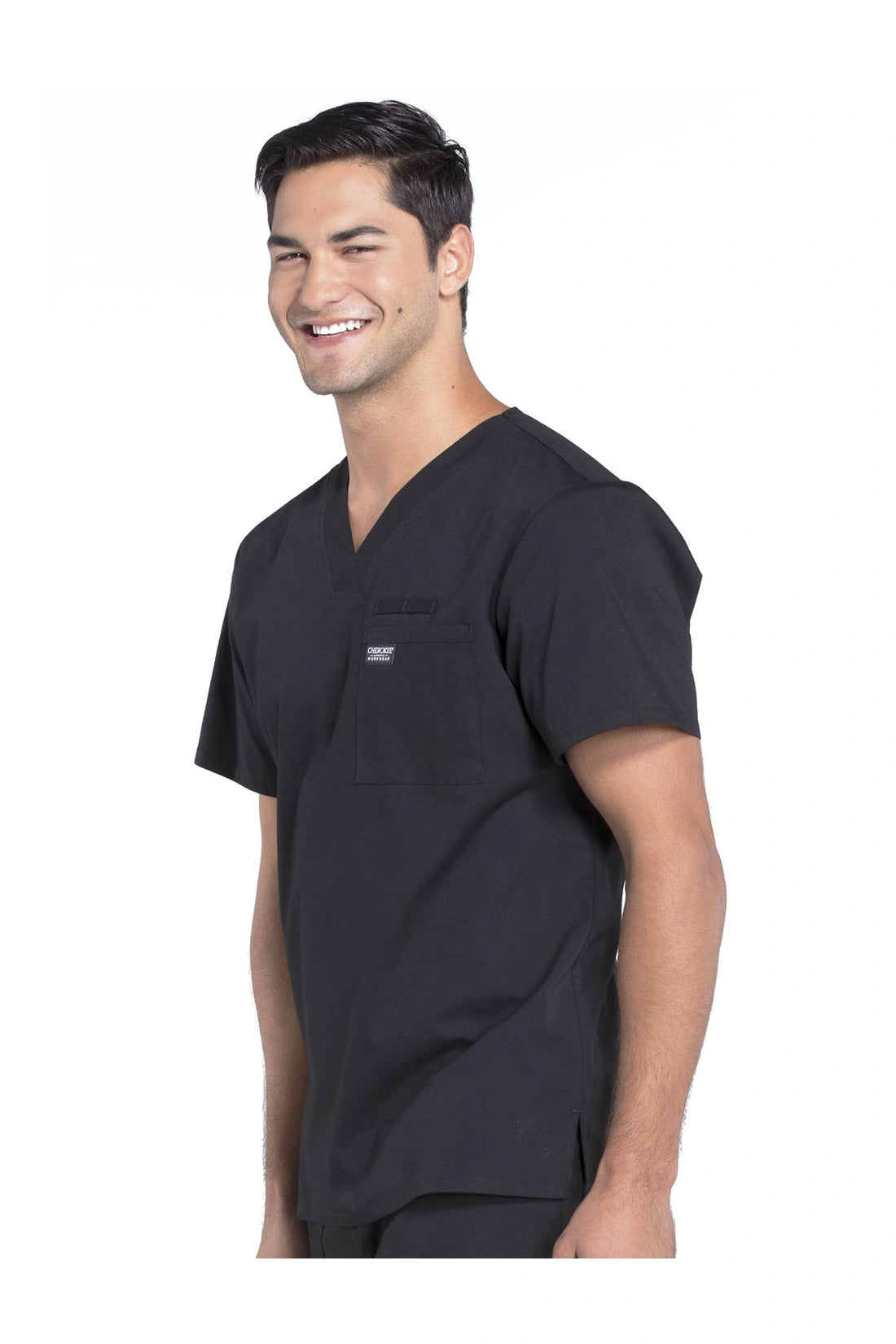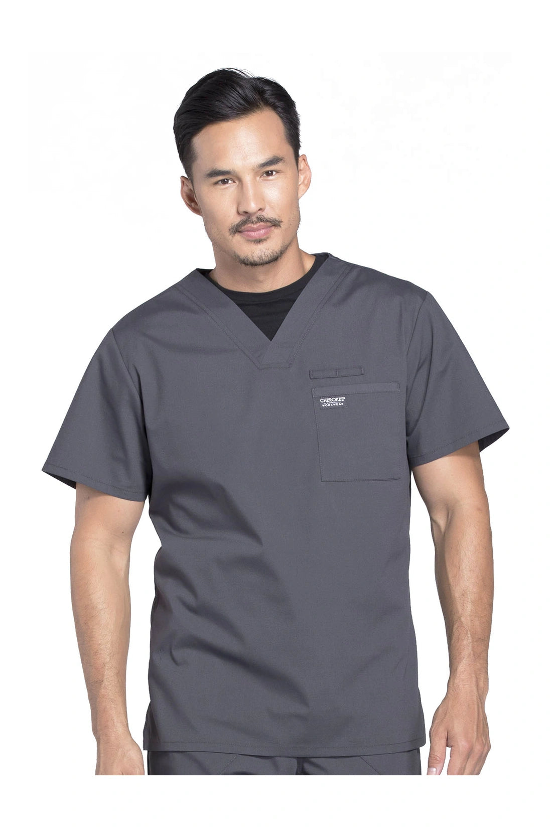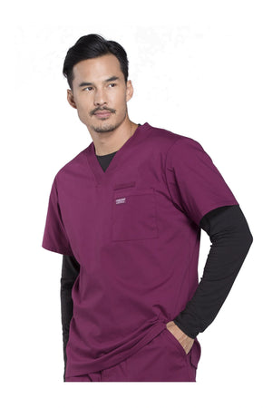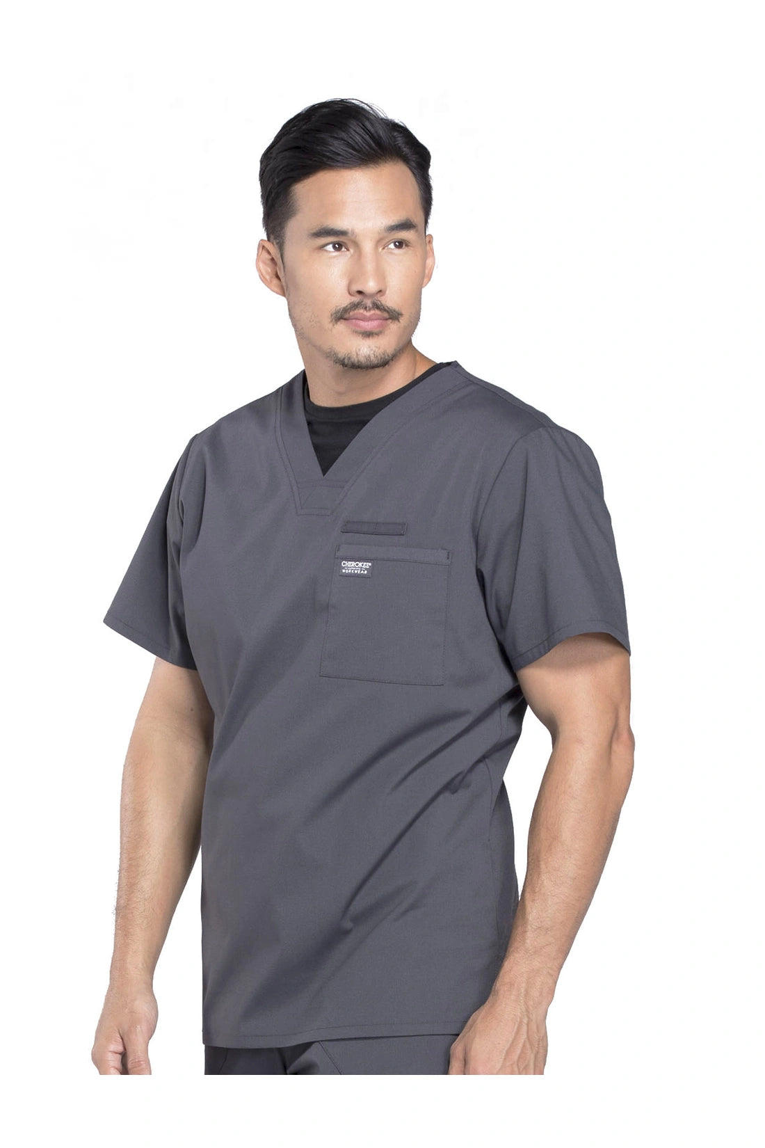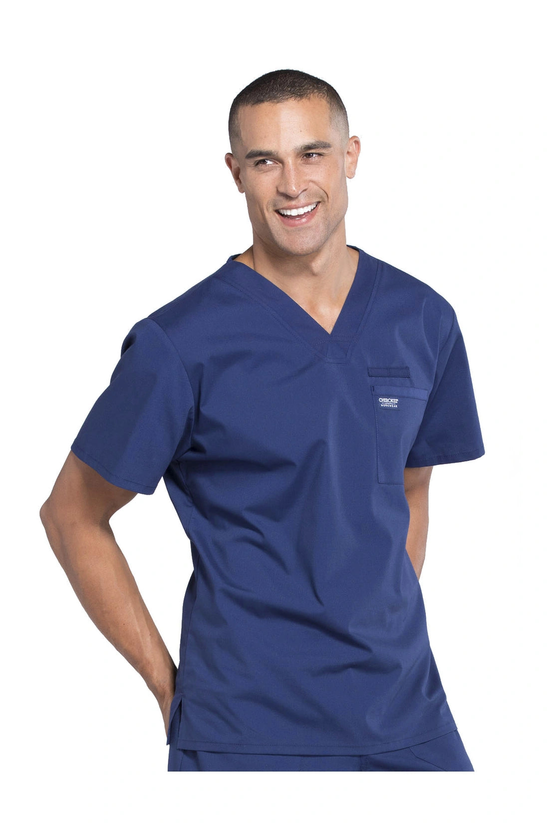 La camiseta de cuello en V de ajuste tradicional para hombre cuenta con un bolsillo en el pecho con bucle para instrumentos, un canesú en la espalda y aberturas laterales. Este estilo se ve muy bien metido o sin meter. Longitud del centro de la espalda: 28