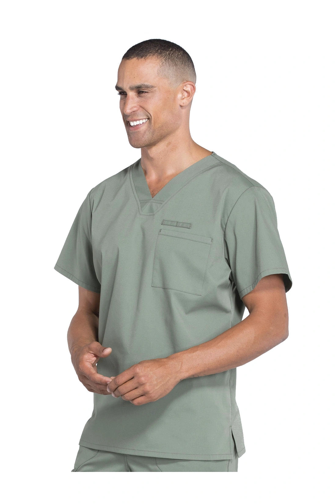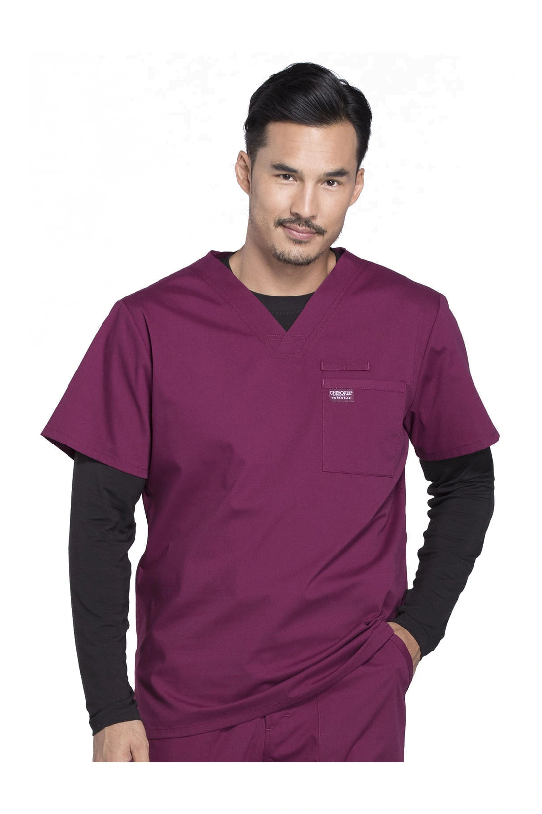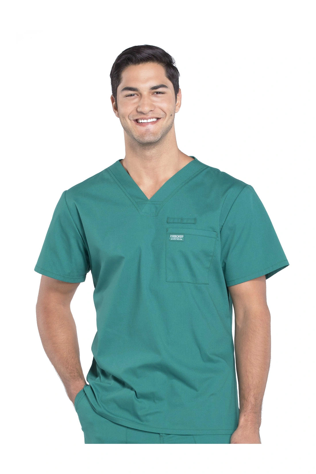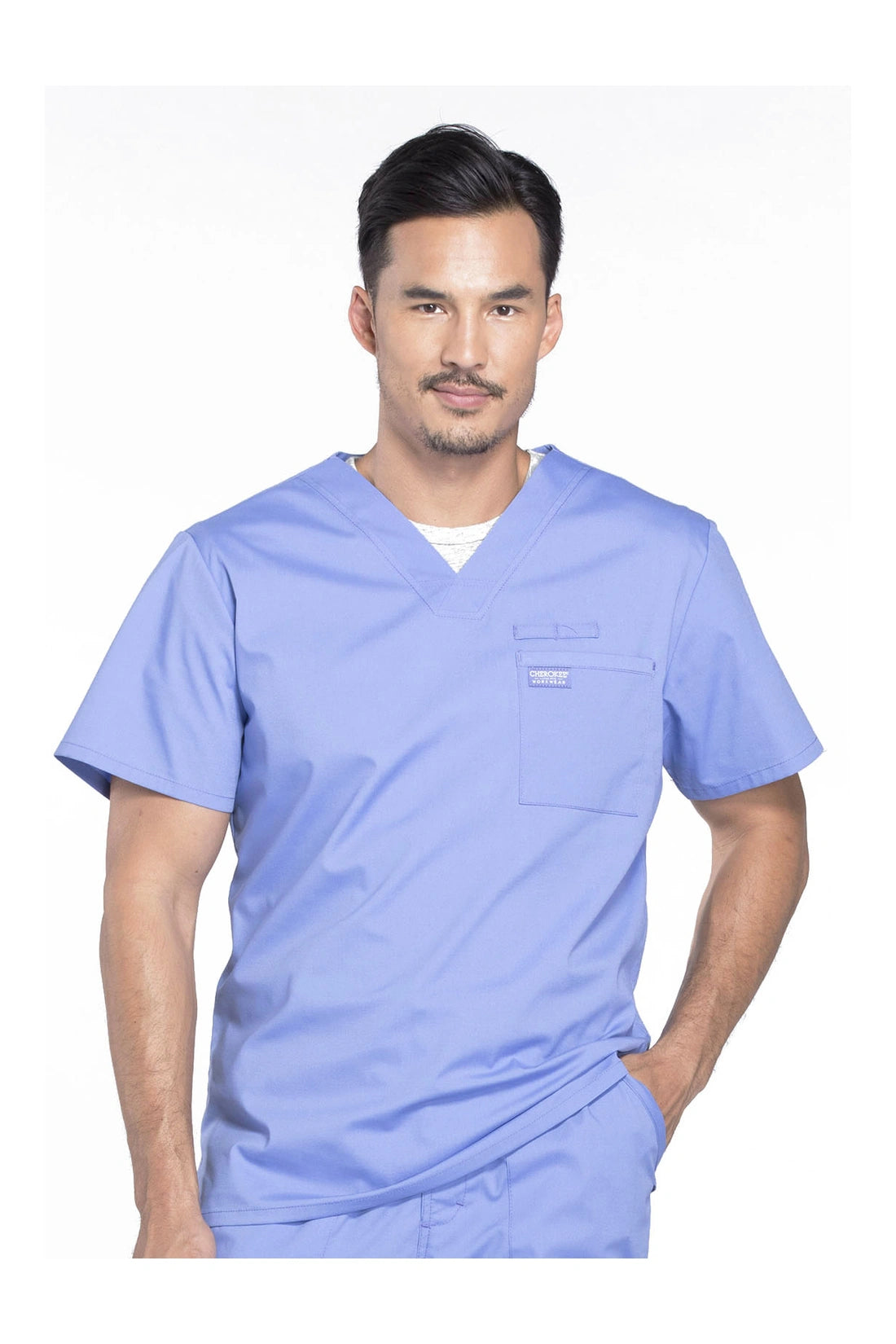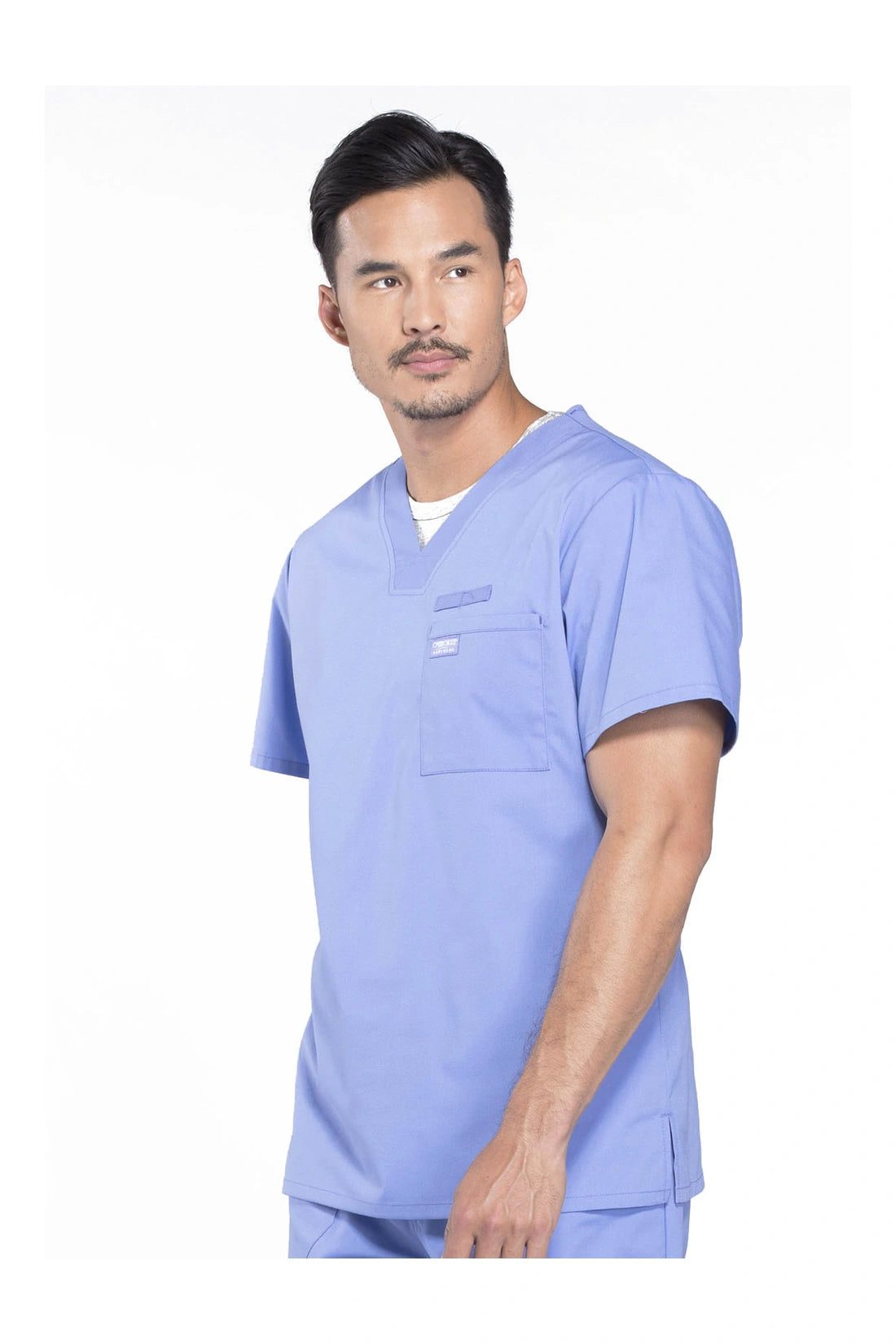 La camiseta de cuello en V de ajuste tradicional para hombre cuenta con un bolsillo en el pecho con bucle para instrumentos, un canesú en la espalda y aberturas laterales. Este estilo se ve muy bien metido o sin meter. Longitud del centro de la espalda: 28