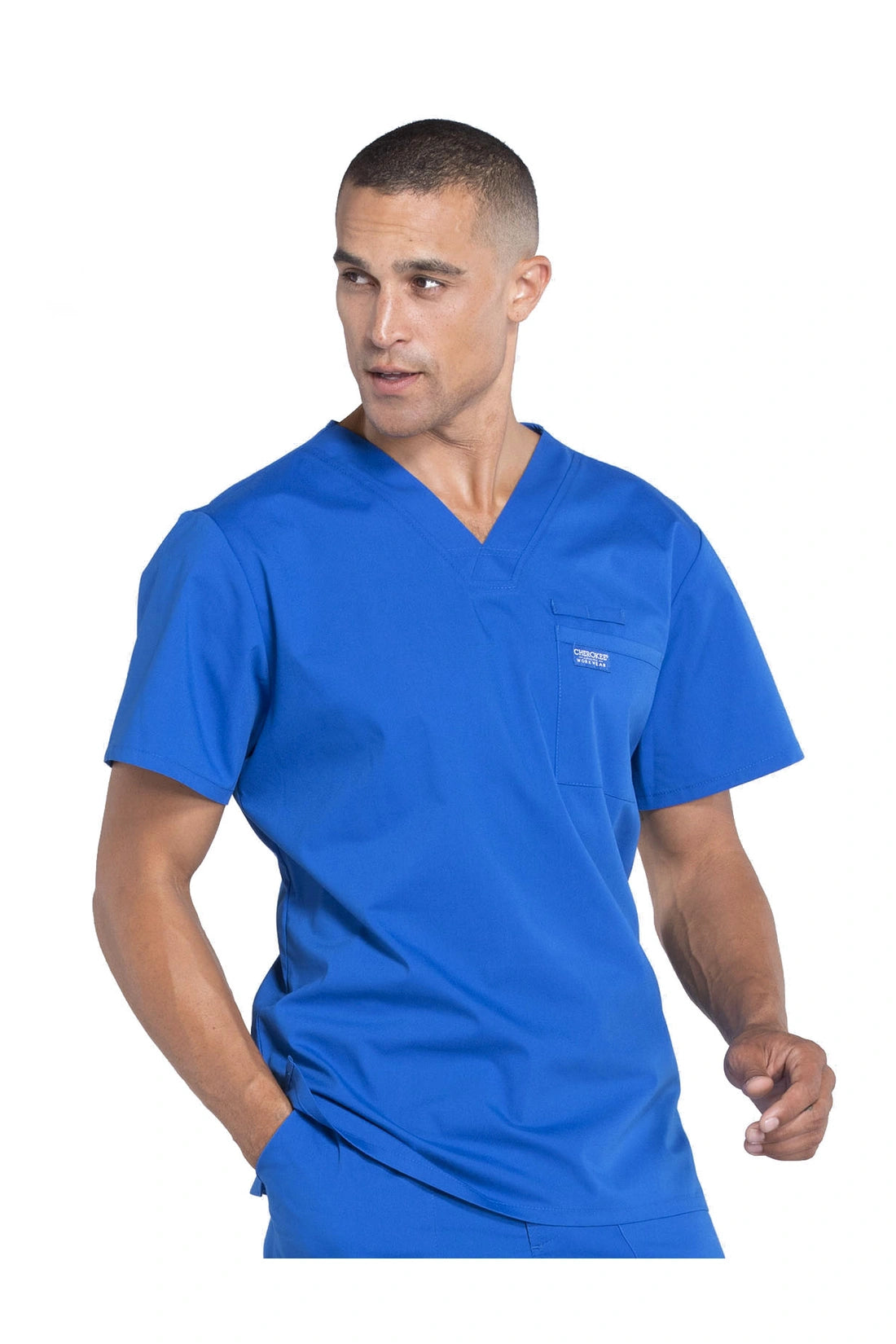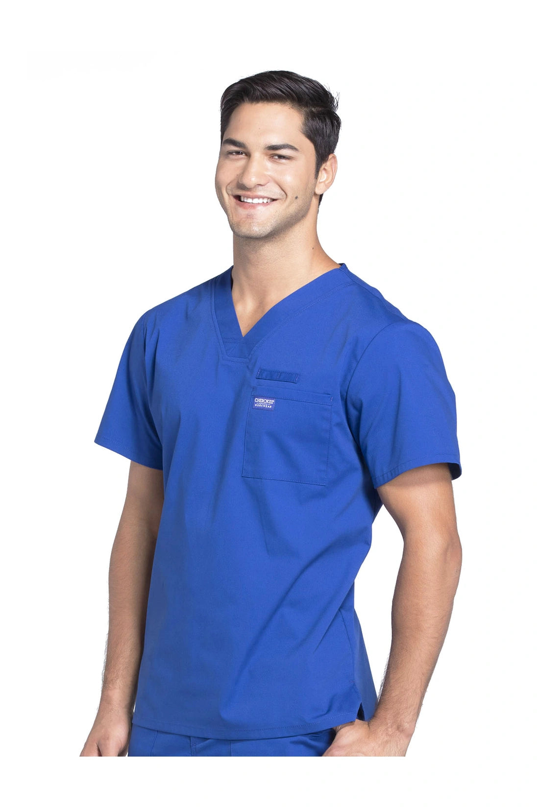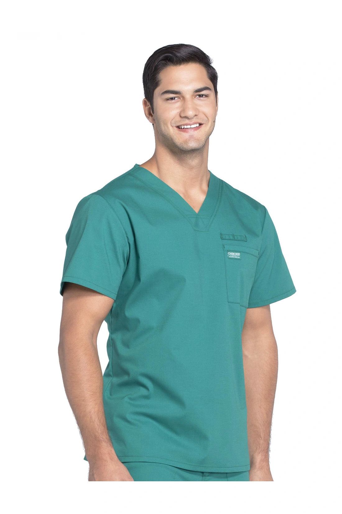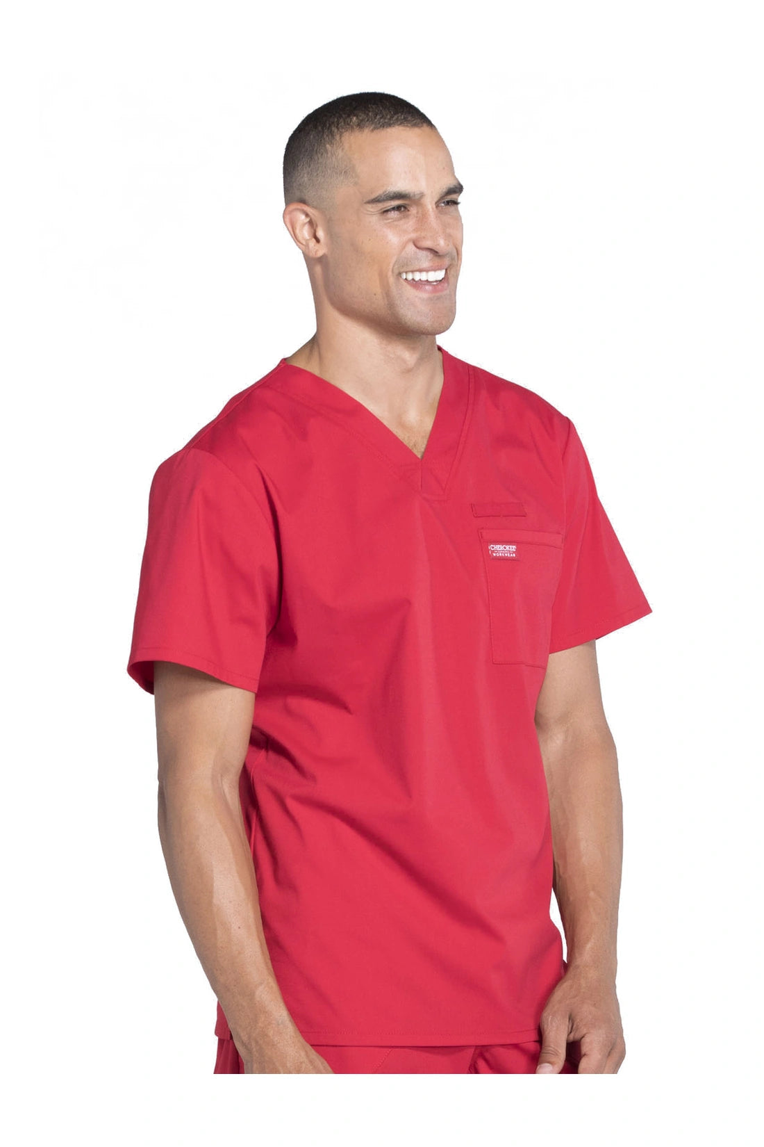 La camiseta de cuello en V de ajuste tradicional para hombre cuenta con un bolsillo en el pecho con bucle para instrumentos, un canesú en la espalda y aberturas laterales. Este estilo se ve muy bien metido o sin meter. Longitud del centro de la espalda: 28