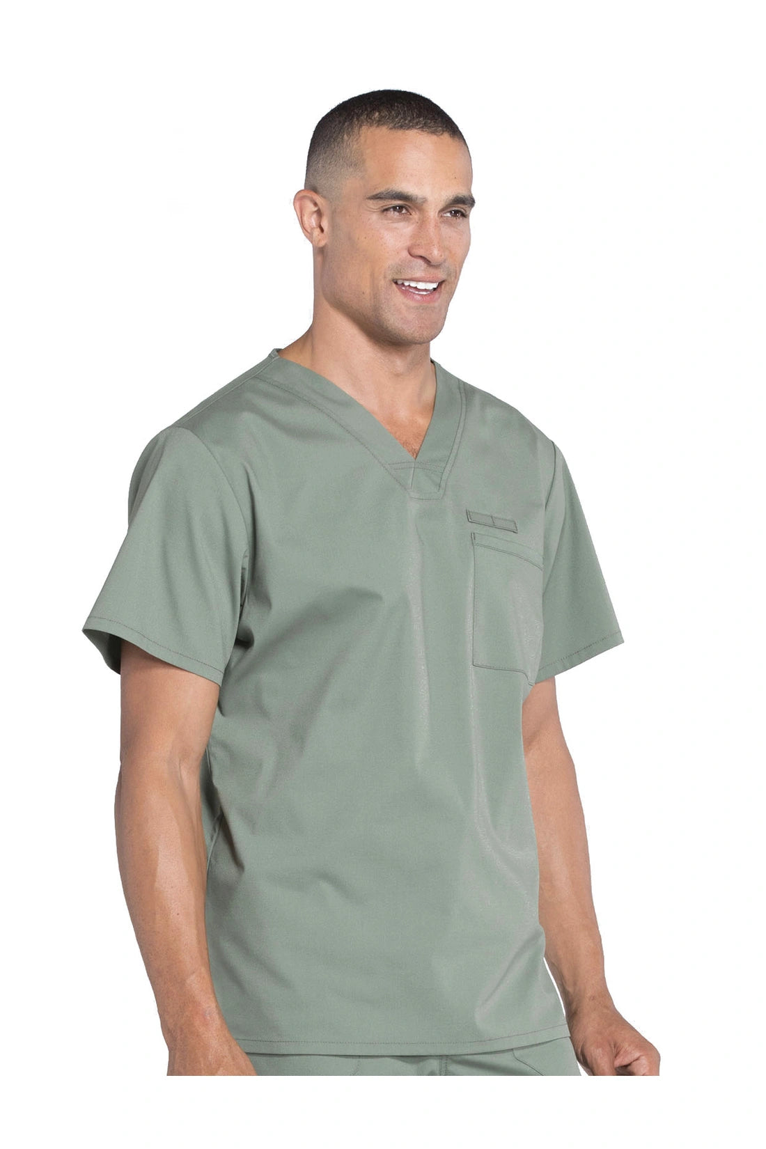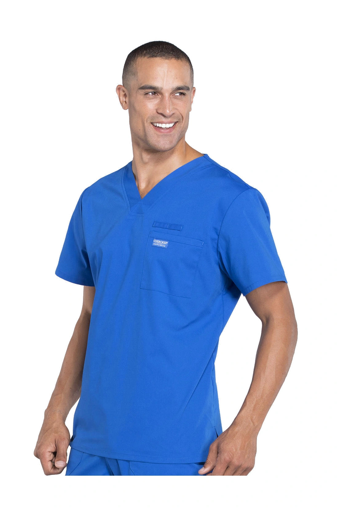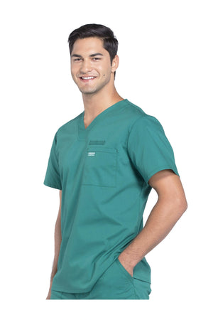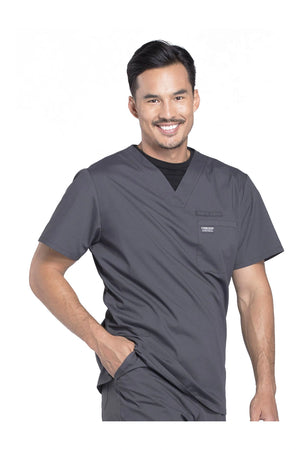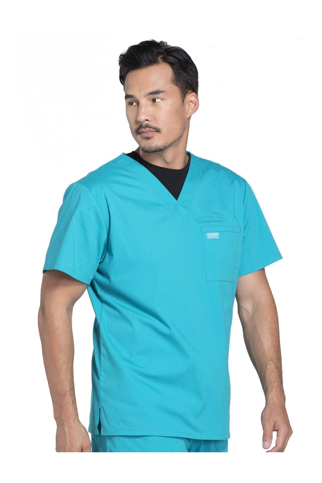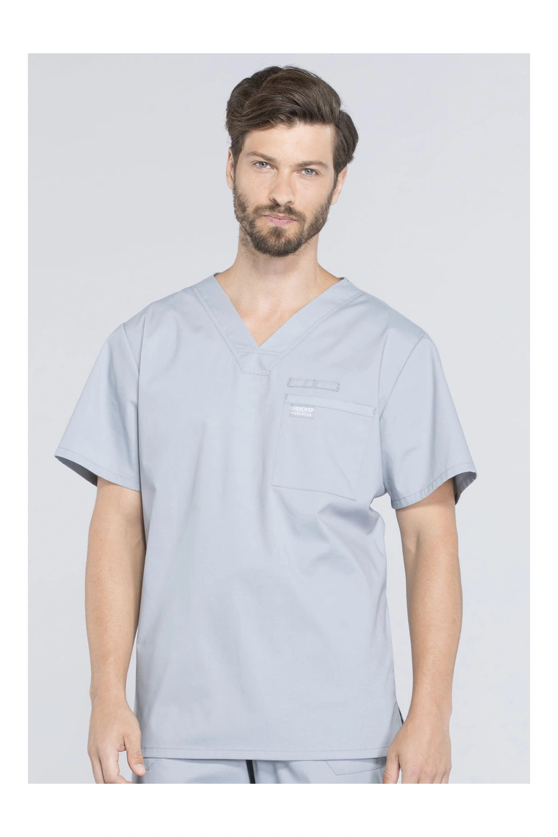 La camiseta de cuello en V de ajuste tradicional para hombre cuenta con un bolsillo en el pecho con bucle para instrumentos, un canesú en la espalda y aberturas laterales. Este estilo se ve muy bien metido o sin meter. Longitud del centro de la espalda: 28