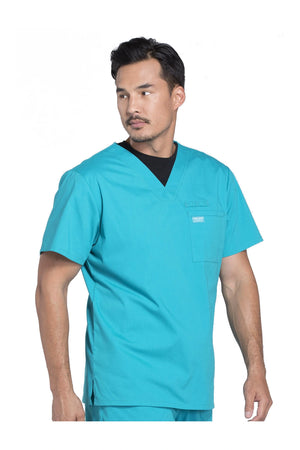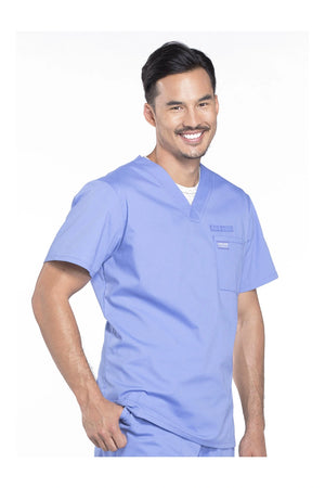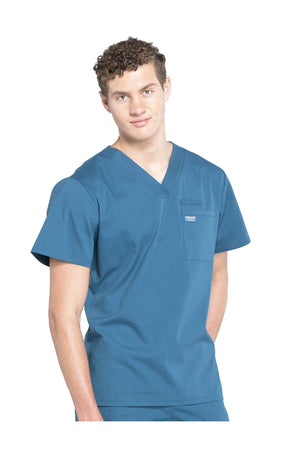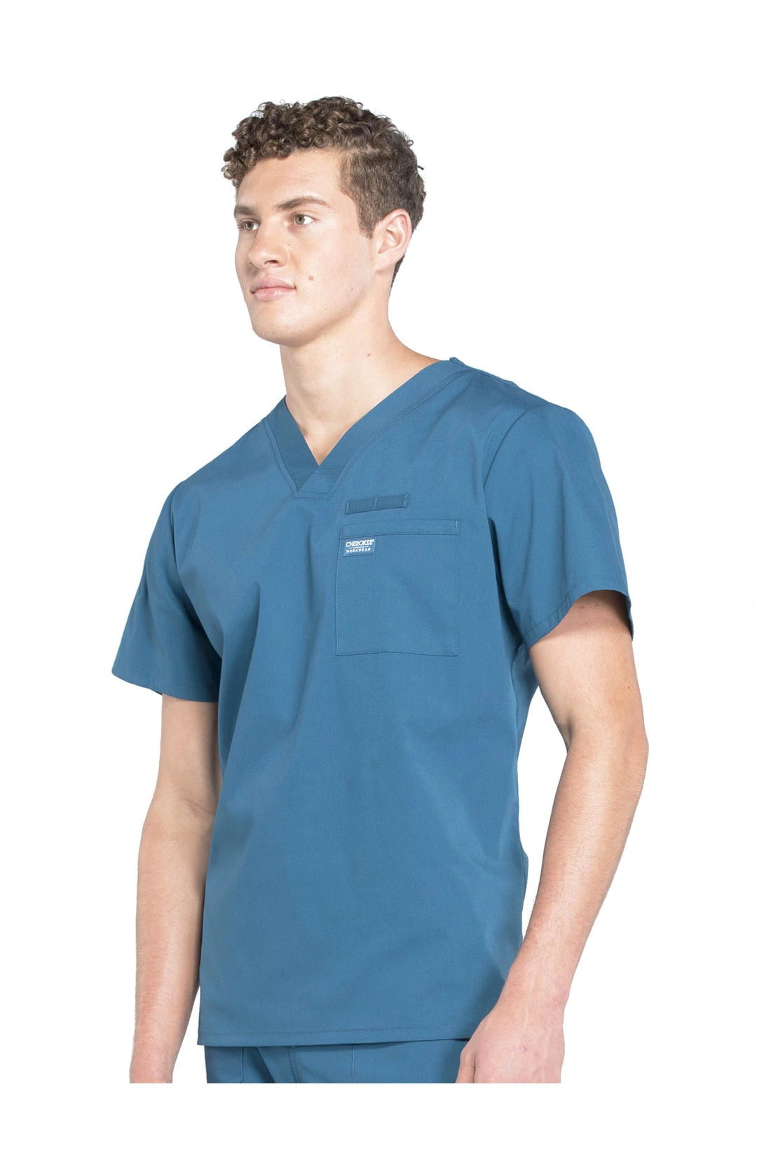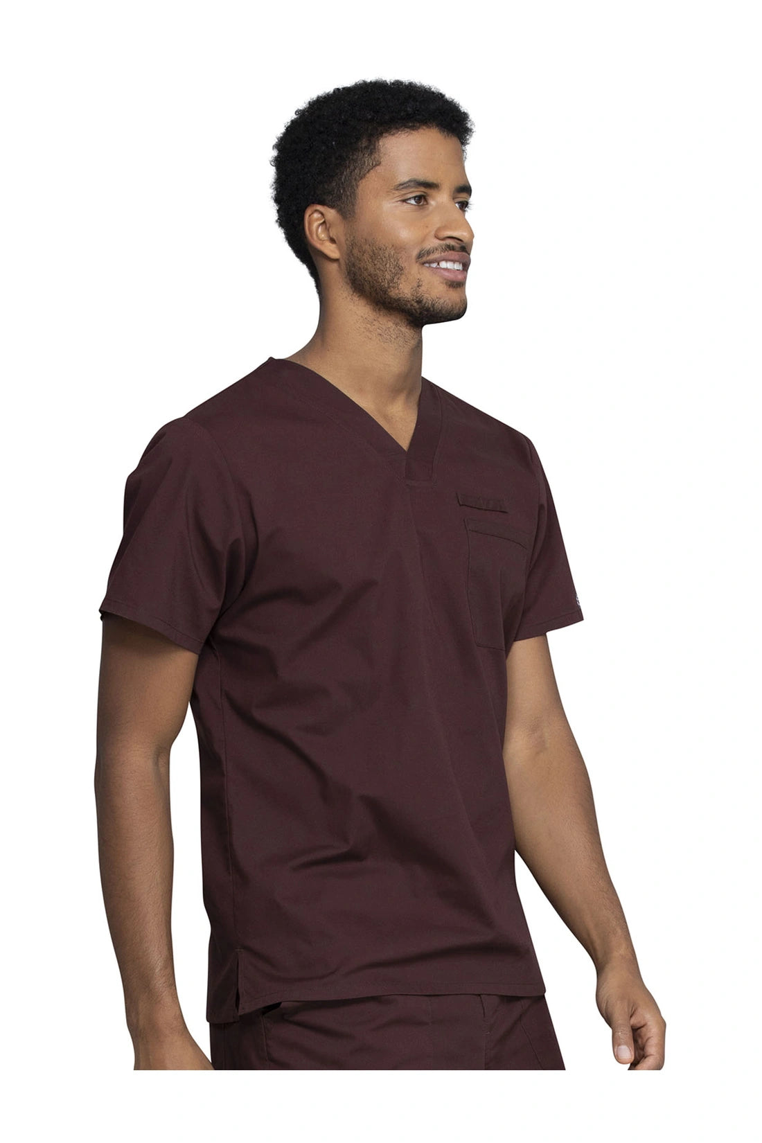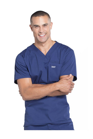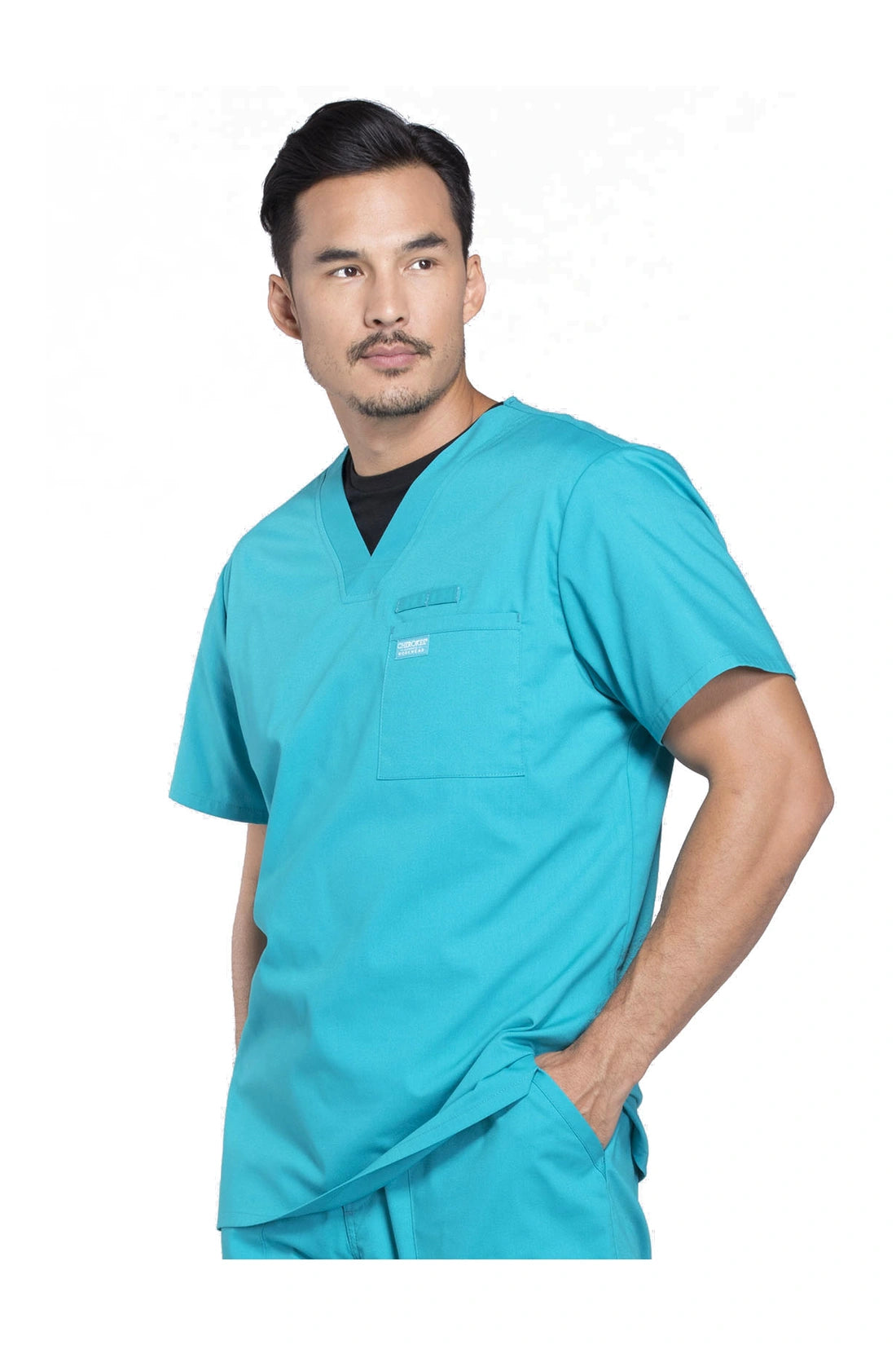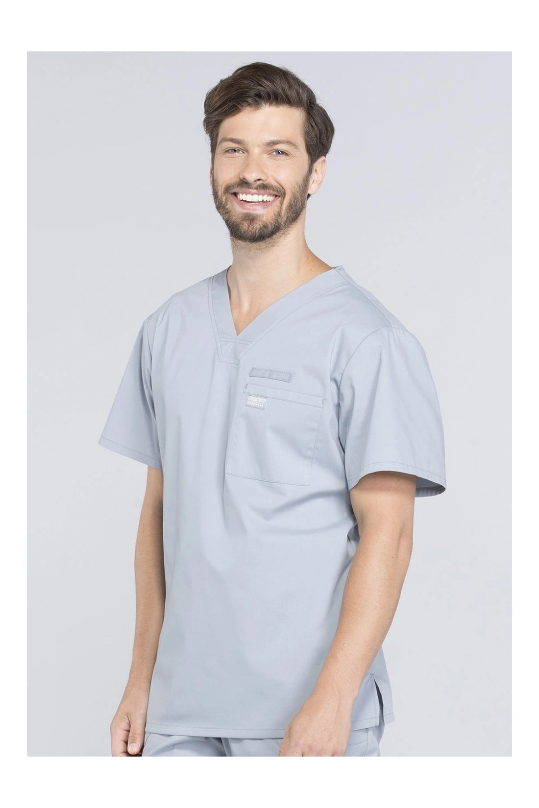 La camiseta de cuello en V de ajuste tradicional para hombre cuenta con un bolsillo en el pecho con bucle para instrumentos, un canesú en la espalda y aberturas laterales. Este estilo se ve muy bien metido o sin meter. Longitud del centro de la espalda: 28
