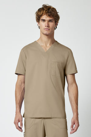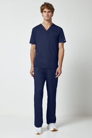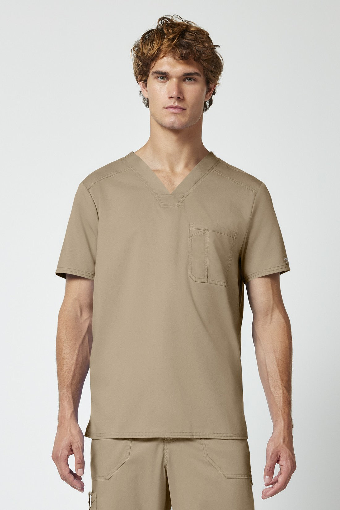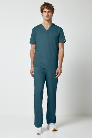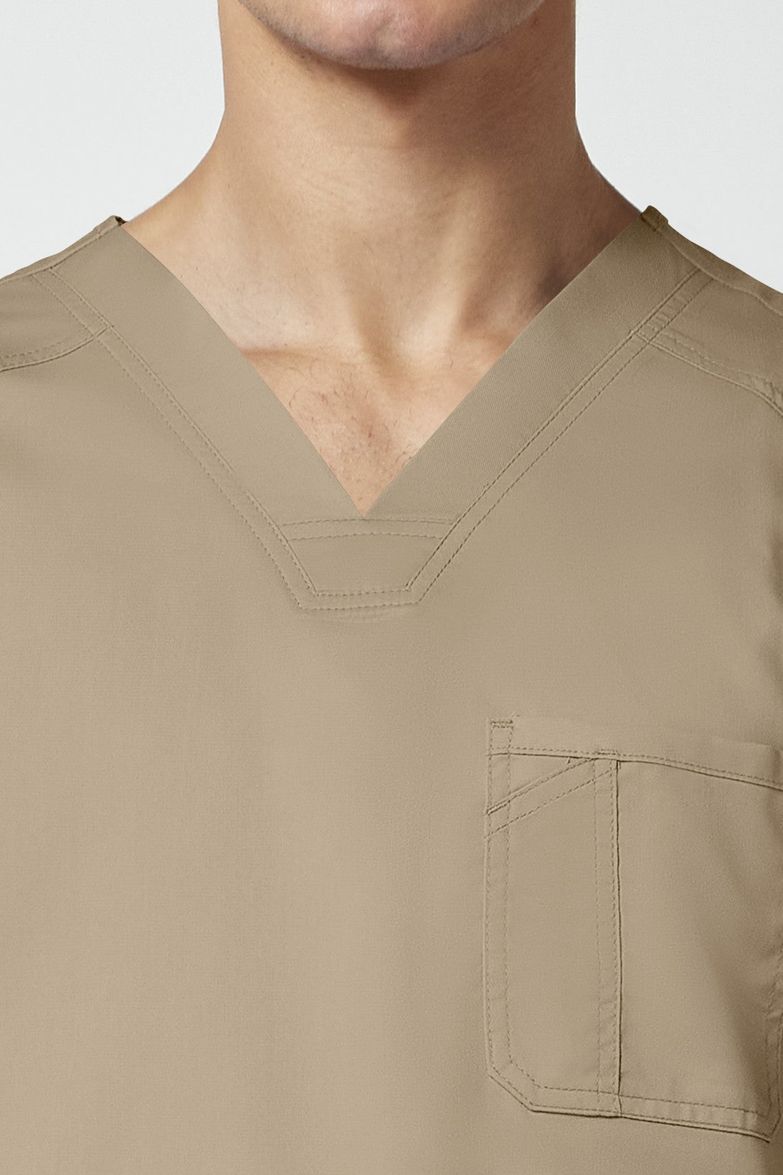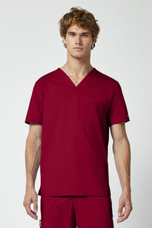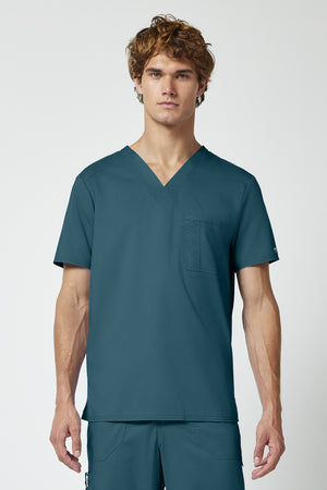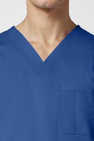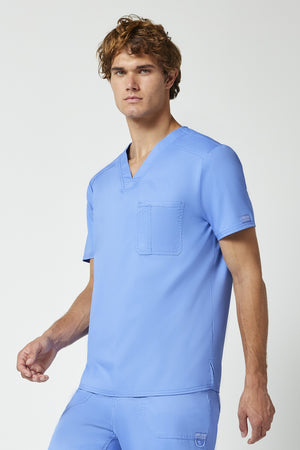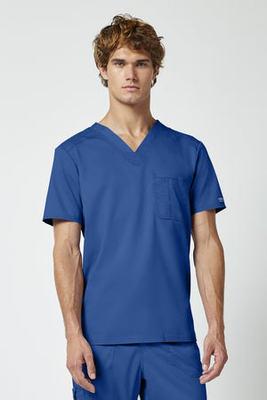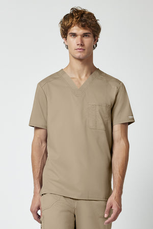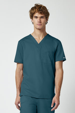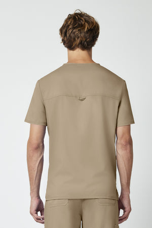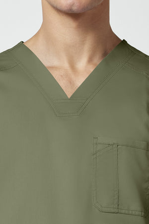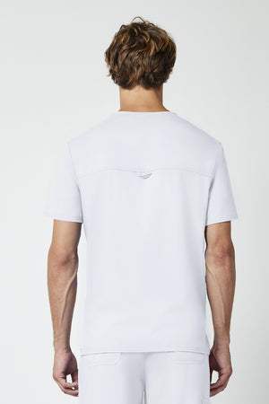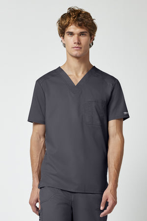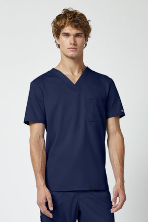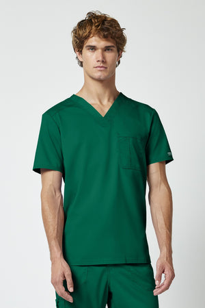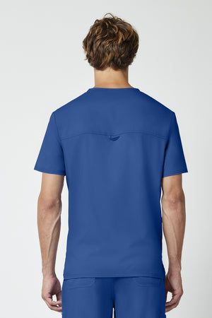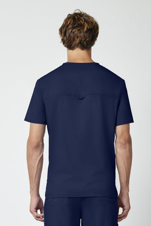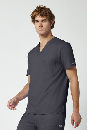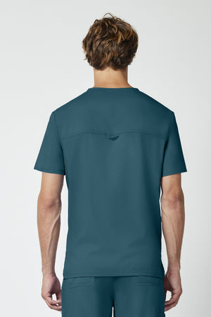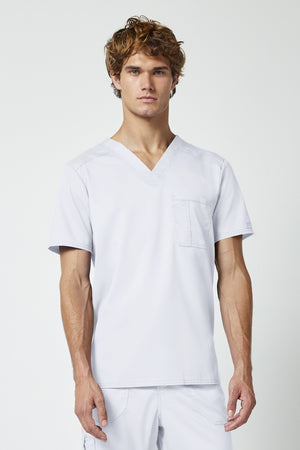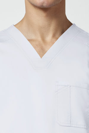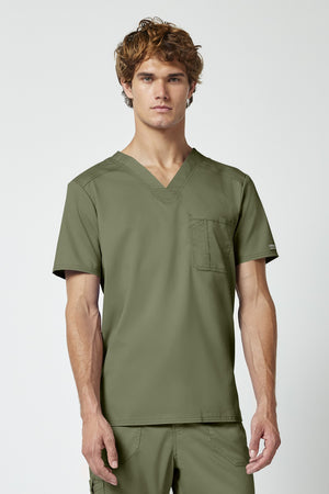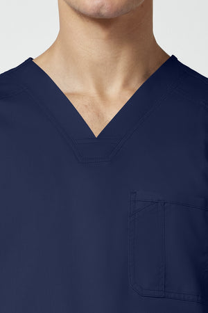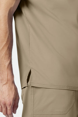 La camiseta de cuello en V de corte moderno para hombre cuenta con un bolsillo en el pecho con un bolsillo adicional para bolígrafos, un canesú en la espalda y aberturas laterales. Este estilo se ve muy bien metido o sin meter. Longitud en el centro de la espalda: 29