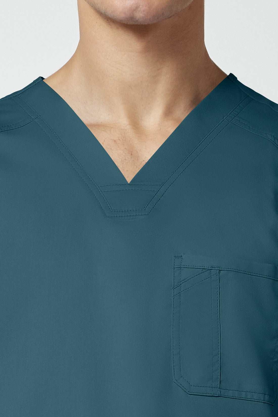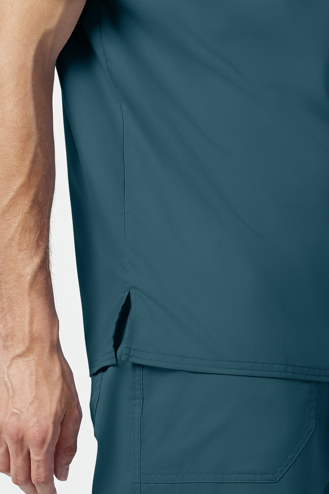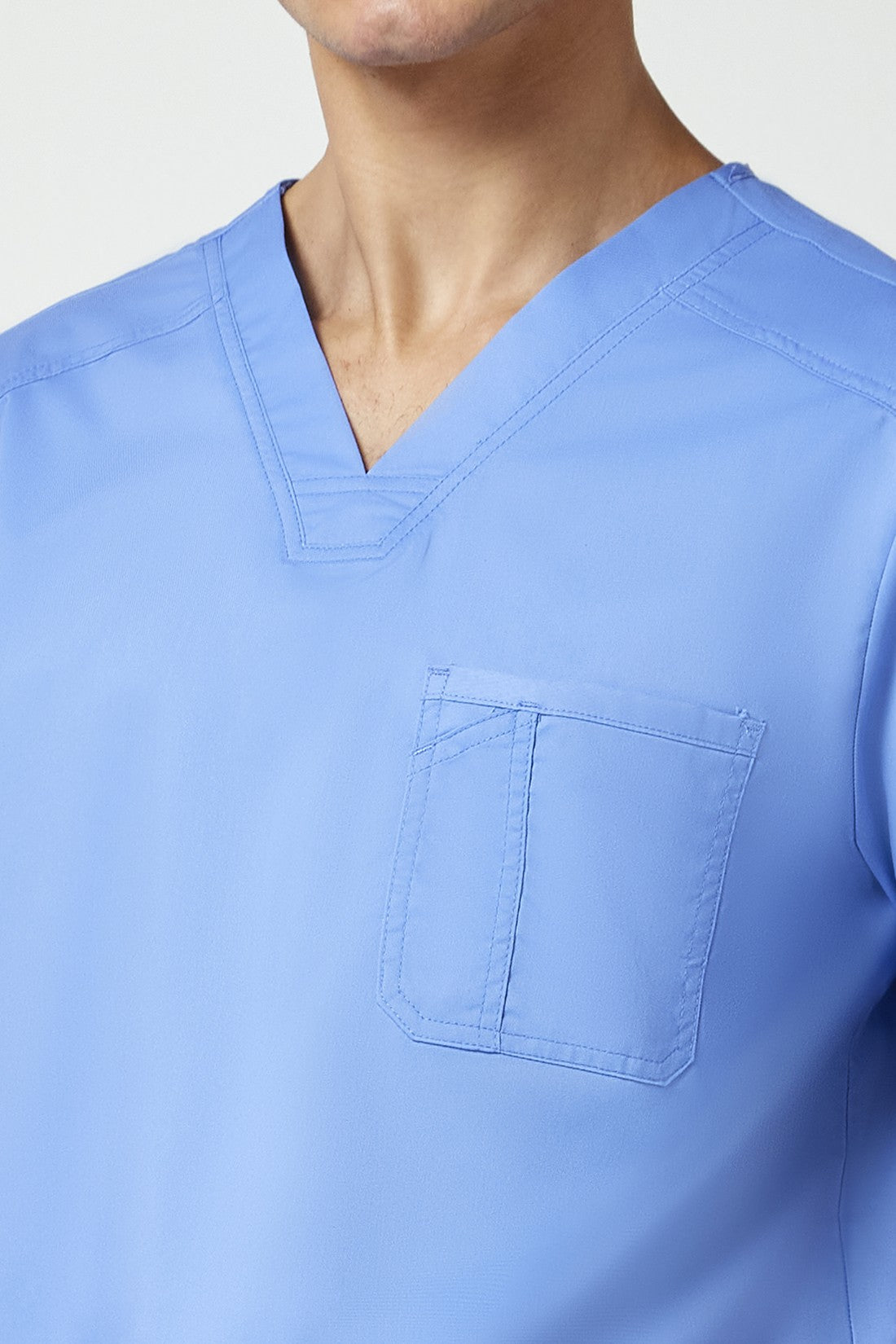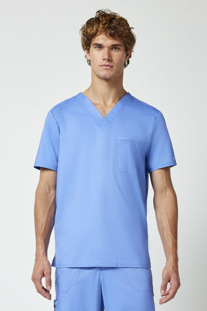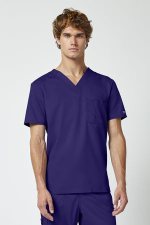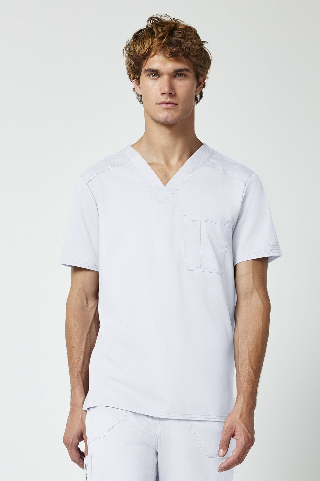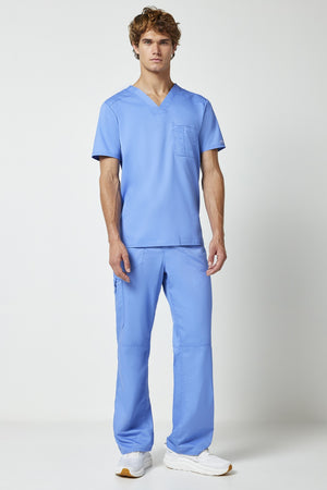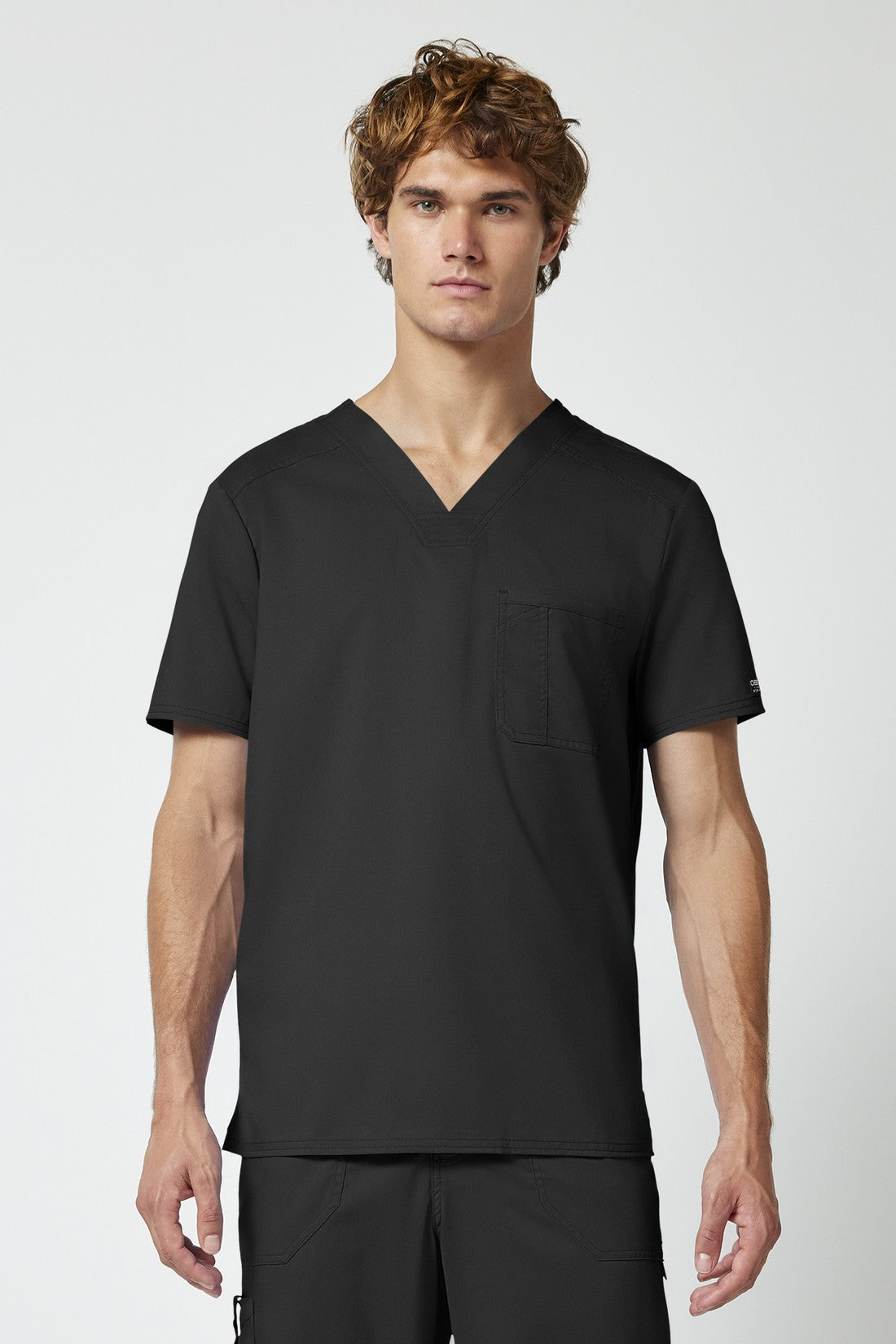 La camiseta de cuello en V de corte moderno para hombre cuenta con un bolsillo en el pecho con un bolsillo adicional para bolígrafos, un canesú en la espalda y aberturas laterales. Este estilo se ve muy bien metido o sin meter. Longitud en el centro de la espalda: 29